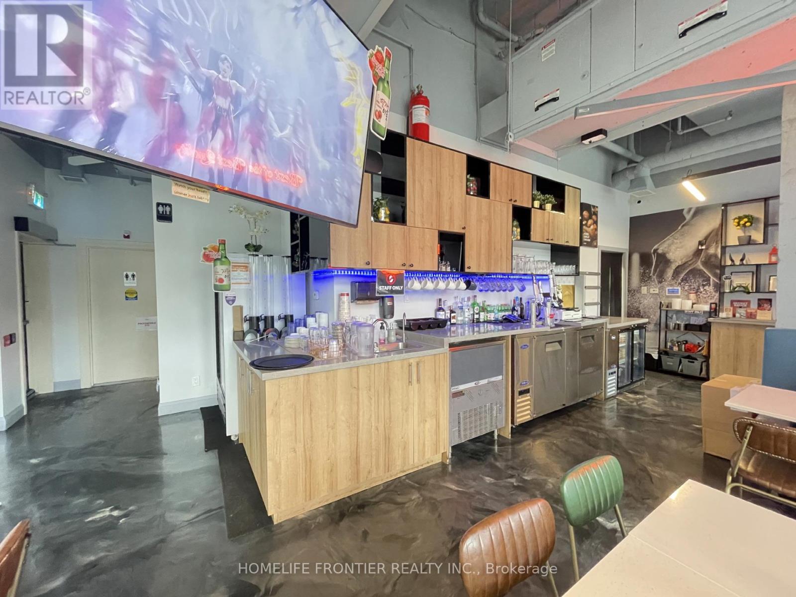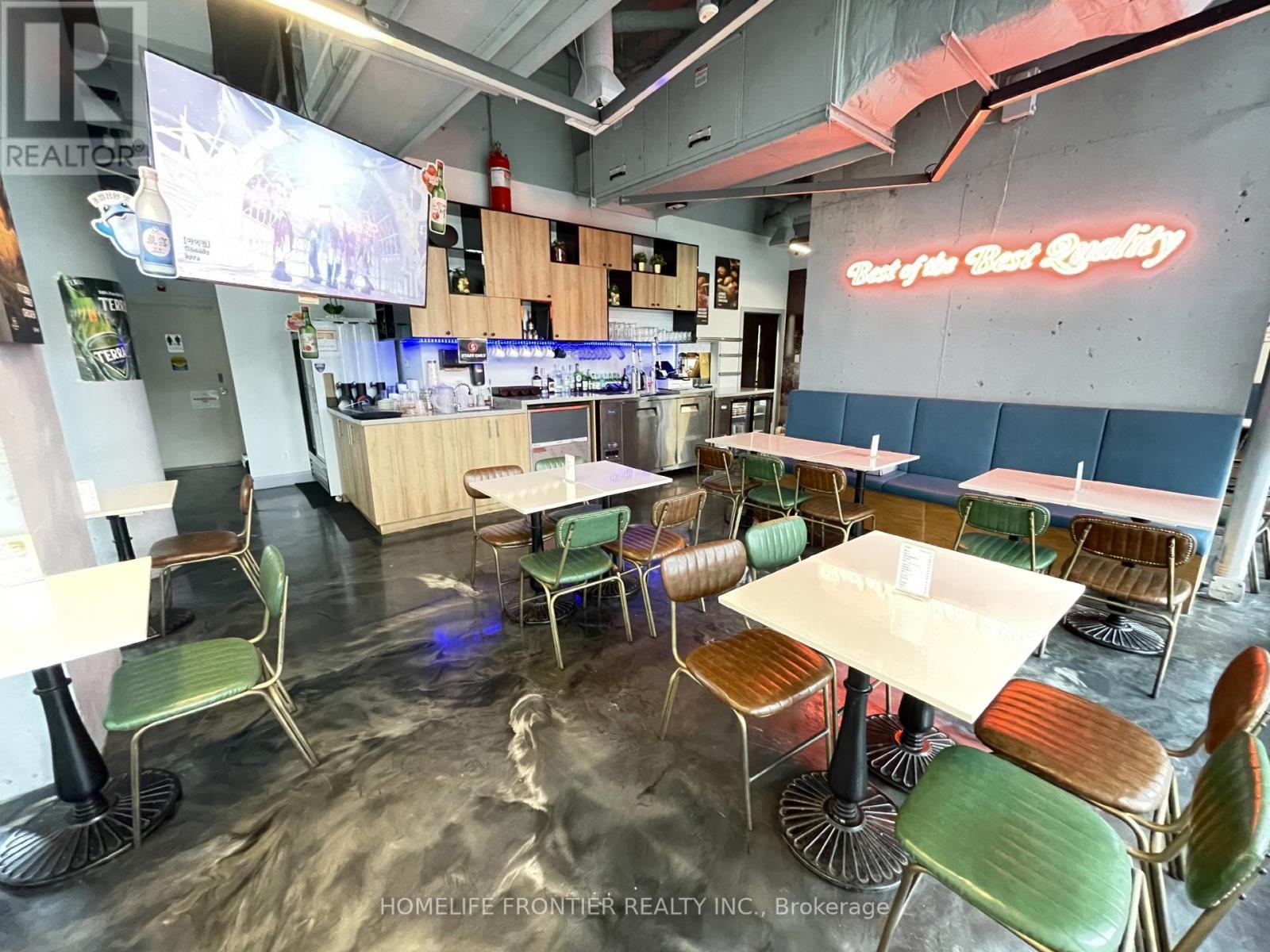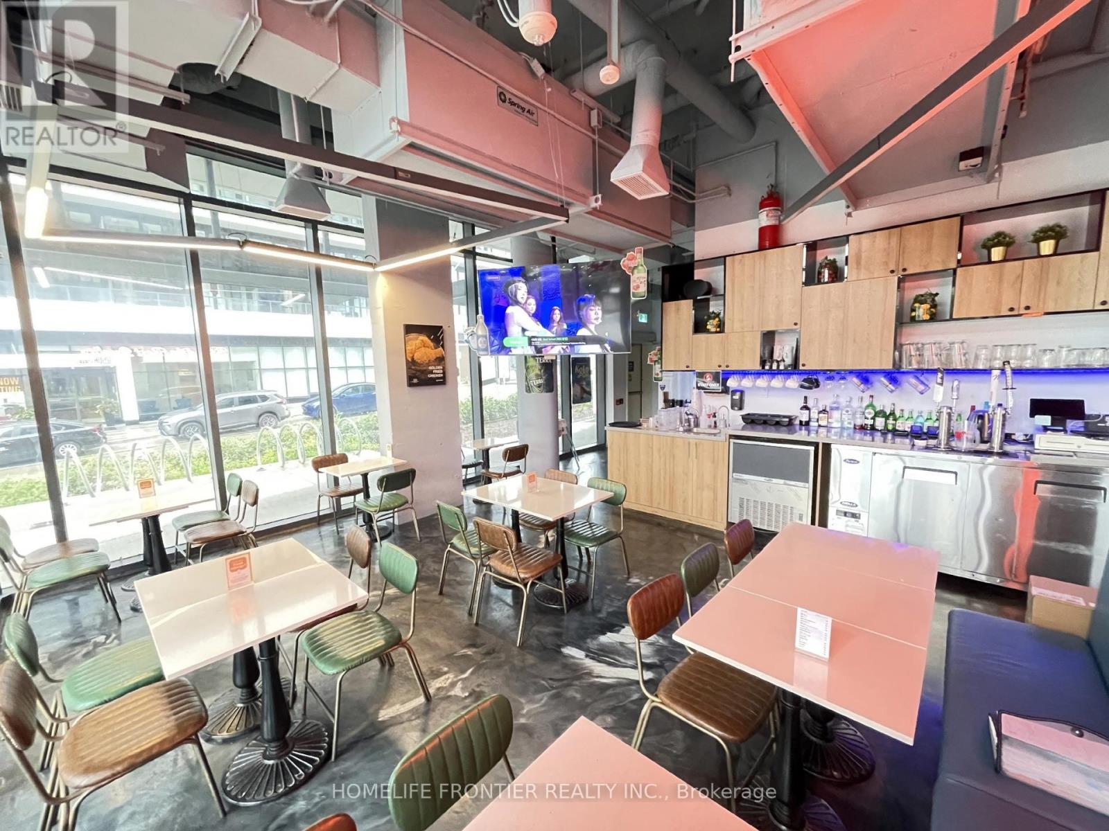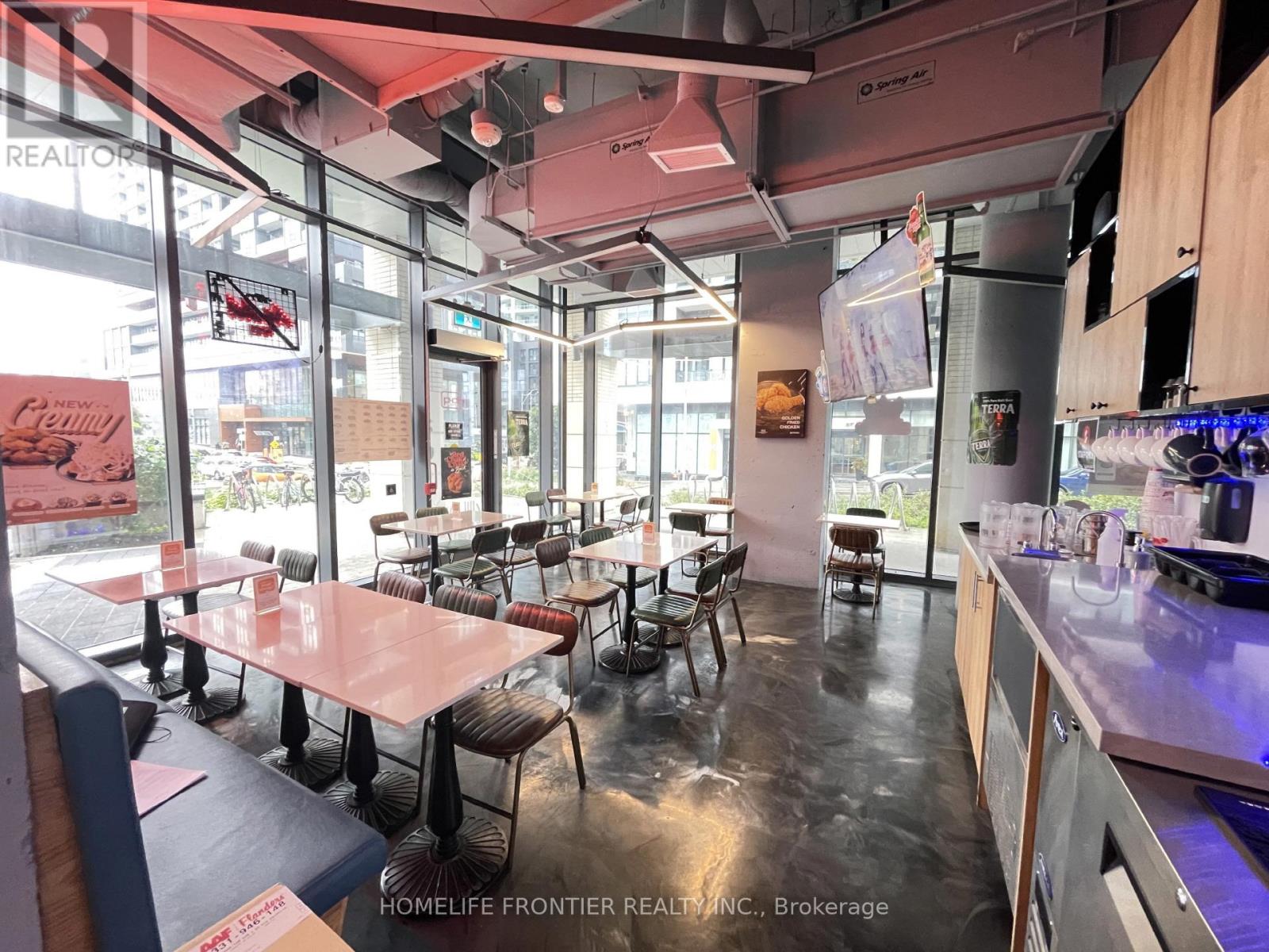 Excellent Location in Liberty Village Condo Commercial Space. Great Opportunity Own a Profitable Franchise - Weekly Sales $25,000. One of the Biggest K-Chicken Franchises. Fully Equipped With 8 Ft. Commercial Hood, Coolers, Prepping Area and 2 Washroom ETC. 40 Seat (28 for LLBO), 1400 Sq.ft, Lease 2 years +5 years option to renew. Open 3~1:30(weekday), 3~2:30(Weekend). Extend Open Hour, Expand Revenue! (id:64974)