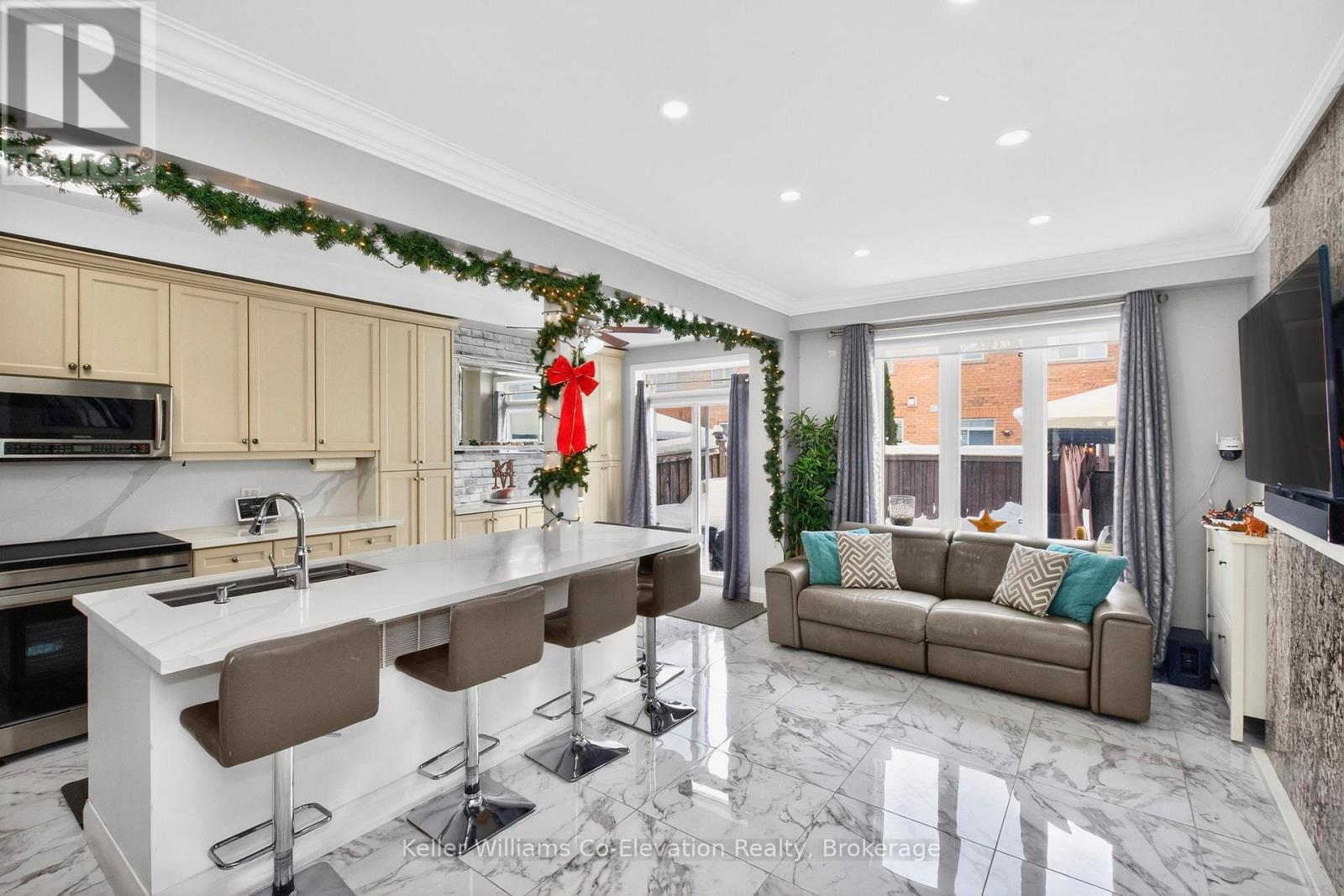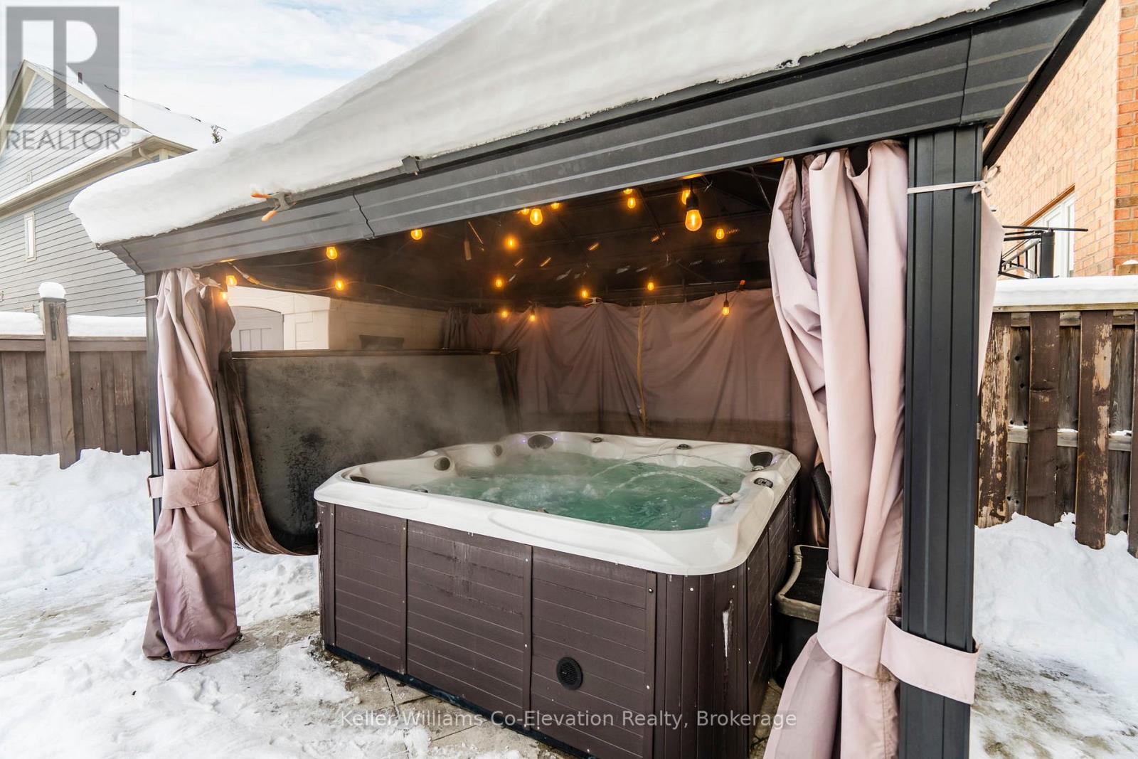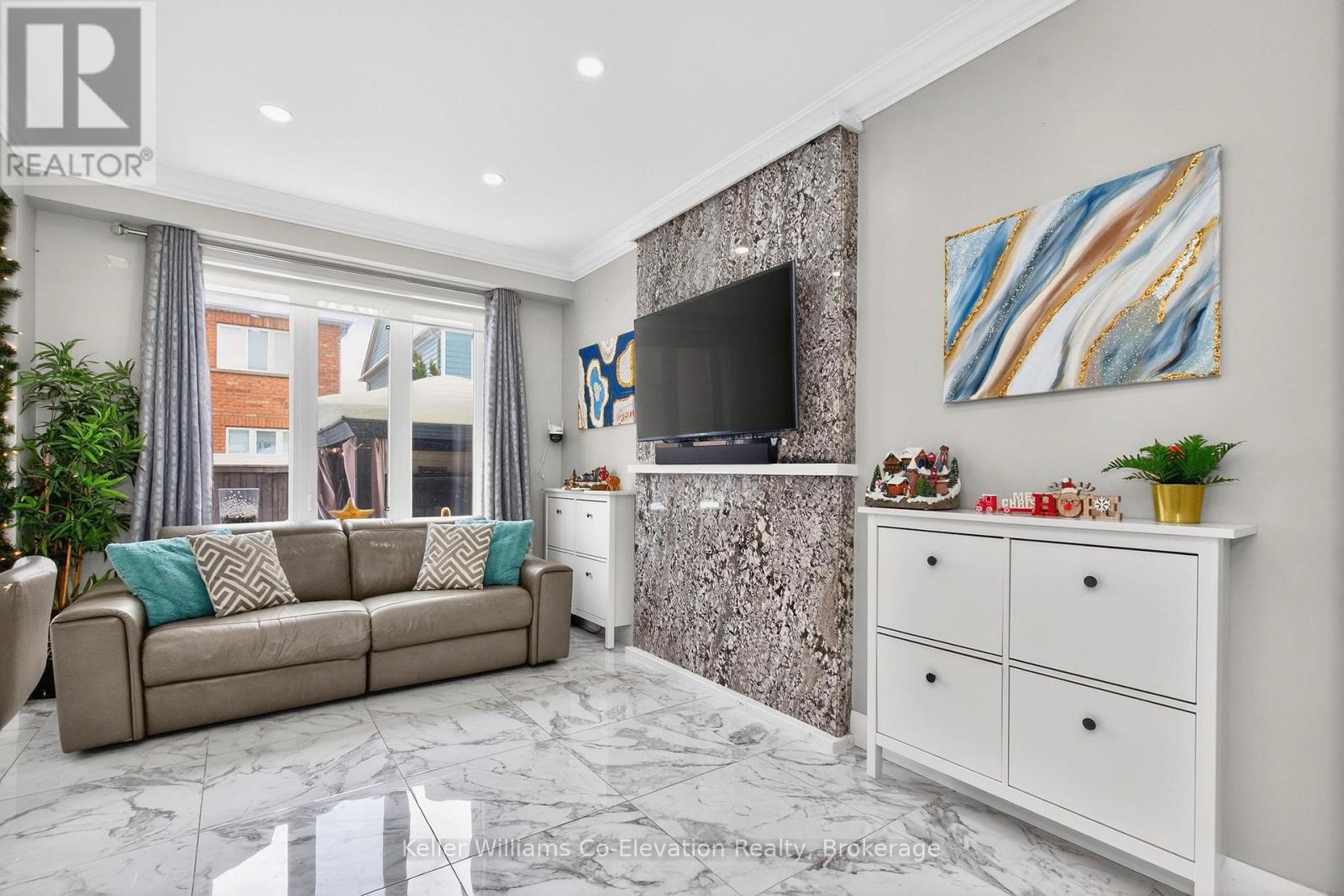 Beautifully updated corner-unit townhome located in a sought-after, family-friendly community in Bradford; close to parks, schools, and green space. This turnkey home showcases quality upgrades throughout, with an emphasis on timeless stone finishes and thoughtful design. From the moment you enter, you are welcomed by the comfort of in-floor heating throughout the main level. The open-concept kitchen and living area are both stylish and functional, featuring stone countertops, a large breakfast bar with ample seating, abundant cabinetry -perfect for everyday living and entertaining. The kitchen offers a walk-out to a private backyard patio complete with an outdoor kitchen and hot tub, creating an ideal setting for hosting family and friends. The main floor also includes a convenient two-piece powder room and direct access to both the garage and basement. Upstairs, the spacious primary bedroom features a walk-in closet and a fully upgraded ensuite bathroom. Two additional well-appointed bedrooms, a full bathroom, and second-floor laundry, perfect for growing families. The fully renovated basement adds exceptional value, offering an additional living space, a three-piece bathroom, a small kitchenette, and a separate entrance from the garage. This versatile space is ideal for an in-law suite, guests, or extended family. Additional highlights include the elegant use of stone countertops throughout the home, an extra parking space at the front, and pride of ownership evident in every detail. Ideally located close to schools, parks, downtown Bradford, and with easy highway access, this home truly offers a refined lifestyle in a prime location. Do not miss this opportunity to enjoy modern comfort, quality finishes, and exceptional convenience. (id:64974)