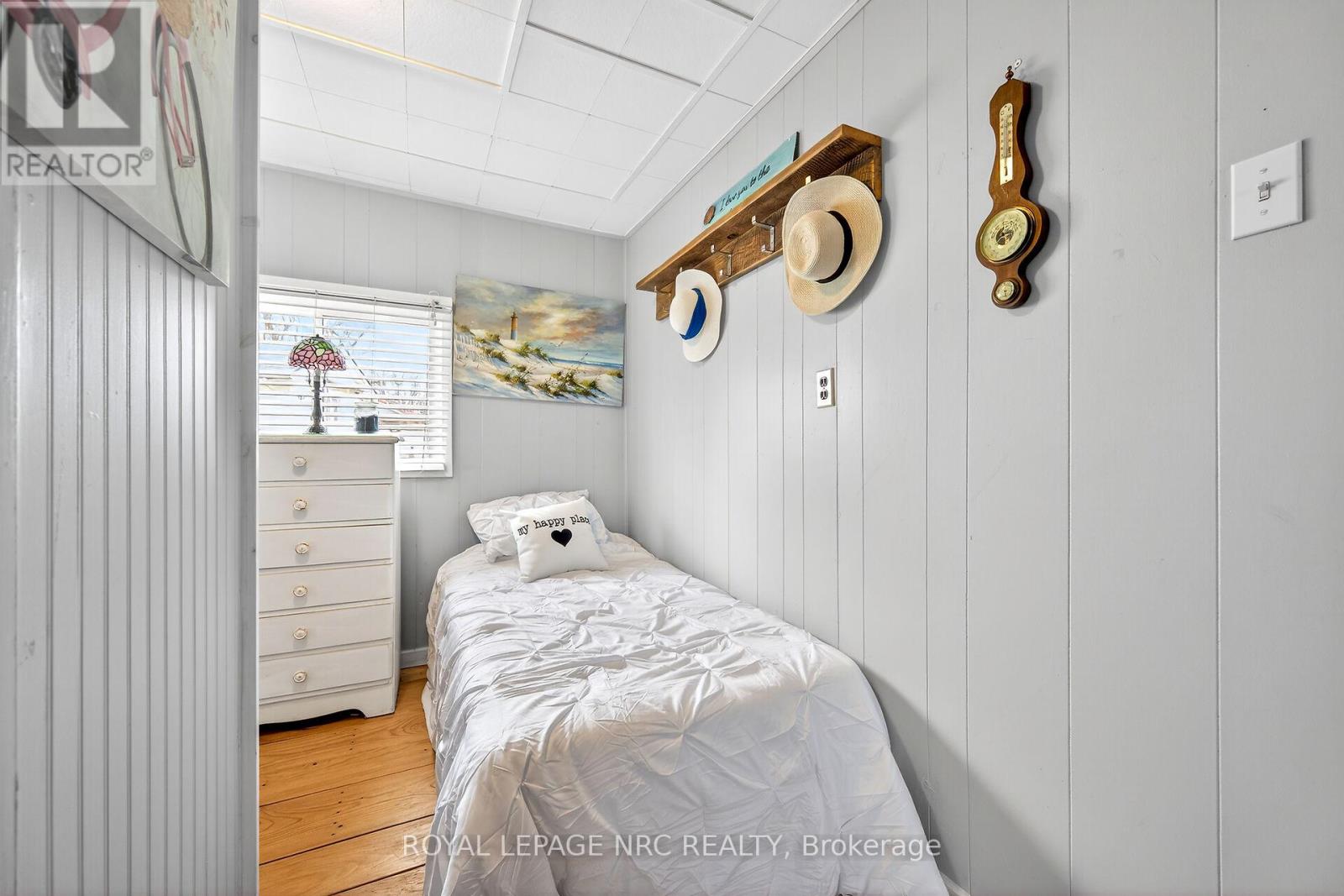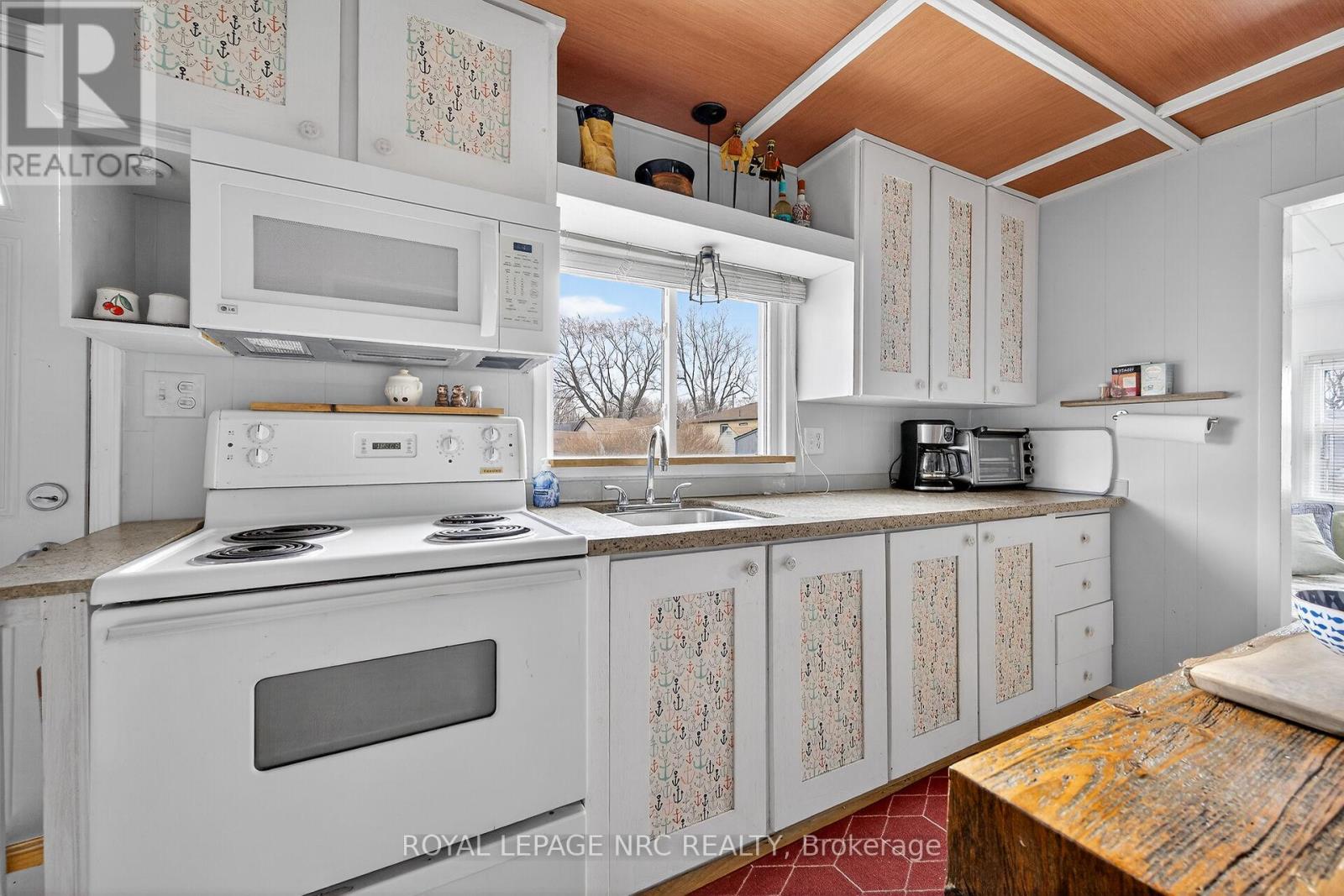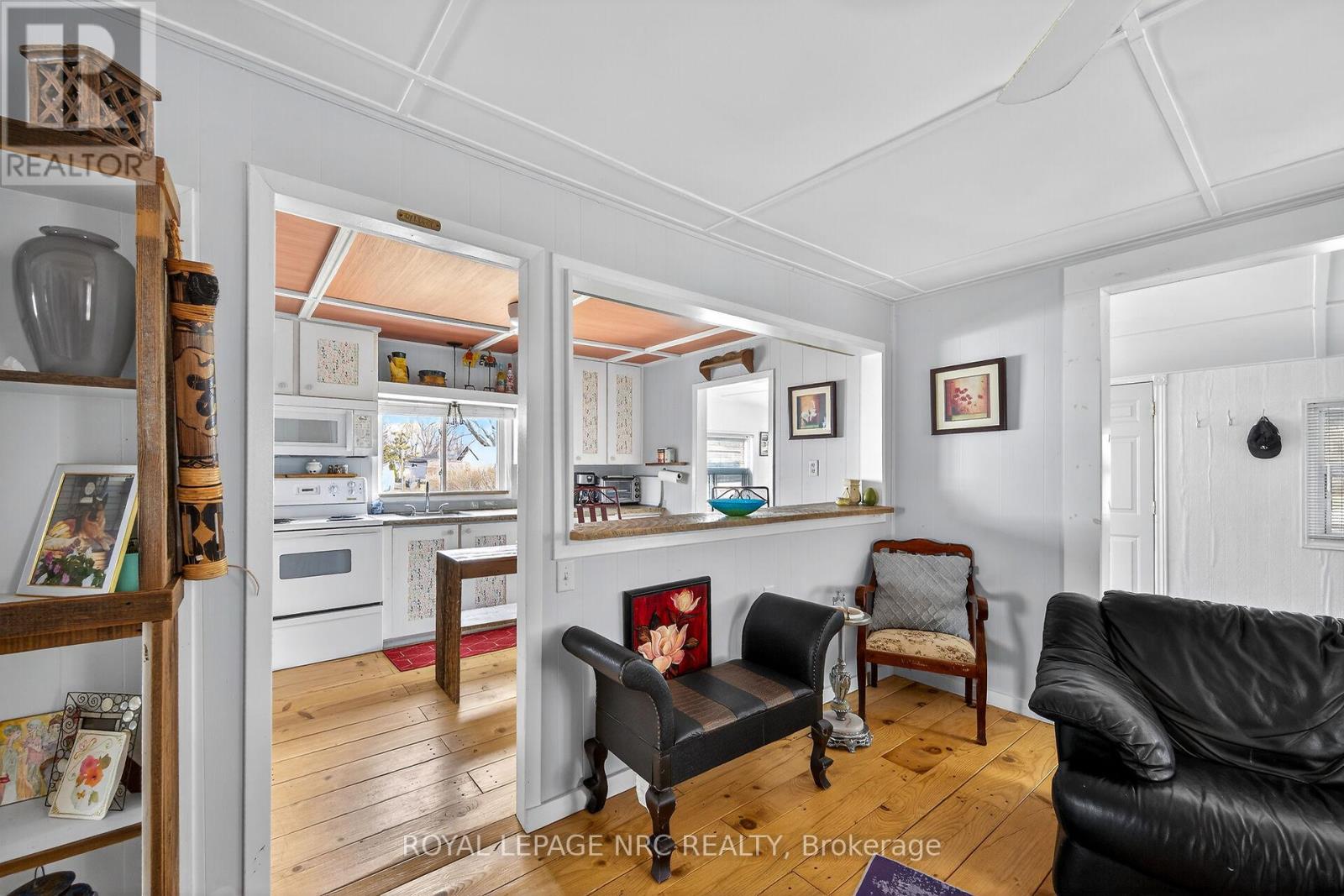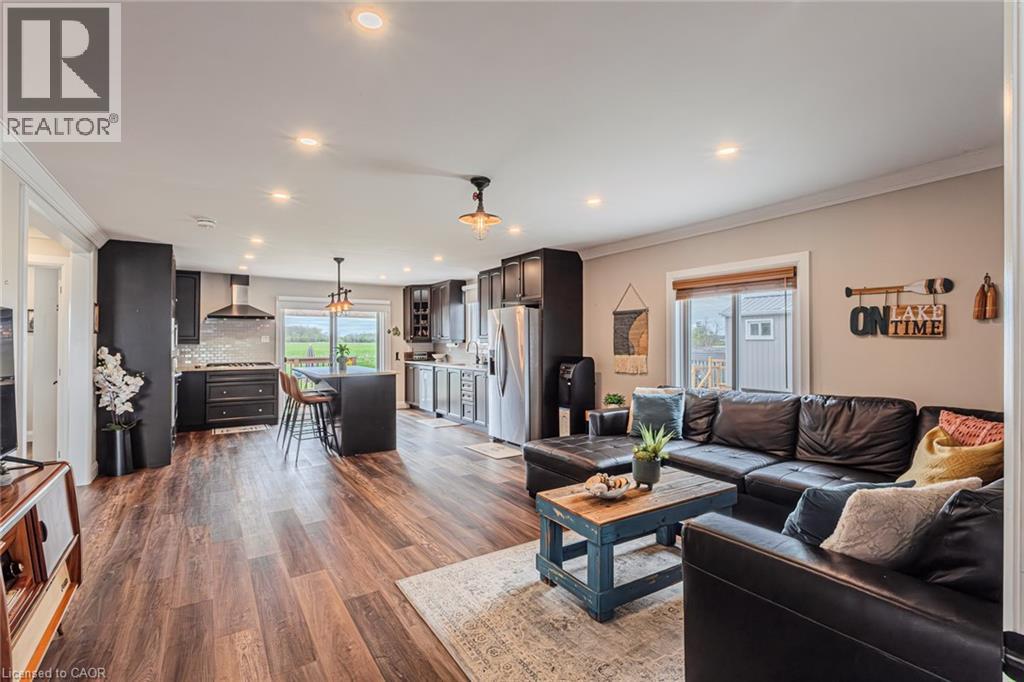 This extremely well-maintained and affordable seasonal cottage is located on leased land in thewelcoming community of Featherstone Point. It sits on a double deep lot sheltered from lakewinds, with partial lake views just steps from a private sand beach. The open-concept layoutfeatures a dining/sitting area overlooking the front deck with gazebo, a kitchen equipped with arefrigerator and stove, ample cabinetry, trendy concrete countertops, and wood island, plusaccess to a 10'x20' side deck perfect for grilling and outdoor dining. The bright and spaciousliving room includes a propane fireplace/heater, pine plank flooring and custom built-ins. Aprimary bedroom, a second smaller sleeping area and 3-piece bath complete the functionallayout. Extras include 3 large decks, shed, fire chiminea, manicured lawn, beautifully landscapedyard, 100-amp hydro, a 2000-gallon cistern and a 2000-gallon holding tank. The detachedgarage/workshop with hydro is suitable for hobbyists, and double wide driveway with generousparking available for multiple vehicles and a boat. The annual leased land fee is $4,400 andcovers property taxes, permitting nine-month occupancy from April 1st to December 31st. Thelocation allows for an easy 45-minute commute to Hamilton, Brantford, and Highway 403. Parkamenities include an attractive sand beach, common park area, and volleyball net. Mostfurnishings are included, and immediate or flexible possession can be arranged. Experience theperfect retreat on Lake Erie that meets almost everyone's budget! (id:64974)