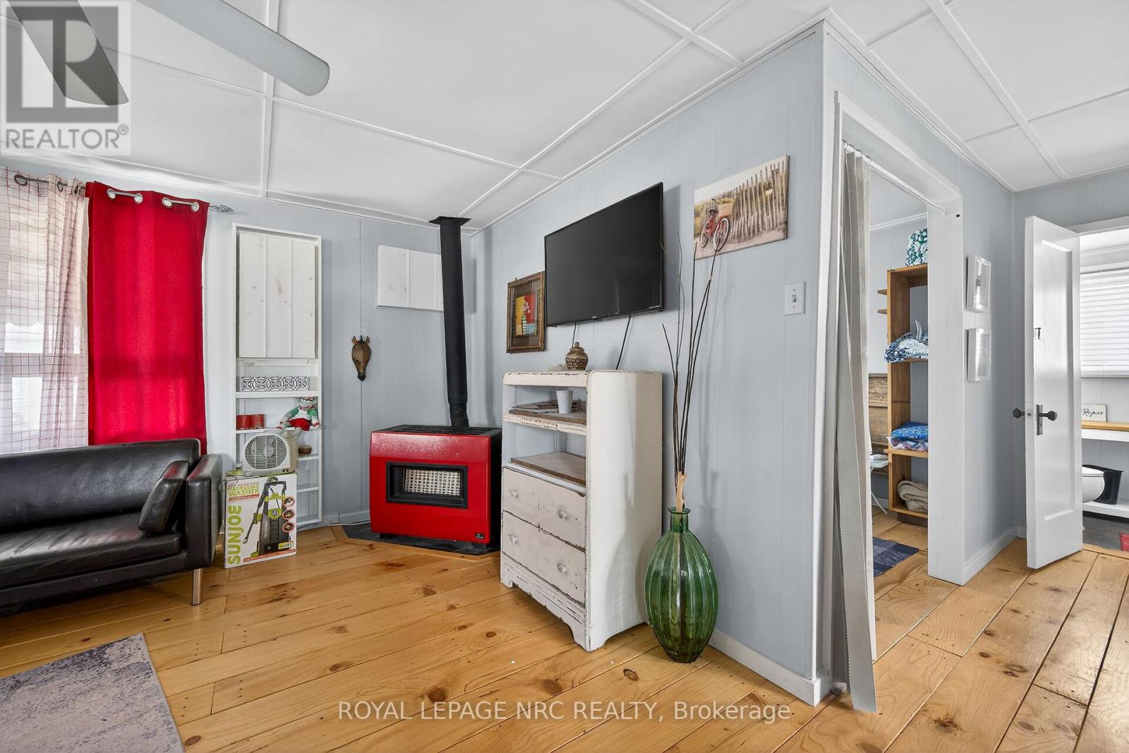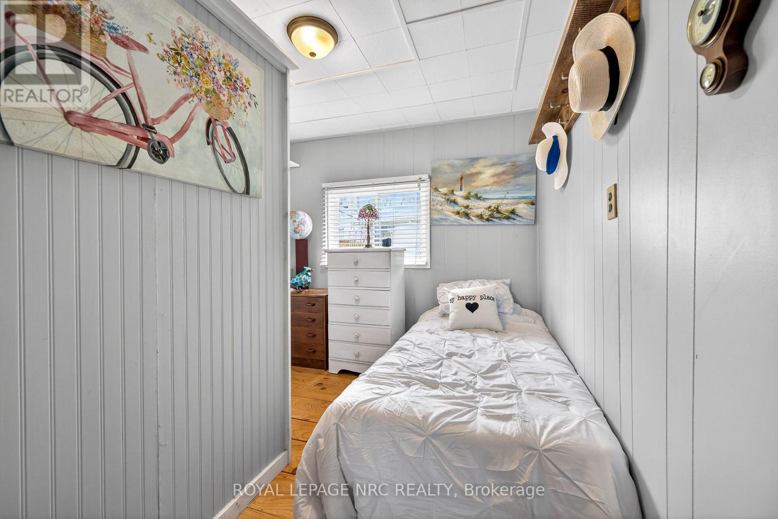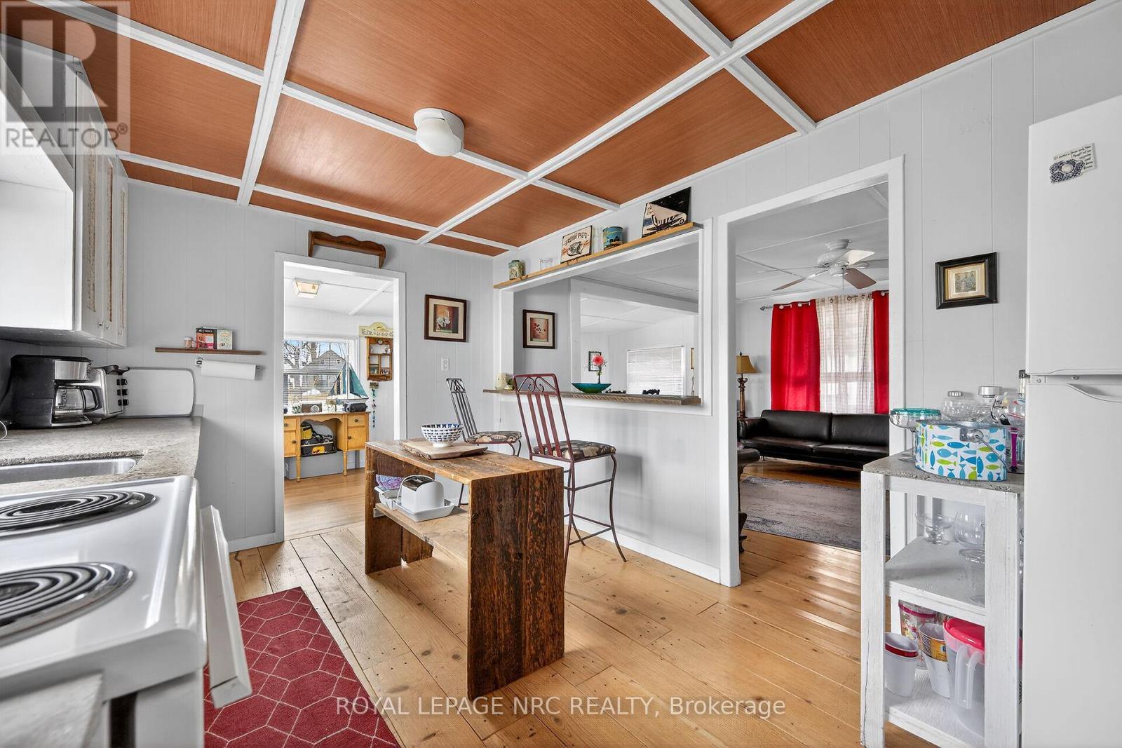This extremely well-maintained and affordable seasonal cottage is located on leased land in thewelcoming community of Featherstone Point. It sits on a double deep lot sheltered from lakewinds, with partial lake views just steps from a private sand beach. The open-concept layoutfeatures a dining/sitting area overlooking the front deck with gazebo, a kitchen equipped with arefrigerator and stove, ample cabinetry, trendy concrete countertops, and wood island, plusaccess to a 10'x20' side deck perfect for grilling and outdoor dining. The bright and spaciousliving room includes a propane fireplace/heater, pine plank flooring and custom built-ins. Aprimary bedroom, a second smaller sleeping area and 3-piece bath complete the functionallayout. Extras include 3 large decks, shed, fire chiminea, manicured lawn, beautifully landscapedyard, 100-amp hydro, a 2000-gallon cistern and a 2000-gallon holding tank. The detachedgarage/workshop with hydro is suitable for hobbyists, and double wide driveway with generousparking available for multiple vehicles and a boat. The annual leased land fee is $4,400 andcovers property taxes, permitting nine-month occupancy from April 1st to December 31st. Thelocation allows for an easy 45-minute commute to Hamilton, Brantford, and Highway 403. Parkamenities include an attractive sand beach, common park area, and volleyball net. Mostfurnishings are included, and immediate or flexible possession can be arranged. Experience theperfect retreat on Lake Erie that meets almost everyone's budget! (id:64974)