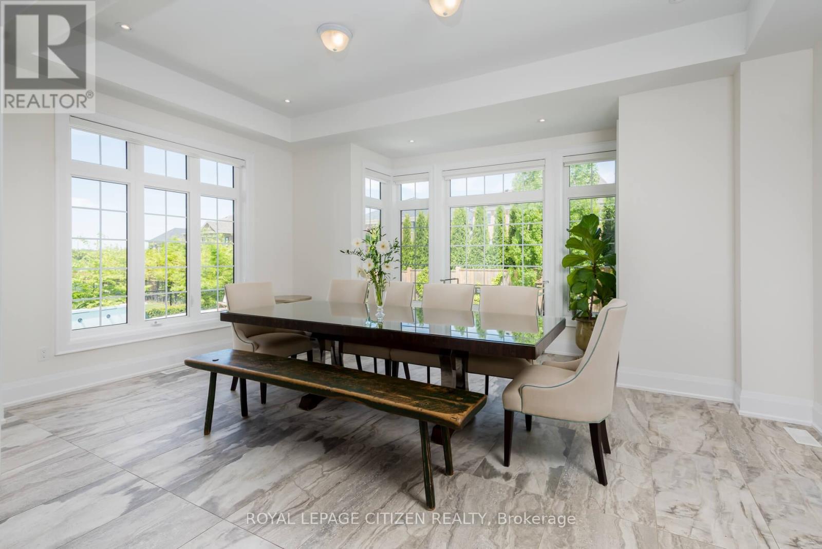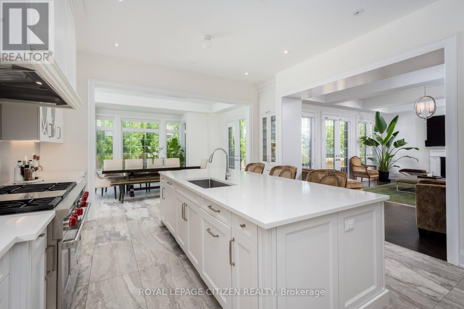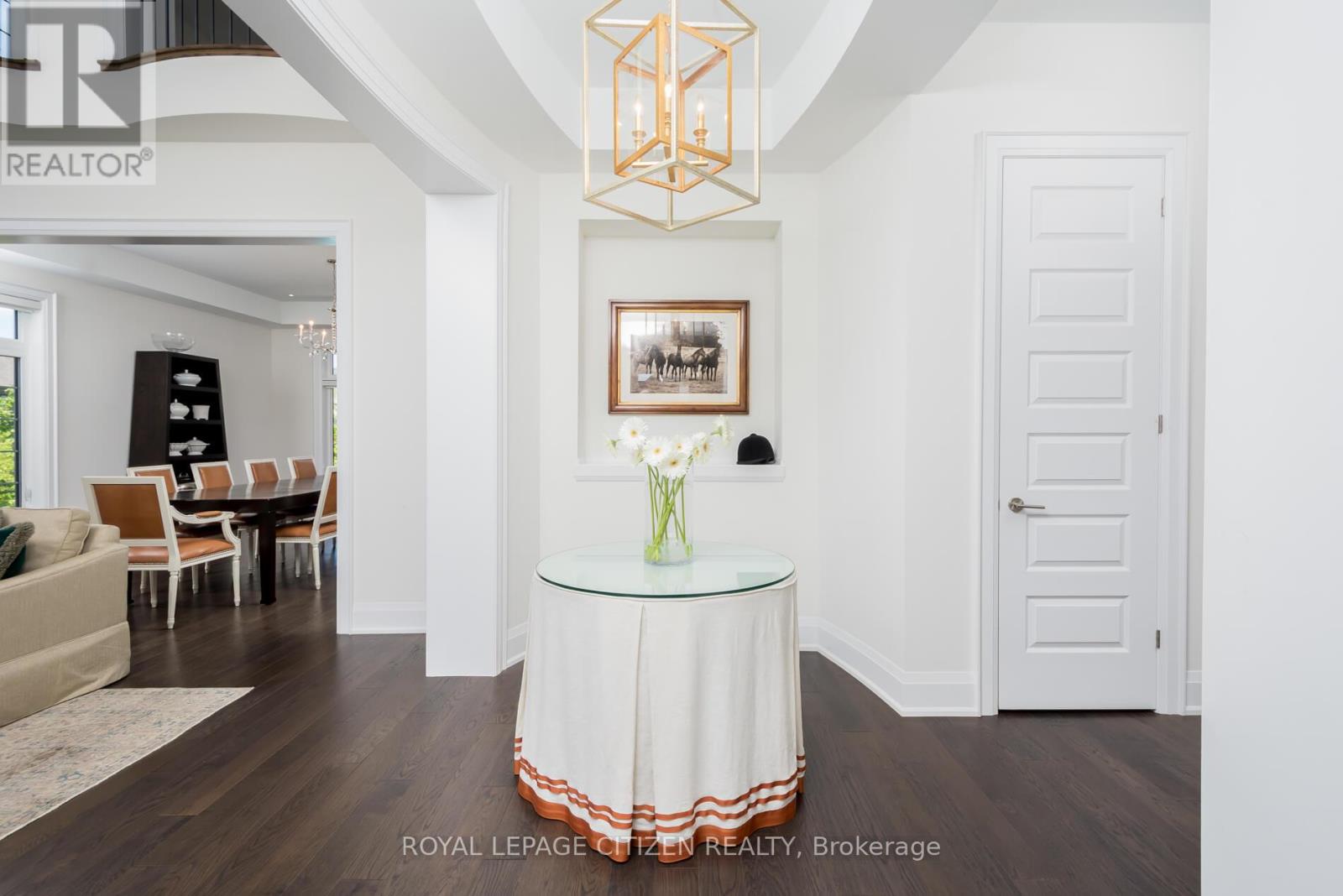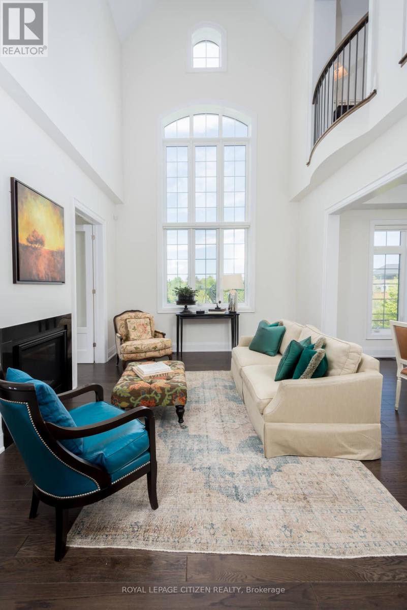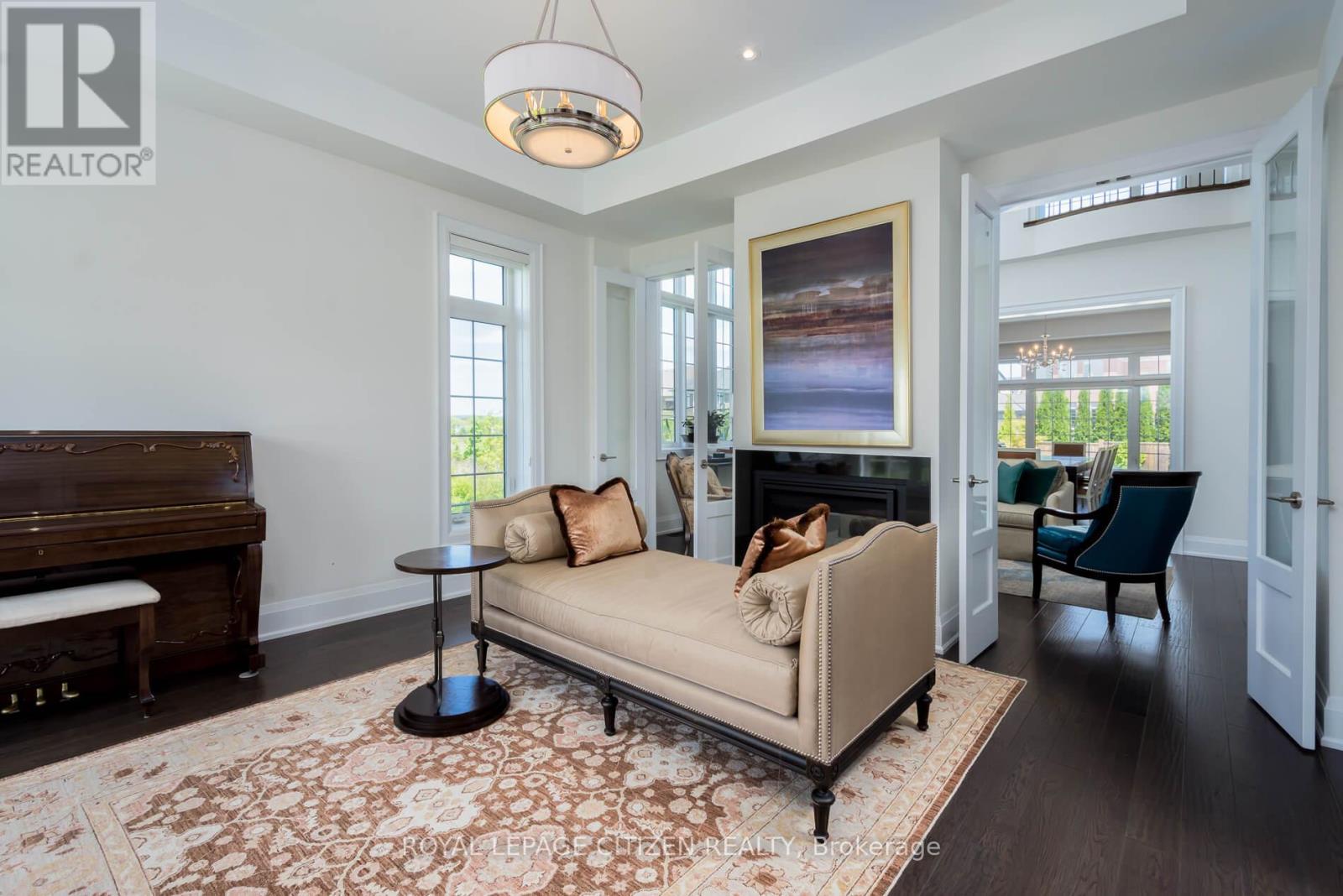Discover refined living in one of Kleinburg's most coveted enclaves, tucked away on a quiet, private court and backing onto a picturesque ravine. This exceptional estate blends timeless design with upscale comfort, offering a rare opportunity to own a truly remarkable home. The heart of the home is a stunning chef-inspired kitchen featuring premium Wolf and Sub-Zero appliances, sleek quartz countertops, a statement centre island, custom cabinetry, and a walk-in pantry. A seamless walkout leads to a covered veranda, perfect for effortless indoor-outdoor entertaining. The family room impresses with soaring ceilings, rich herringbone flooring, a cozy gas fireplace, and expansive French doors that flood the space with natural light while showcasing serene ravine views. A sophisticated library with a double-sided fireplace flows into elegant living and dining spaces designed for both intimate and grand gatherings. The luxurious primary suite offers a private retreat with its own fireplace, spa-like ensuite, custom walk-in closet, and a walkout to a secluded terrace overlooking the beautifully landscaped yard. Each additional bedroom features its own ensuite, ensuring comfort and privacy throughout. An upper-level great room overlooking the main floor adds to the home's open, airy feel. Step outside to a professionally landscaped backyard oasis complete with a saltwater pool, stunning hardscaping, and breathtaking ravine views with in your own private escape. An extraordinary home in an unbeatable location. (id:64974)