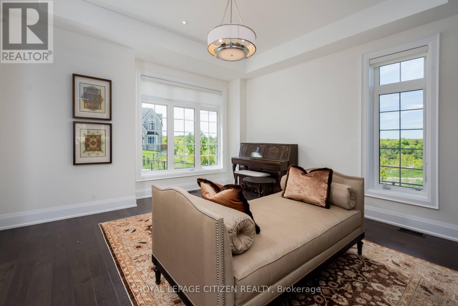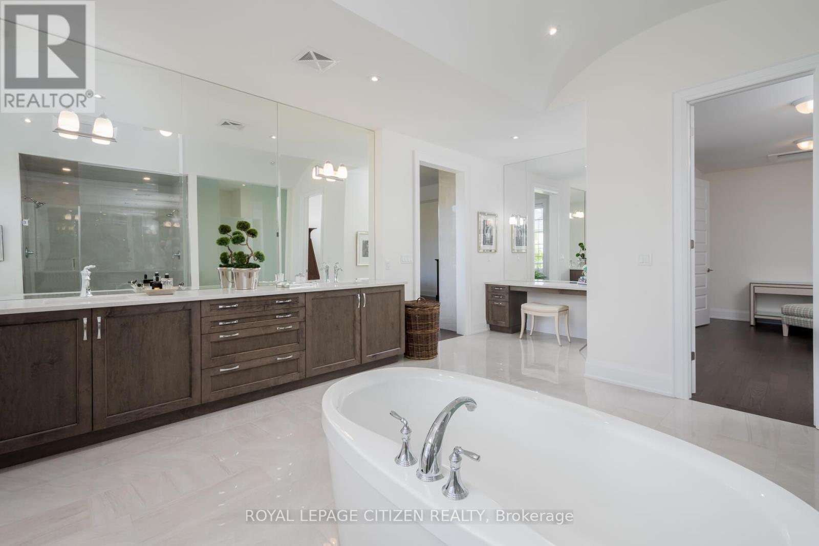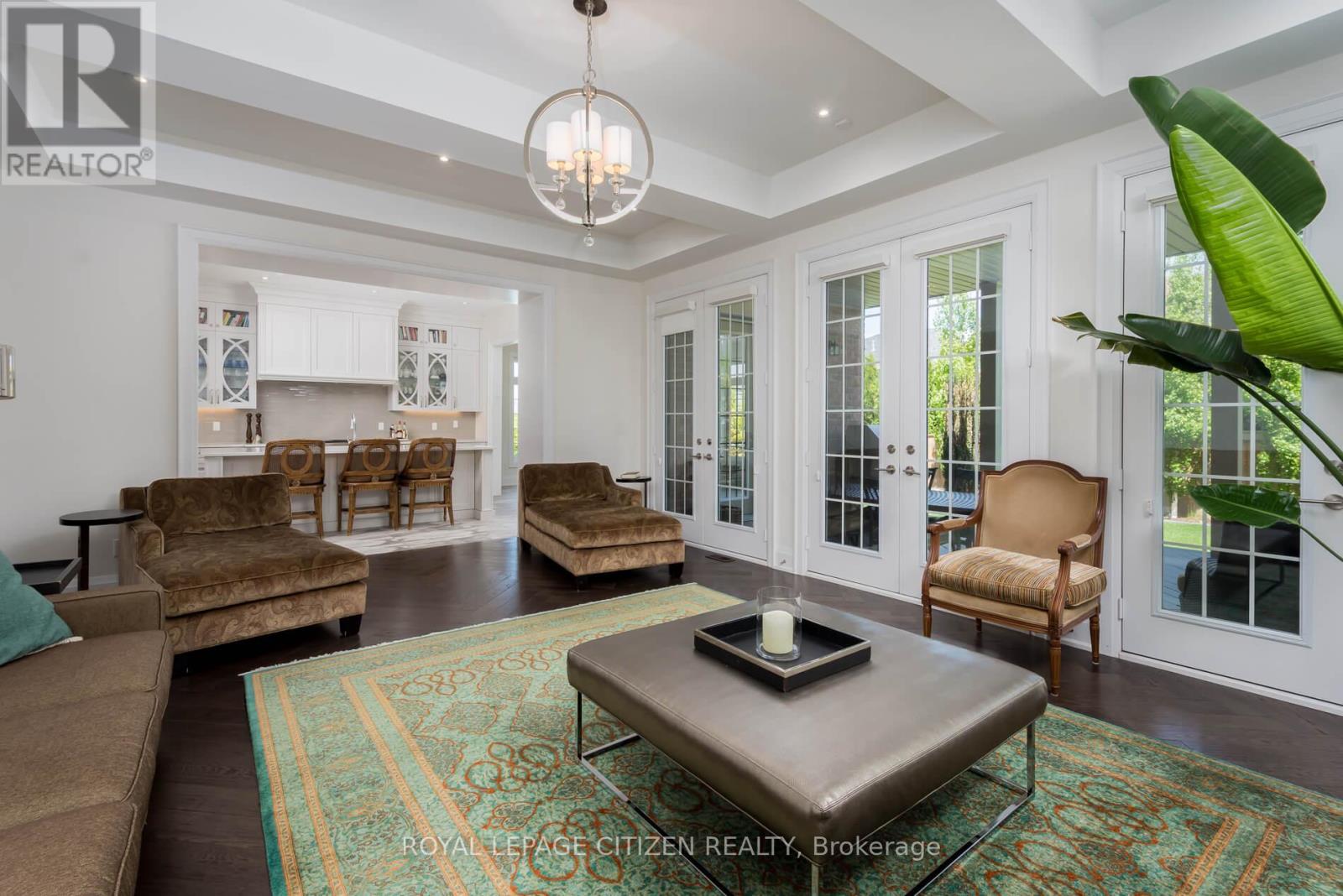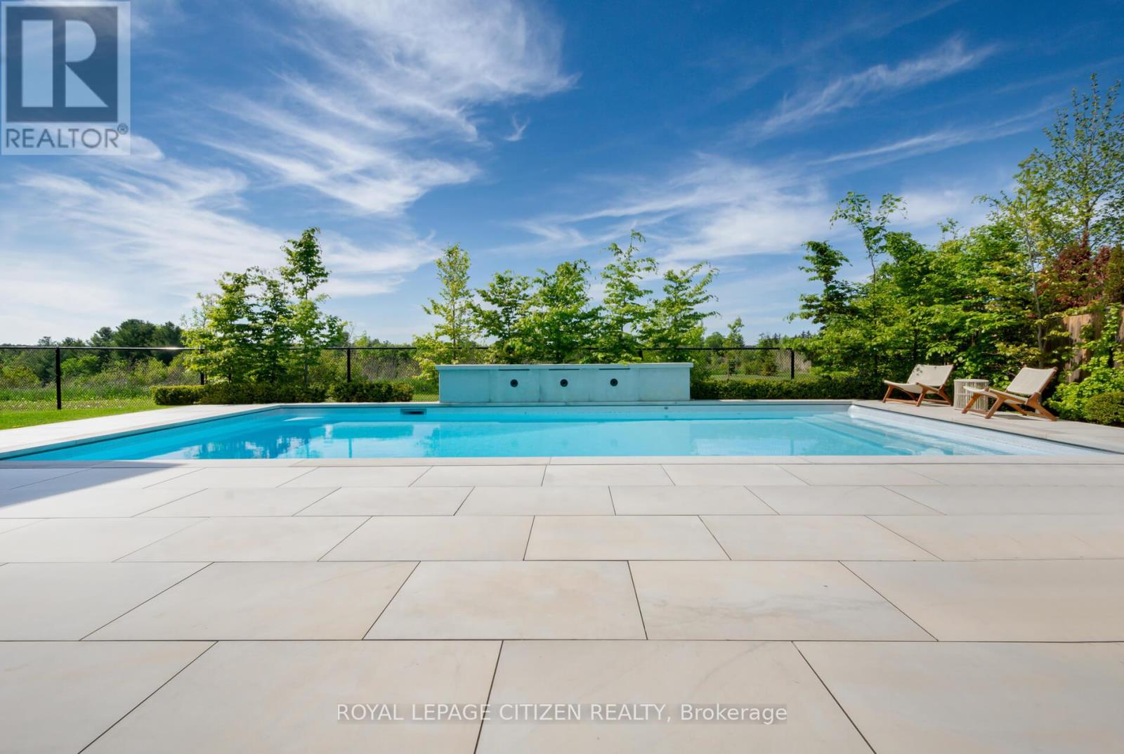 Discover refined living in one of Kleinburg's most coveted enclaves, tucked away on a quiet, private court and backing onto a picturesque ravine. This exceptional estate blends timeless design with upscale comfort, offering a rare opportunity to own a truly remarkable home. The heart of the home is a stunning chef-inspired kitchen featuring premium Wolf and Sub-Zero appliances, sleek quartz countertops, a statement centre island, custom cabinetry, and a walk-in pantry. A seamless walkout leads to a covered veranda, perfect for effortless indoor-outdoor entertaining. The family room impresses with soaring ceilings, rich herringbone flooring, a cozy gas fireplace, and expansive French doors that flood the space with natural light while showcasing serene ravine views. A sophisticated library with a double-sided fireplace flows into elegant living and dining spaces designed for both intimate and grand gatherings. The luxurious primary suite offers a private retreat with its own fireplace, spa-like ensuite, custom walk-in closet, and a walkout to a secluded terrace overlooking the beautifully landscaped yard. Each additional bedroom features its own ensuite, ensuring comfort and privacy throughout. An upper-level great room overlooking the main floor adds to the home's open, airy feel. Step outside to a professionally landscaped backyard oasis complete with a saltwater pool, stunning hardscaping, and breathtaking ravine views with in your own private escape. An extraordinary home in an unbeatable location. (id:64974)