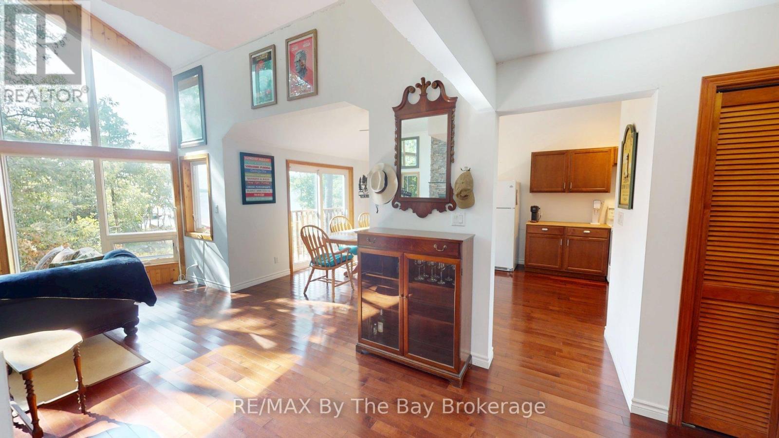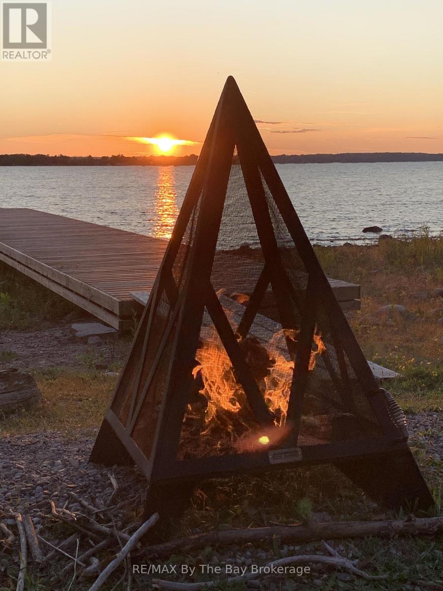 A private slice of paradise on the beautiful west side of Methodist Island in southeast Georgian Bay. Enjoy breathtaking sunset vistas and peaceful waterfront living . Best of all, just a quick five to ten minute boat ride from Victoria Harbour, offering convenient access while still feeling worlds away from it all. 200 feet of shoreline and three quarters of an acre of level, treed land bordered by protected land to the north provides an ideal balance of natural beauty, privacy, and cottage comfort. This stylish and modern 3-bedroom Viceroy cottage has been thoughtfully designed to maximize both comfort and the stunning water views. The open-concept layout connects the living room, kitchen, and dining area, creating an inviting space for entertaining family and friends or enjoying quiet evenings at the cottage.A striking double-sided fireplace adds warmth and ambiance, serving as a cozy focal point for both the main living spaces and relaxing nights indoors. Large windows invite in natural light and showcase the spectacular sunsets that make this location so special.Step outside to enjoy endless waterfront activities, morning coffees by the shore, or evenings gathered around the fire under the stars. With excellent privacy, level land, and plenty of usable outdoor space, this property is perfect for making lifelong family memories.An opportunity for a peaceful weekend getaway or the ultimate Georgian Bay summer retreat. (id:64974)