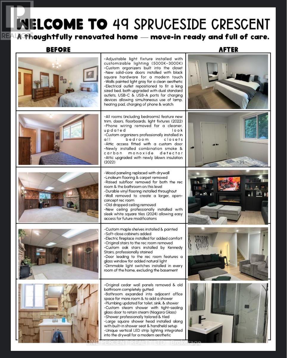 Welcome to 49 Spruceside Crescent in the heart of Fonthill; a beautifully upgraded modern back-split nestled in one of Pelham's most sought-after neighbourhoods. Renovated from top to bottom, this move-in-ready home offers stylish finishes and thoughtful updates throughout. Featuring 3 bedrooms, 2 full bathrooms, and an inviting open-concept kitchen and living area, the layout is designed for both everyday comfort and effortless entertaining. A cozy lower-level den provides the perfect space for movie nights, a home office, or a quiet retreat. Step outside to your fenced private backyard, accessible from both the main level and basement walkout, creating seamless indoor and outdoor flow. Surrounded by mature greenery, the yard feels like your own personal hideaway and is ideal for relaxing or hosting family and friends.This home offers the perfect blend of modern updates, functional design, and an exceptional location. Don't miss out on a true turnkey opportunity in one of Niagara's most desirable communities! (id:64974)