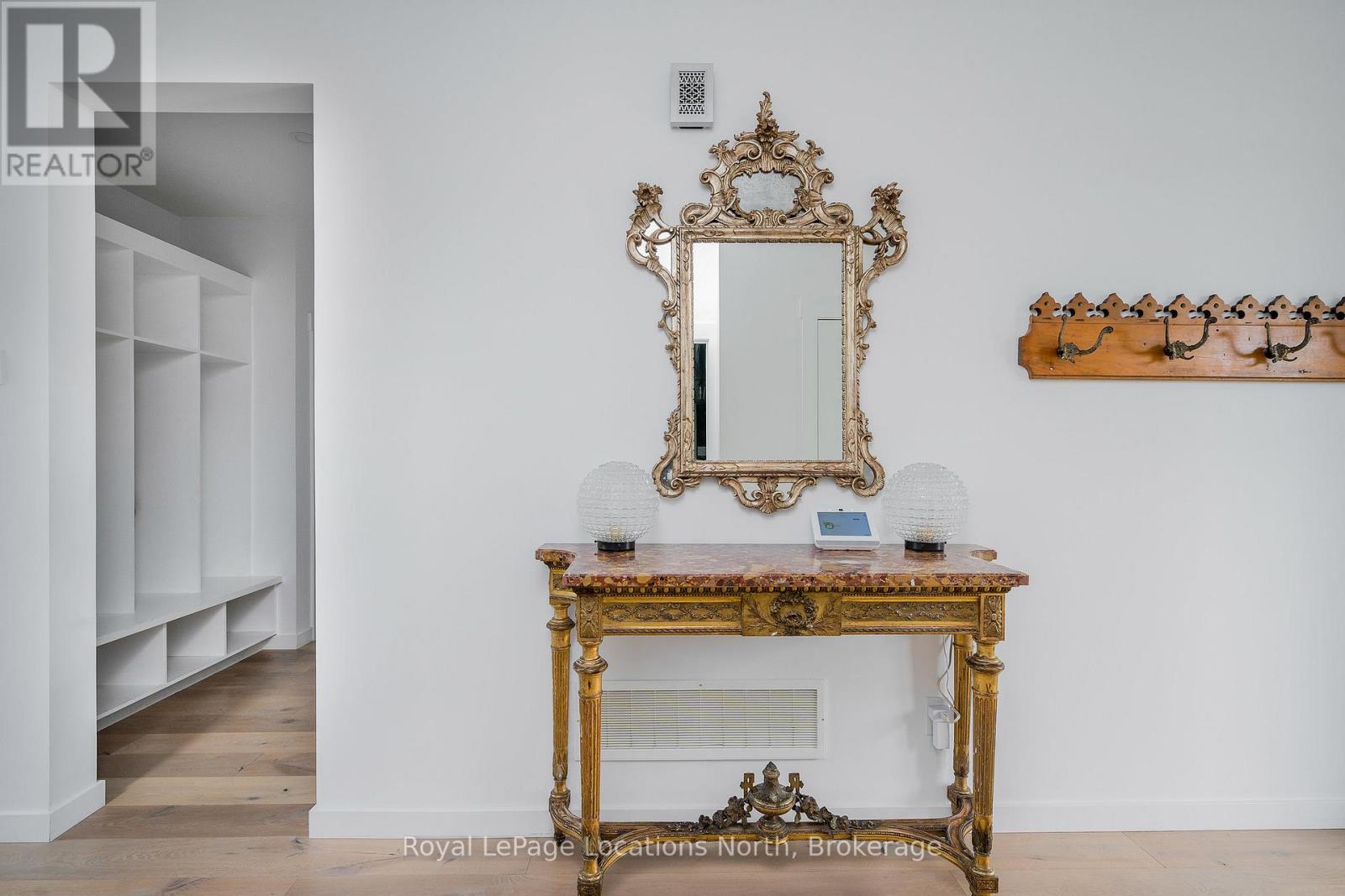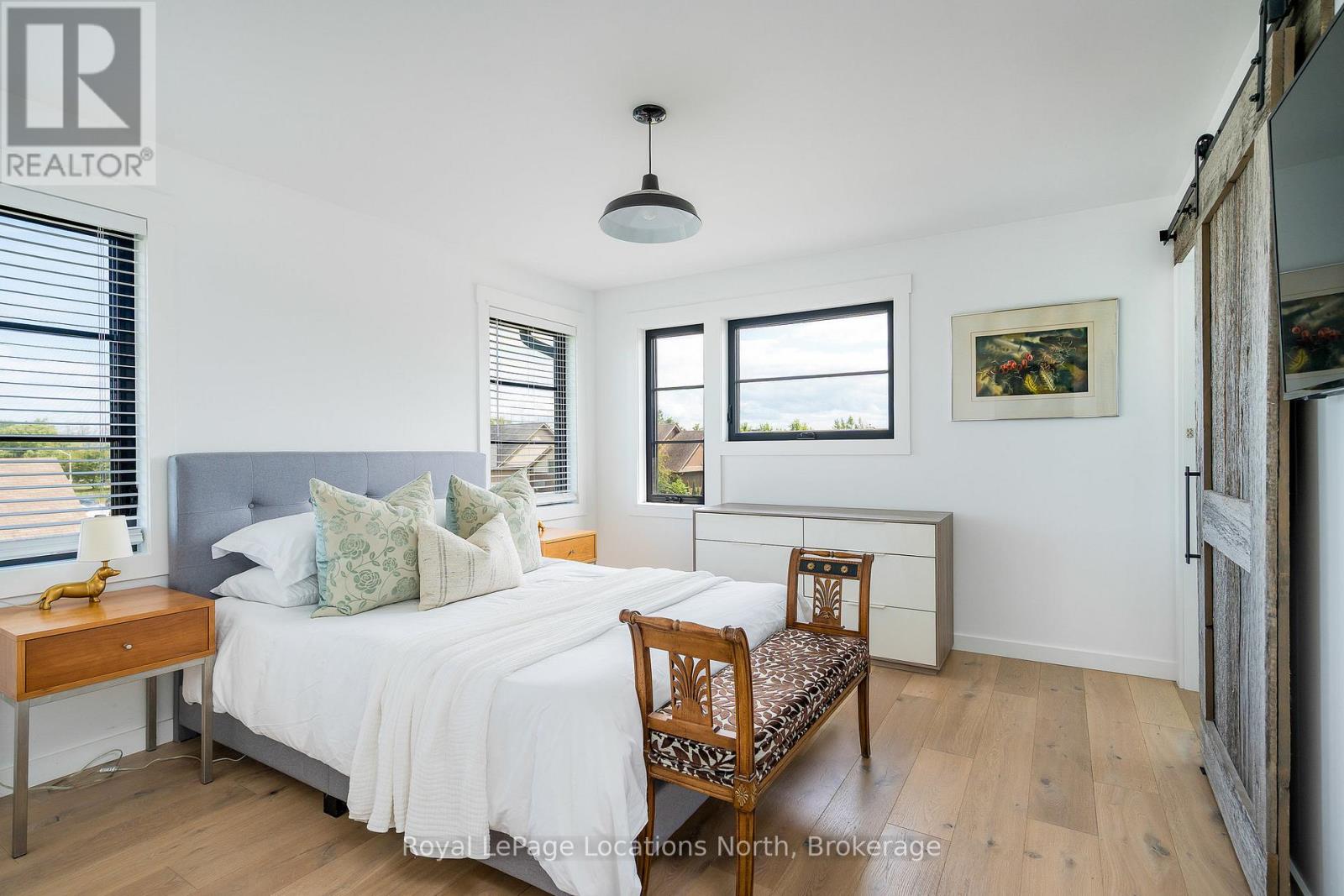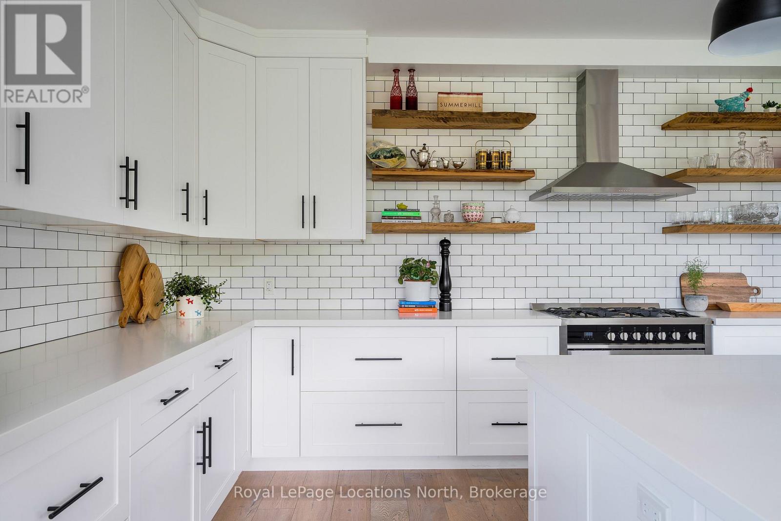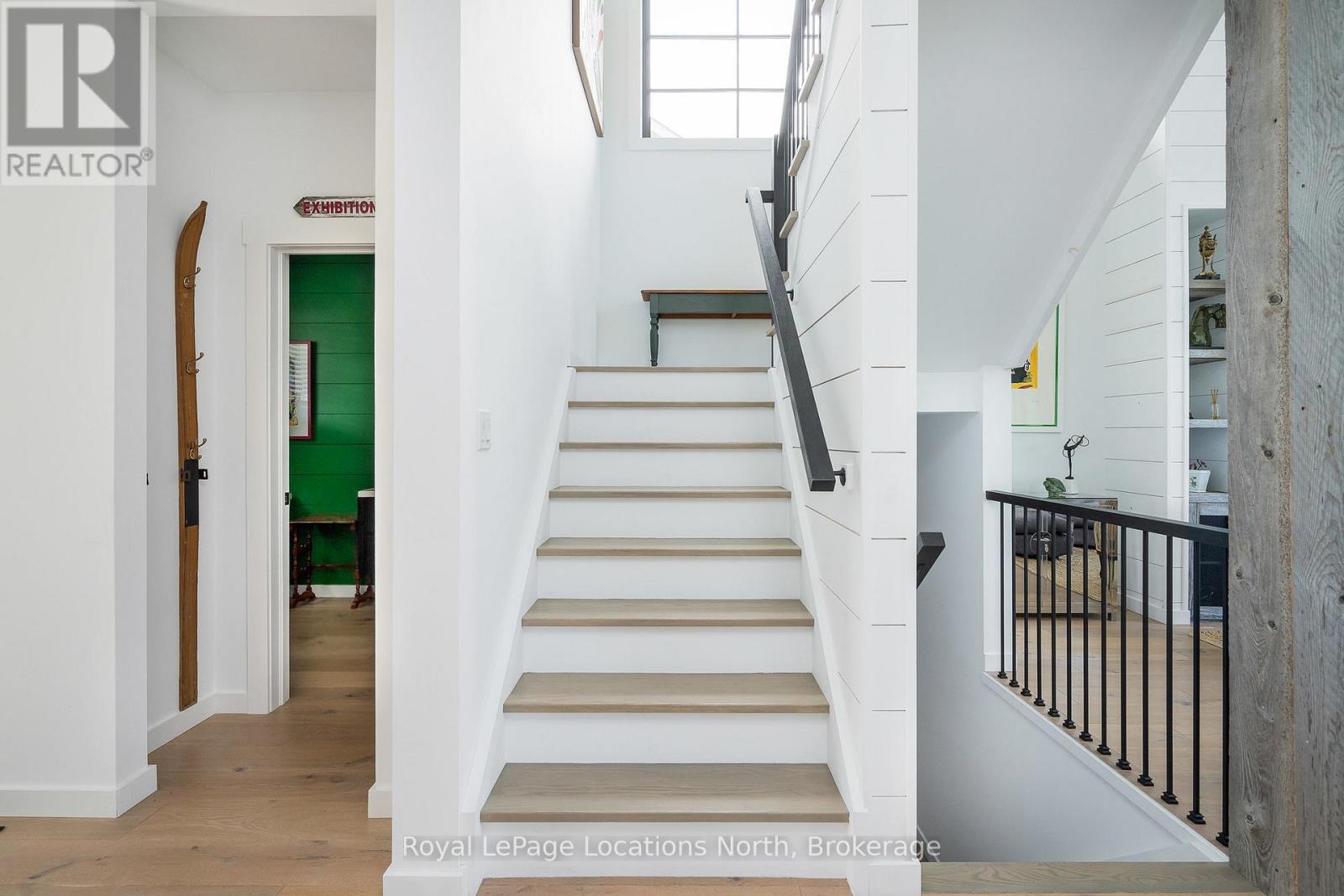 Welcome to one of Collingwood's most exclusive addresses, where elegance and comfort blend seamlessly in this custom-built two-storey home. Set on an impressive 66 x 167 ft full town lot, this residence offers over 3,700 sq ft of beautifully finished living space, with 5 bedrooms and 4 bathrooms designed for modern family living and entertaining. From the moment you step inside, soaring ceilings and sun-filled windows create a sense of openness and light. The main floor showcases wide-plank white oak engineered hardwood and thoughtful details throughout. At the heart of the home, the gourmet kitchen invites gathering with its quartz countertops, oversized island, and high-end appliances. The living room makes a statement with its dramatic 20-ft ceiling, cozy gas fireplace, and expansive sliding doors that lead to a private and peaceful backyard. Upstairs, retreat to the luxurious primary suite with remote-controlled blinds, a spacious walk-in closet, and a spa-inspired ensuite featuring double sinks, glass shower, and soaker tub. Two additional spacious bedrooms share a stylish Jack & Jill bathroom, perfect for family or guests. The fully finished lower level extends the living space with a generous recreation room, two more bedrooms, and a five-piece bath. Modern touches like shiplap and barnboard accents bring warmth and character throughout. Outdoors, enjoy a two-tiered deck and hot tub surrounded by nature. The large, private yard would be perfect for a pool. With amazing neighbours, a walkable location to Collingwood's best schools and downtown, and endless style and comfort, this home is truly a must see. (id:64974)