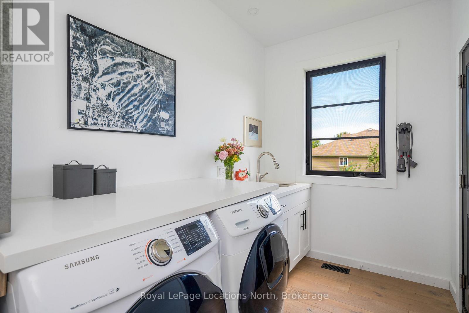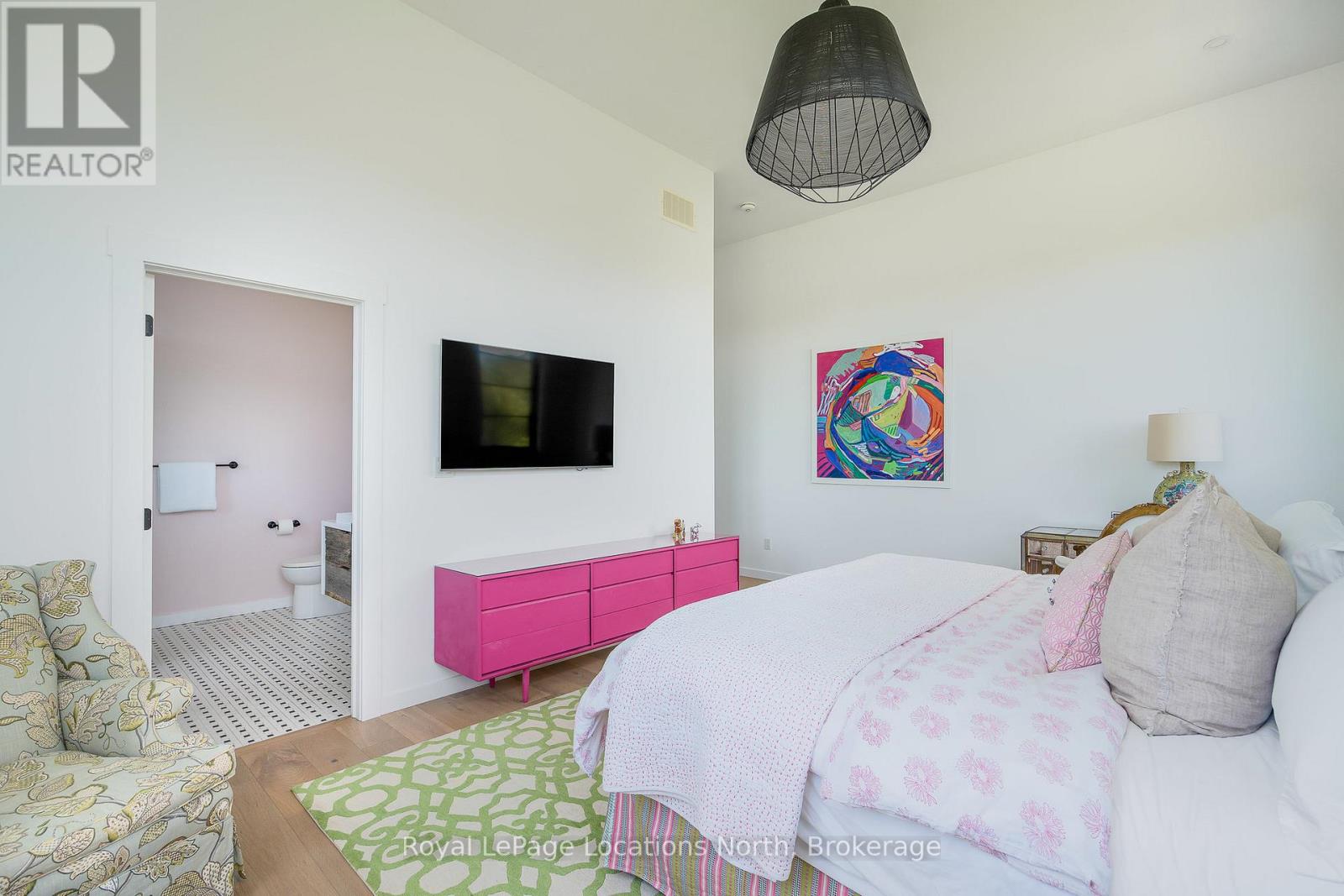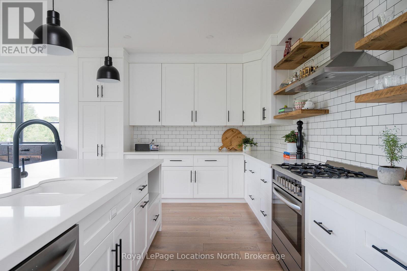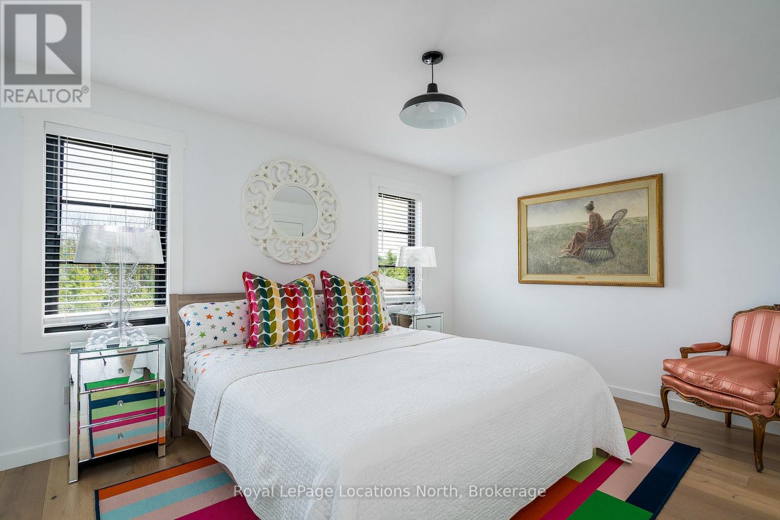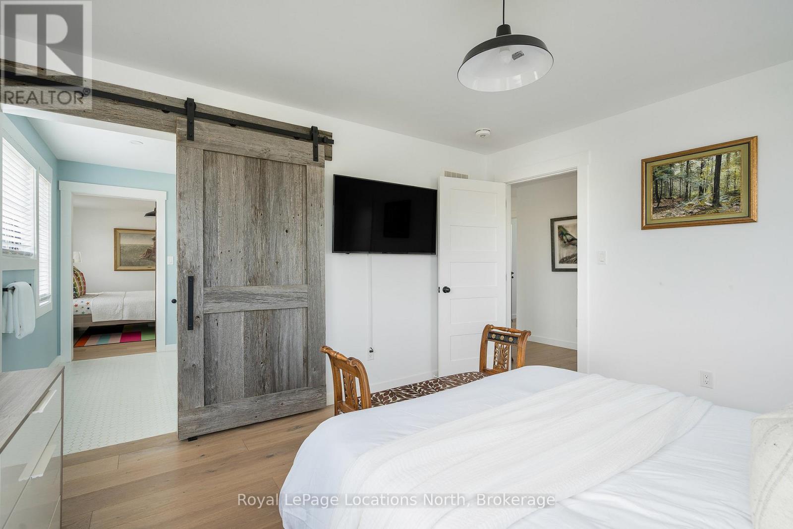 Welcome to one of Collingwood's most exclusive addresses, where elegance and comfort blend seamlessly in this custom-built two-storey home. Set on an impressive 66 x 167 ft full town lot, this residence offers over 3,700 sq ft of beautifully finished living space, with 5 bedrooms and 4 bathrooms designed for modern family living and entertaining. From the moment you step inside, soaring ceilings and sun-filled windows create a sense of openness and light. The main floor showcases wide-plank white oak engineered hardwood and thoughtful details throughout. At the heart of the home, the gourmet kitchen invites gathering with its quartz countertops, oversized island, and high-end appliances. The living room makes a statement with its dramatic 20-ft ceiling, cozy gas fireplace, and expansive sliding doors that lead to a private and peaceful backyard. Upstairs, retreat to the luxurious primary suite with remote-controlled blinds, a spacious walk-in closet, and a spa-inspired ensuite featuring double sinks, glass shower, and soaker tub. Two additional spacious bedrooms share a stylish Jack & Jill bathroom, perfect for family or guests. The fully finished lower level extends the living space with a generous recreation room, two more bedrooms, and a five-piece bath. Modern touches like shiplap and barnboard accents bring warmth and character throughout. Outdoors, enjoy a two-tiered deck and hot tub surrounded by nature. The large, private yard would be perfect for a pool. With amazing neighbours, a walkable location to Collingwood's best schools and downtown, and endless style and comfort, this home is truly a must see. (id:64974)