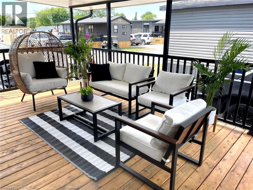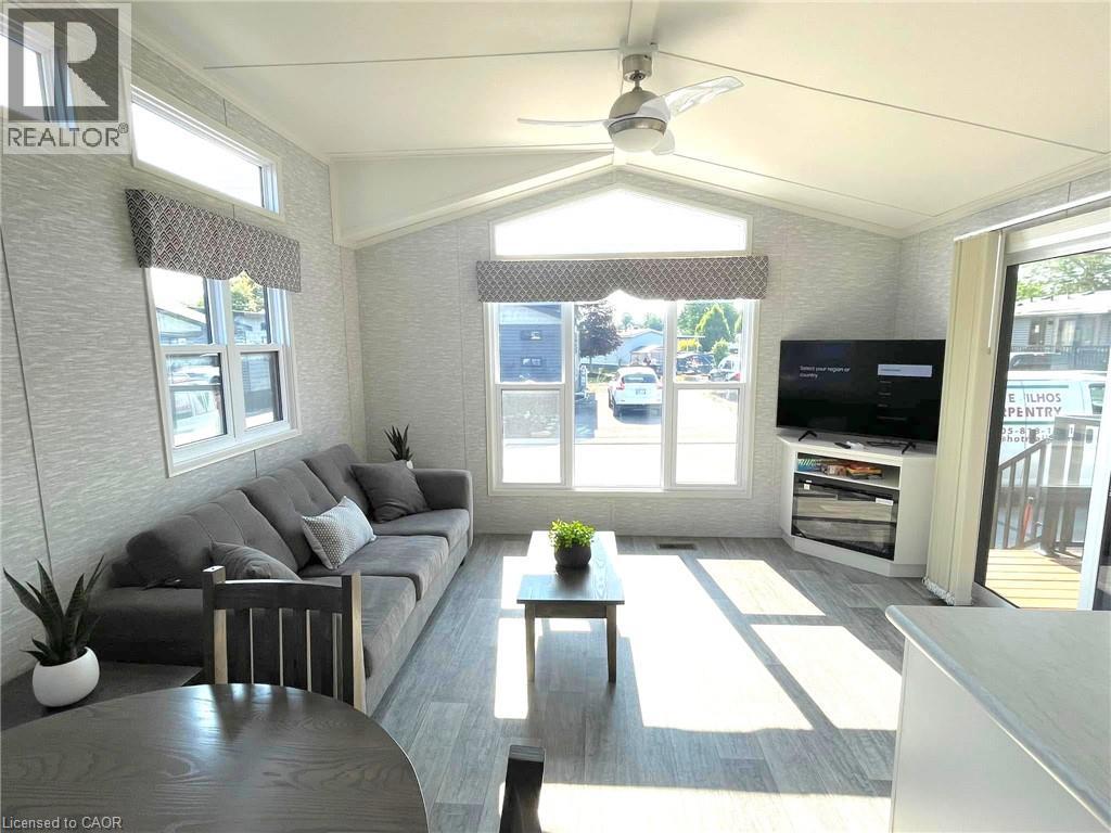 Welcome to 157 Quarry Meadows. Located in private highly sought after Sherkston shores Resort community. Open from May 1st to November 1st each year. whether you're looking for a personal get away or smart investment, this property offers amazing income potential of $2300 rent per 3 day weekend. This beautiful 4 year new cottage is in ready move in condition coming fully furnished and only minutes to the beach. Offering 2 full bedrooms open concept kitchen and living room, large deck for entertaining, shed and parking for 3 cars. Conveniently located 90 mins from Toronto 20 minutes from Niagara Falls and spans 560 acres of stunning grounds and 4km of sandy beach. Park offers entertainment/events all season, walking trails, dog park, 24 hour security, lawn cutting, landscaping, large garbage pickup, resort wide wifi, 8 seasonal resort passes for family or guests, beach access plus quarry , waterpark, pools splash areas, mini golf, fitness centre, sports courts(basketball and tennis, club houses and lounges. (id:64974)