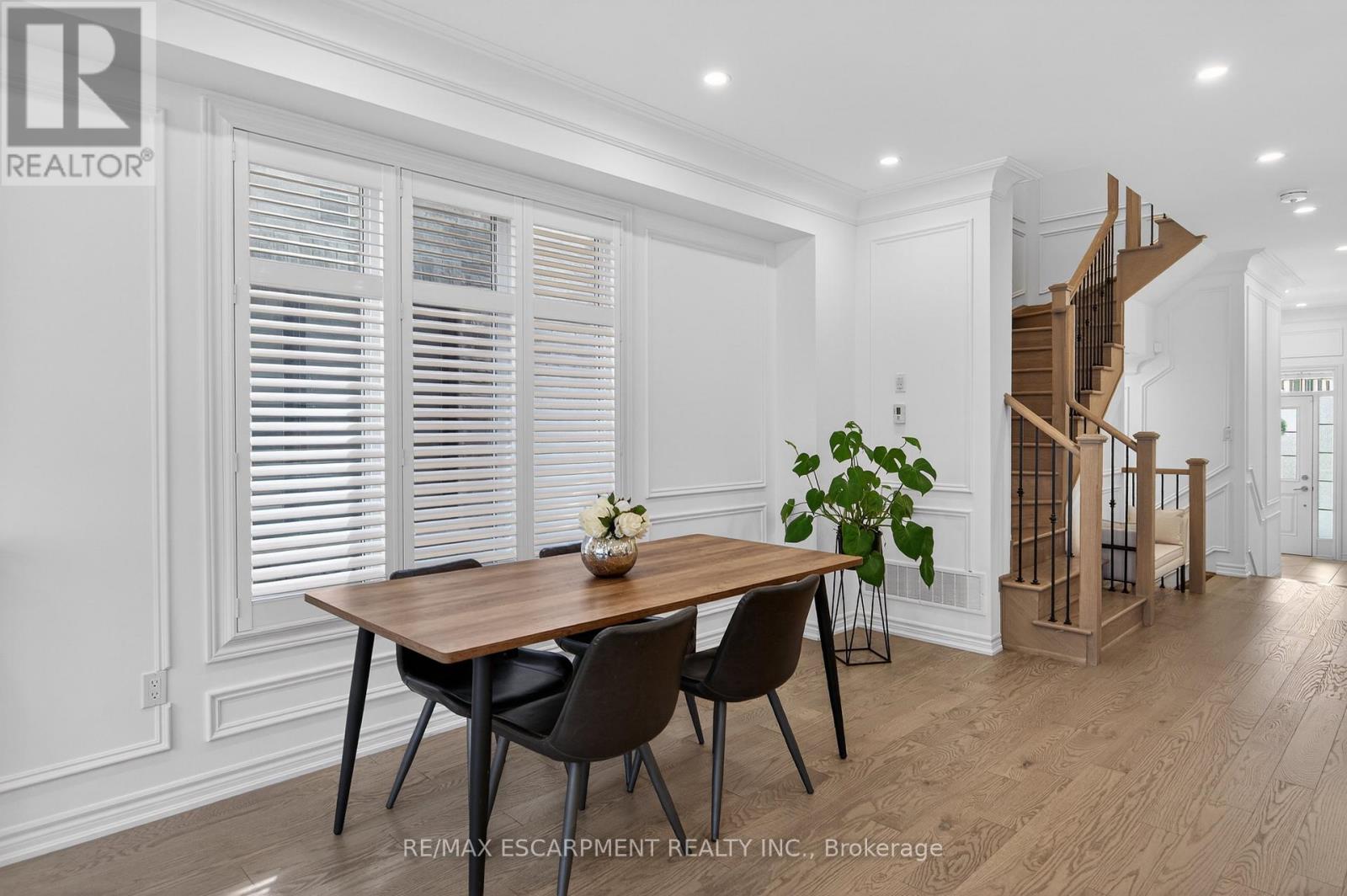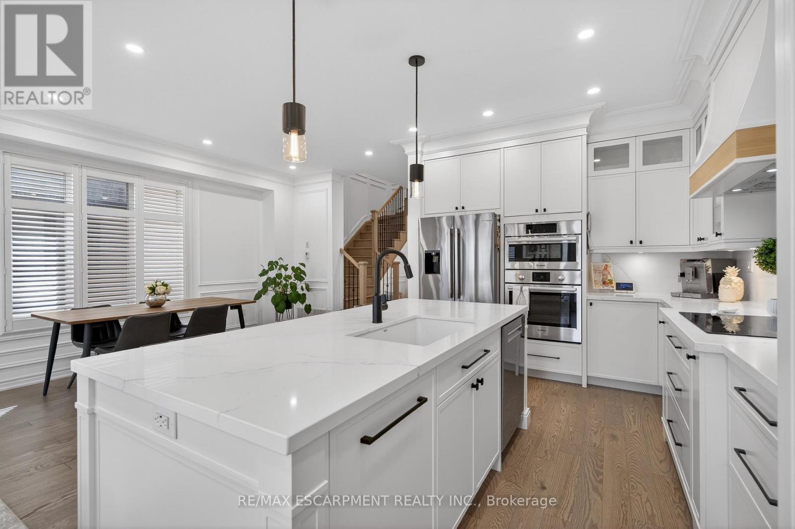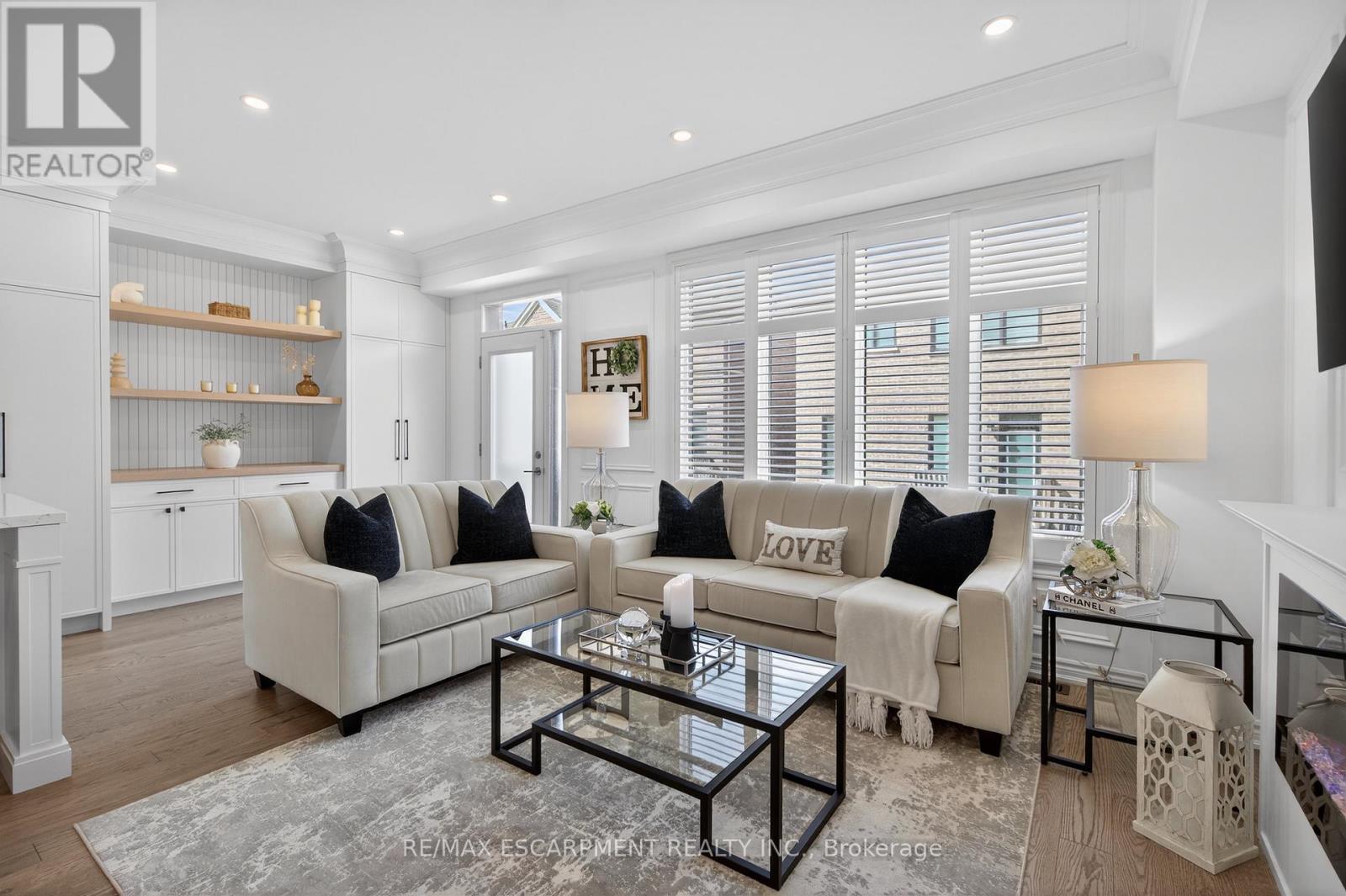 Welcome to this gorgeous, one-of-a-kind 4-bedroom end-unit townhome, ideally located on a quiet street in the highly sought-after South West Walkers community. Thoughtfully designed and meticulously maintained, this home showcases upscale finishes and a functional, modern layout perfect for families and entertainers alike. Main Level Open-concept layout with smooth ceilings, elegant crown moulding, and custom wainscoting, Upgraded engineered hardwood flooring and California shutters throughout , Pot lights and an electric fireplace add a ambiance to the spacious living area, Renovated Chef inspired kitchen featuring a full wall of sleek cabinetry with glass inserts, Large pantry and quartz countertops, Generous island with breakfast bar, Under-cabinet lighting, stylish backsplash, and built-in stainless steel appliances, elegant oak staircase with iron pickets leads to upper level, Four generously sized bedrooms including a Luxurious primary retreat complete with walk-in closet and spa-like ensuite, featuring a glass shower, soaker tub, and double sinks, upper level laundry, main bath has double sinks, Located minutes from top-rated schools, Walker Park, scenic trails, Hwy 401 & 407, Milton Sports Centre, Sherwood Community Centre, Milton District Hospital, Rattlesnake Point Golf Club, and so much more. Don't miss your chance to own this exceptional home in a vibrant, family-friendly neighbourhood! (id:64974)
