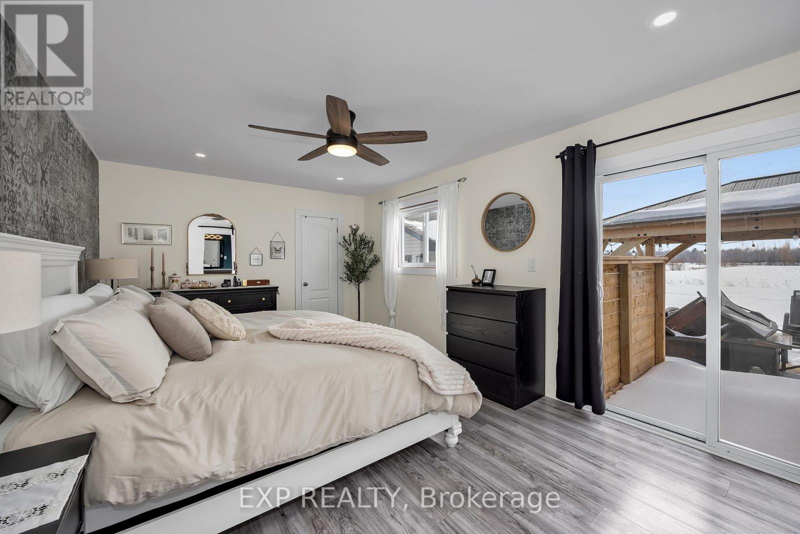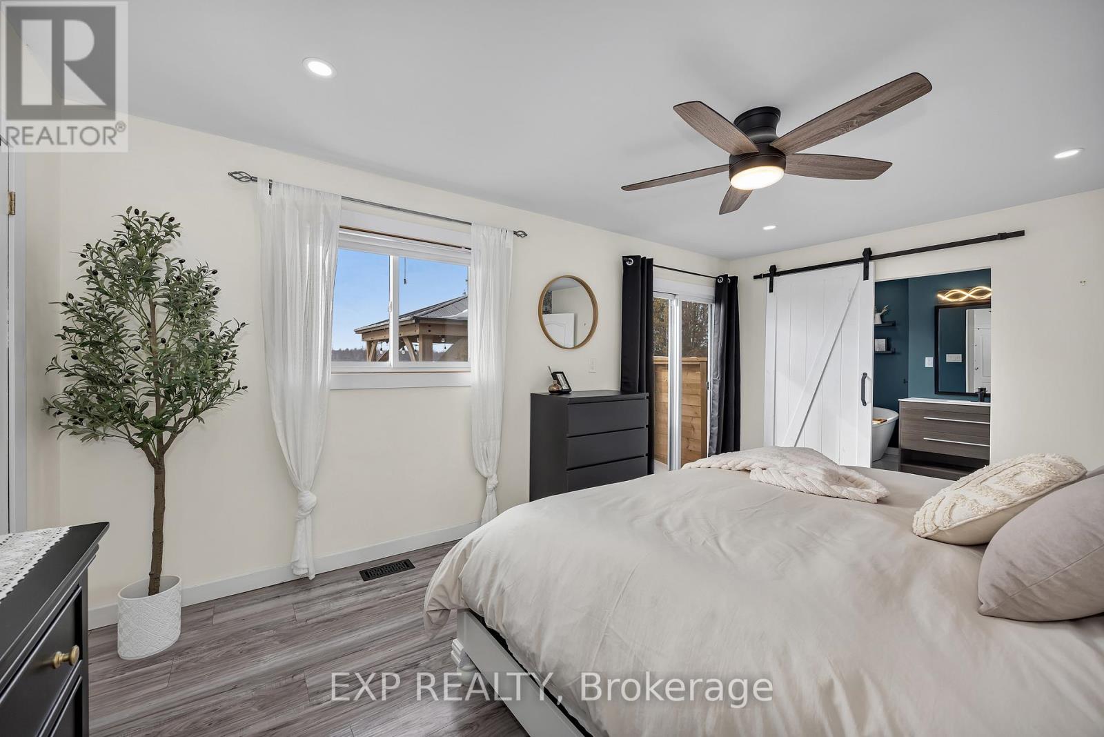 Beautifully updated and meticulously maintained, this charming two-bedroom, two-bathroom bungalow sits on a generous one-third acre lot with no rear neighbours, offering privacy and peaceful surroundings just 15 minutes from the city core. The bright and inviting main level showcases modern finishes throughout, featuring an eat-in kitchen with stainless steel appliances and elegant quartz countertops. The spacious living room is highlighted by an oversized window that fills the space with natural light. The primary suite serves as a relaxing retreat, complete with a luxurious four-piece ensuite boasting a freestanding tub and glass-enclosed shower. A second bedroom and a stylish four-piece main bath complete the level. Downstairs, the fully finished lower level offers a large family room warmed by a cozy wood stove, a dedicated gym area, a laundry room, and ample storage space. For hobbyists or those in need of extra workspace, the detached 24' x 32' garage-heated with its own wood stove-provides comfort and functionality year-round. End your days soaking in the sunset from the recently built deck, the perfect place to unwind and enjoy the tranquility of country living. (id:64974)