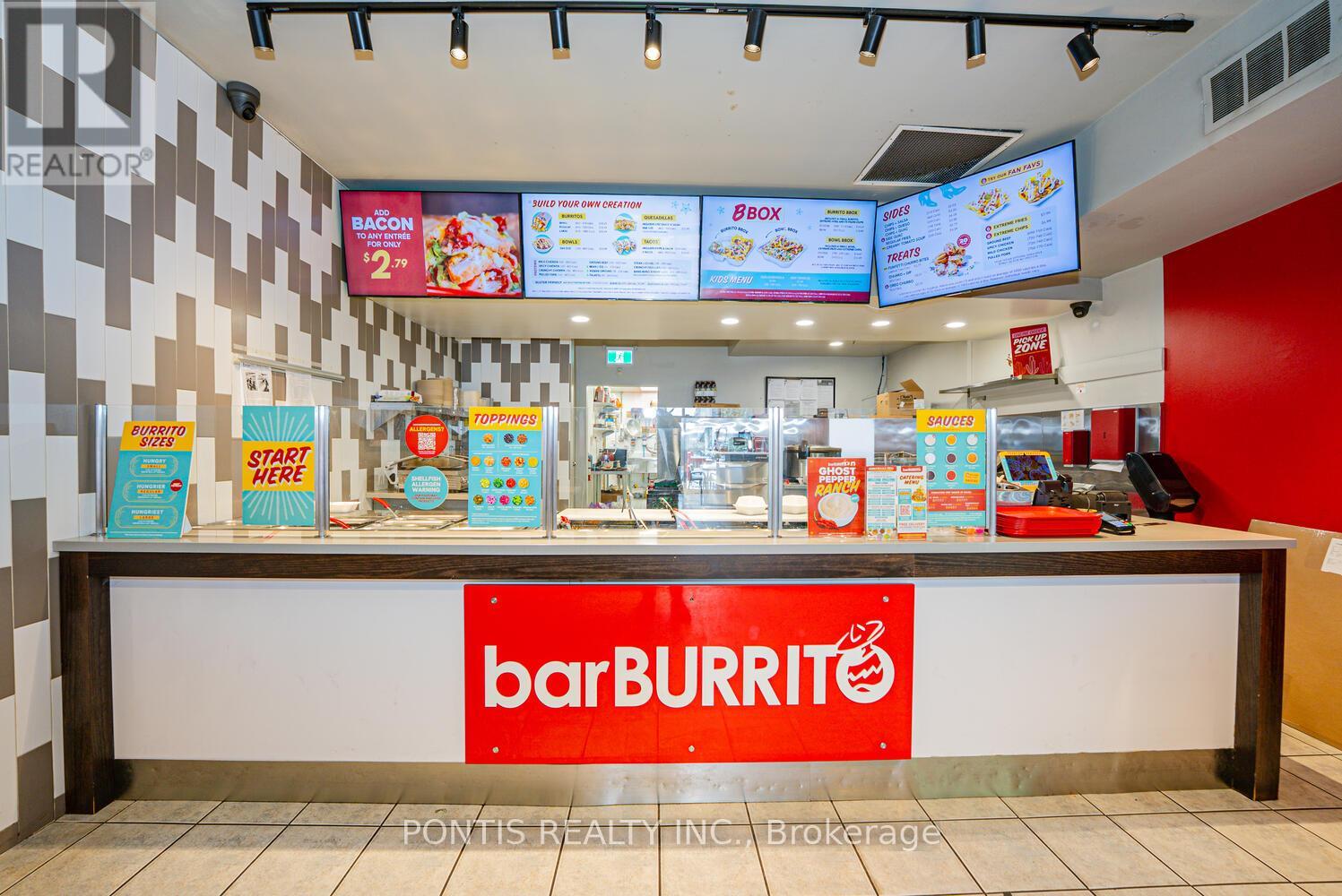 Excellent turnkey QSR in Toronto operating since 2020 with strong, steady income and recurring school orders. ~2,000 sf main level + ~2,000 sf basement (ideal for storage or lease out for added income). Two dedicated parking spots (one currently leased at $310/mo). Gross revenue approx. $600,000. Rent incl. TMI & water approx. $11,000/mo. Head lease held by Bar Burrito and sub-leased to current owner. Great visibility and growth potential. (id:64974)
