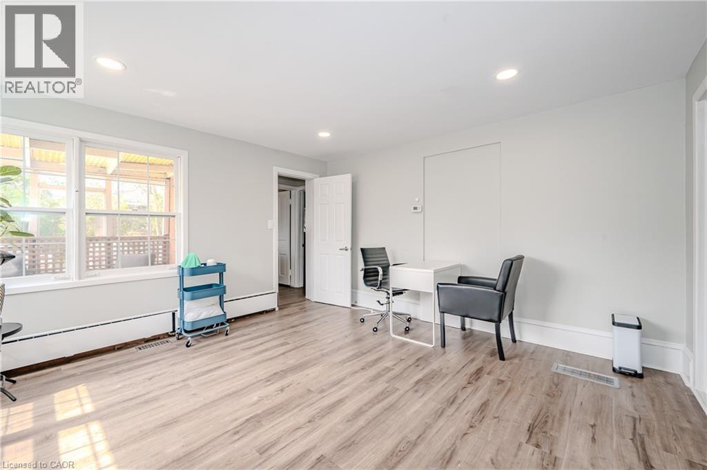 Beautifully updated boutique office space in the heart of downtown Burlington, ideal for wellness practitioners, therapists, or client-focused professionals seeking a more private and inviting setting. This thoughtfully laid-out unit features two spacious treatment or office rooms, a welcoming vestibule/reception area, private 2-piece washroom, and kitchenette. The layout allows for seamless client flow and separation between workspaces. A standout feature is the charming covered porch, offering a rare and calming transition space for clients, perfect for practices focused on comfort, privacy, and experience. Recent updates include modern flooring, fresh paint, and upgraded lighting. Large windows provide abundant natural light, enhancing the warm and professional atmosphere. Two dedicated parking spaces included. Utilities included except hydro. Excellent central location with easy access to downtown amenities, transit, and major routes. (id:64974)