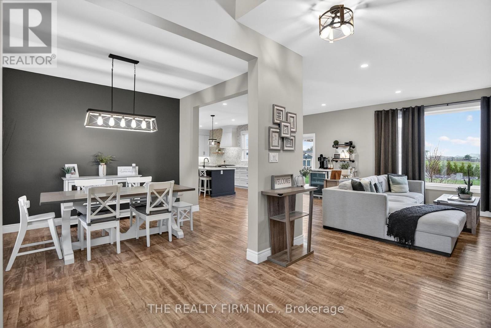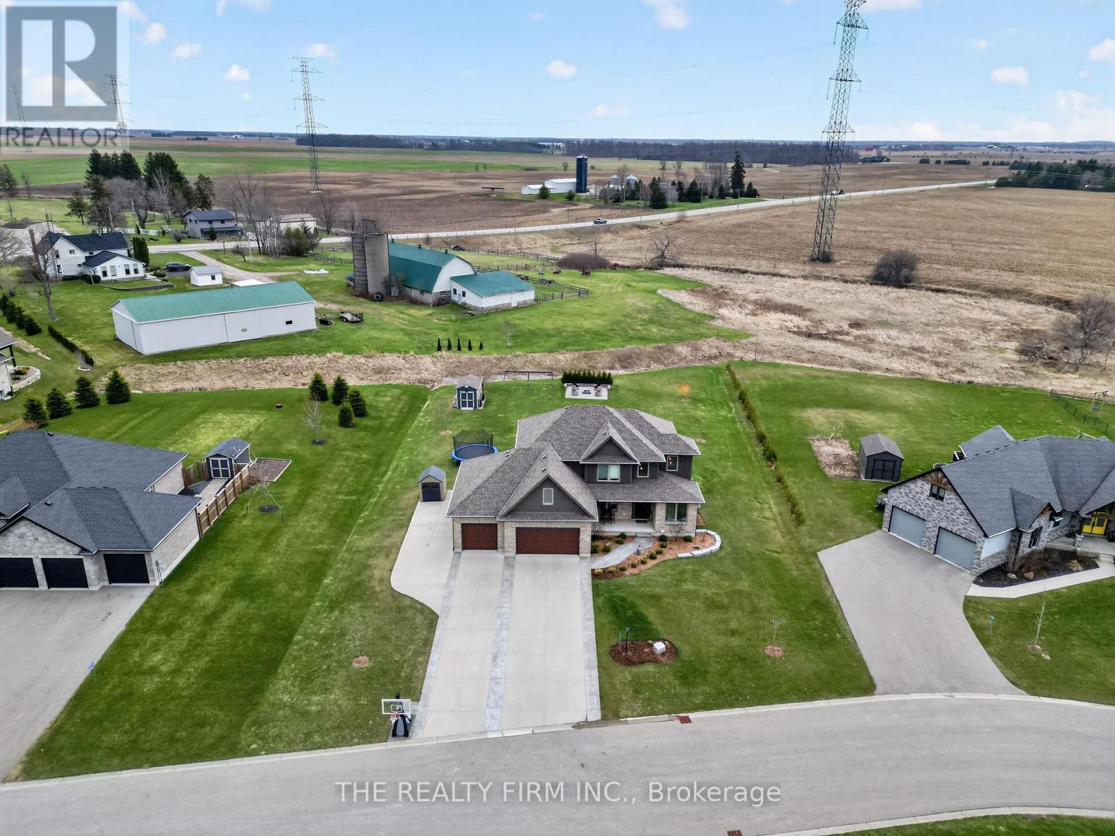 Welcome to 49287 Ashland Avenue in the peaceful community of Lyons-an exceptional custom-built family home set on a beautifully landscaped ~0.73 acre lot, backing onto open farmland and offering the perfect blend of country serenity and modern convenience, just minutes to Aylmer and Hwy 401.This impressive 4+1 bedroom, 3+1 bathroom home showcases quality craftsmanship and a thoughtfully designed layout ideal for both everyday living and entertaining. From the moment you arrive, the striking curb appeal is evident with a triple-wide concrete driveway, stamped concrete walkways, and additional space for RV or boat parking, all leading to the attached 3-car garage complete with built-in workspace, storage, and EV charging capability.Step inside to a grand foyer with cathedral ceilings, leading to a bright and spacious main floor. The heart of the home is the stunning kitchen featuring quartz countertops, a large island, pantry, abundant cabinetry, and a wine cooler, with walkout access to the rear deck overlooking sweeping country views. The inviting family room is anchored by a natural stone gas fireplace with custom built-in shelving. A formal dining room, private office, and convenient mudroom with powder room complete the main level.Upstairs, retreat to the luxurious primary suite offering generous space, a spa-inspired ensuite with double vanity, soaker tub, and double shower, along with an oversized walk-in closet. Three additional bedrooms, a full bathroom, and an upper-level laundry room provide comfort and practicality for the whole family.The fully finished basement extends your living space with a large rec room, additional bedroom, 3-piece bath, and ample storage including a cold cellar. Enjoy outdoor living at its finest with a stamped concrete patio and deck, gas BBQ hookup, and uninterrupted views of the surrounding countryside-perfect for relaxing or entertaining. High-quality home in a quiet and safe cul-de-sac setting, this property truly has it all. (id:64974)