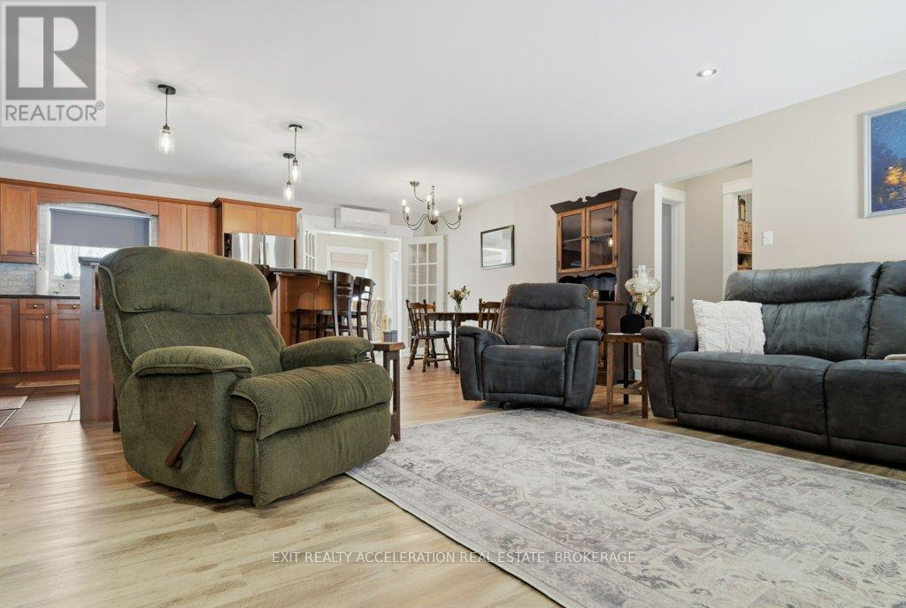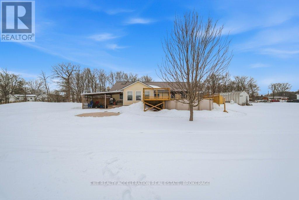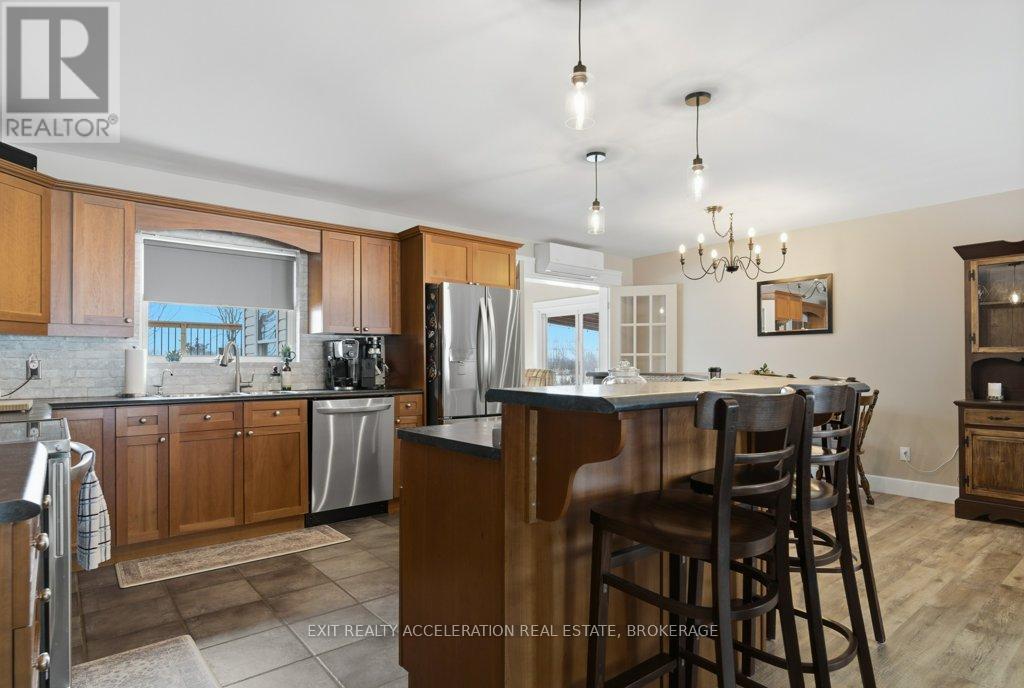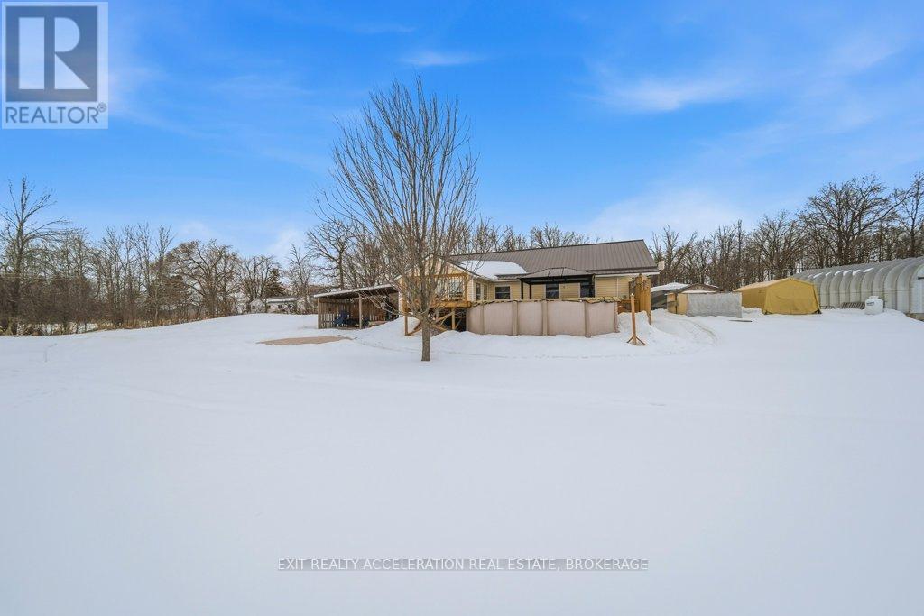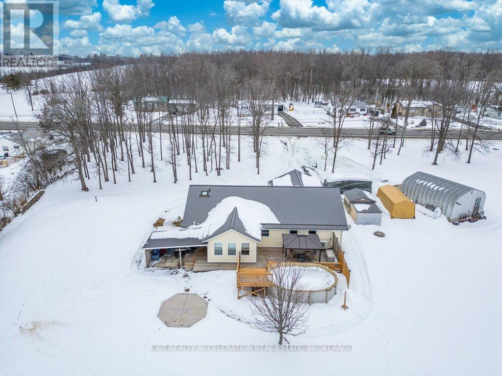 Located just south of Napanee, this well-maintained one-storey, slab-on-grade home offers comfortable country living with open views of plentiful farmland to the rear. Built in 2006 and finished with low-maintenance vinyl siding, the home provides practical design and efficient living all on one level. Inside, you'll find three bedrooms and two bathrooms, thoughtfully laid out to accommodate both family life and entertaining. The dining area opens into a bright sunroom that overlooks the back deck and pool area, creating a seamless connection between indoor and outdoor spaces and offering a peaceful setting to relax while taking in the surrounding countryside. In-floor radiant heat runs throughout the home, delivering consistent warmth and comfort year-round, mini splits provided heat and cool to the home, and a central vacuum system is already installed for added convenience. Beyond the home, the property also features a Quonset hut equipped with propane heat, providing excellent space for storage, hobbies, or workshop use. With its combination of functional outbuildings, efficient construction, and scenic rural views just minutes from town amenities, this property presents a fantastic opportunity to enjoy country living close to Napanee. (id:64974)