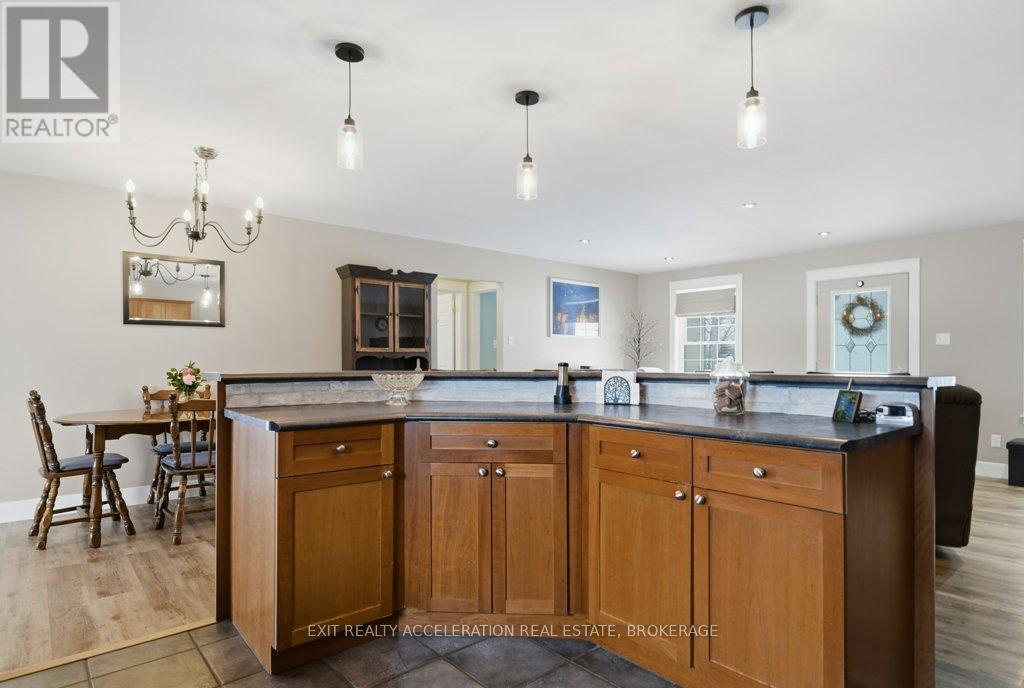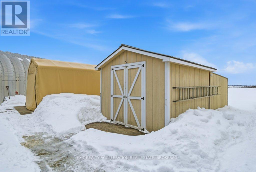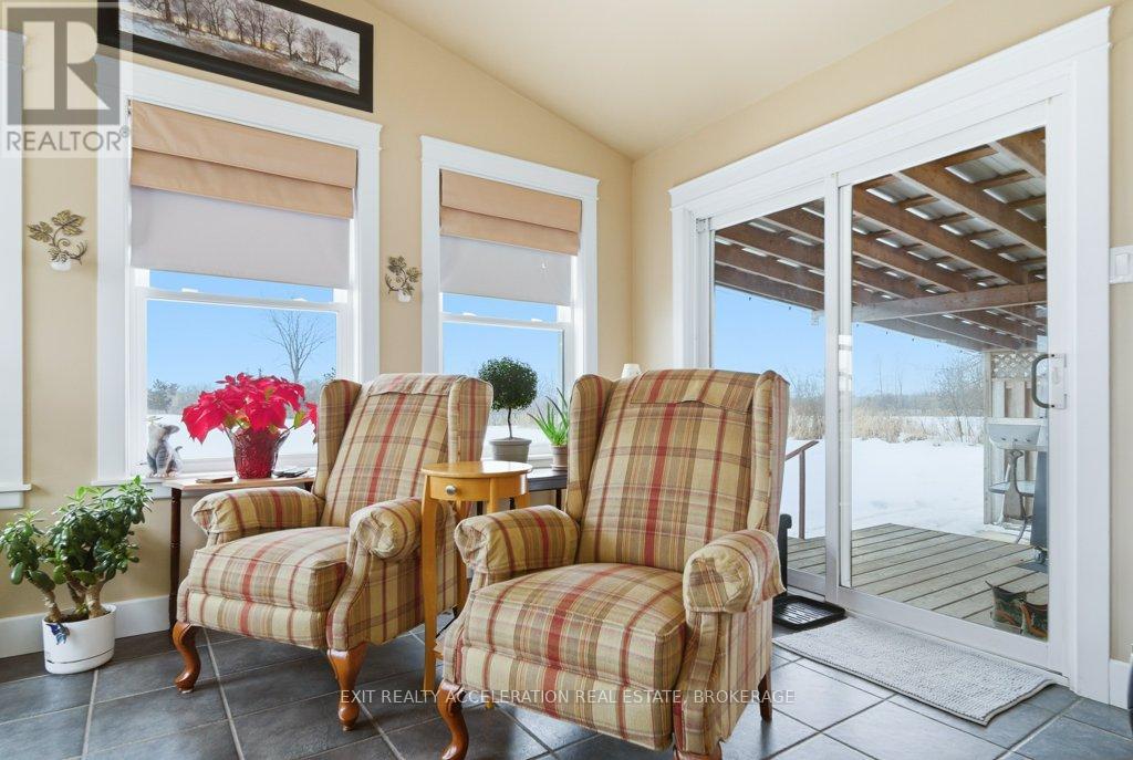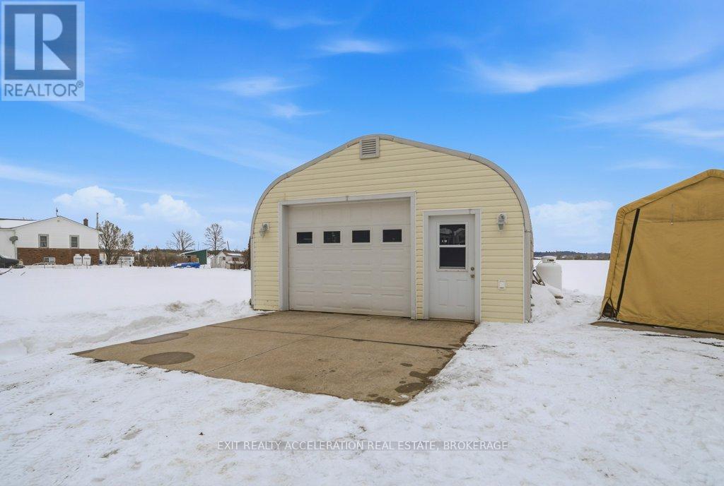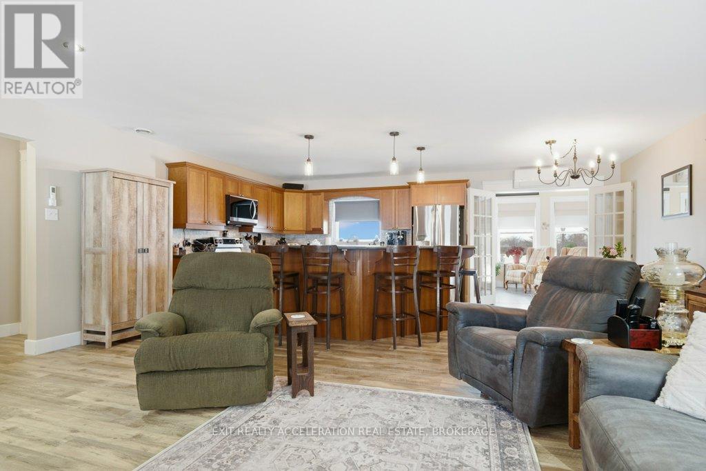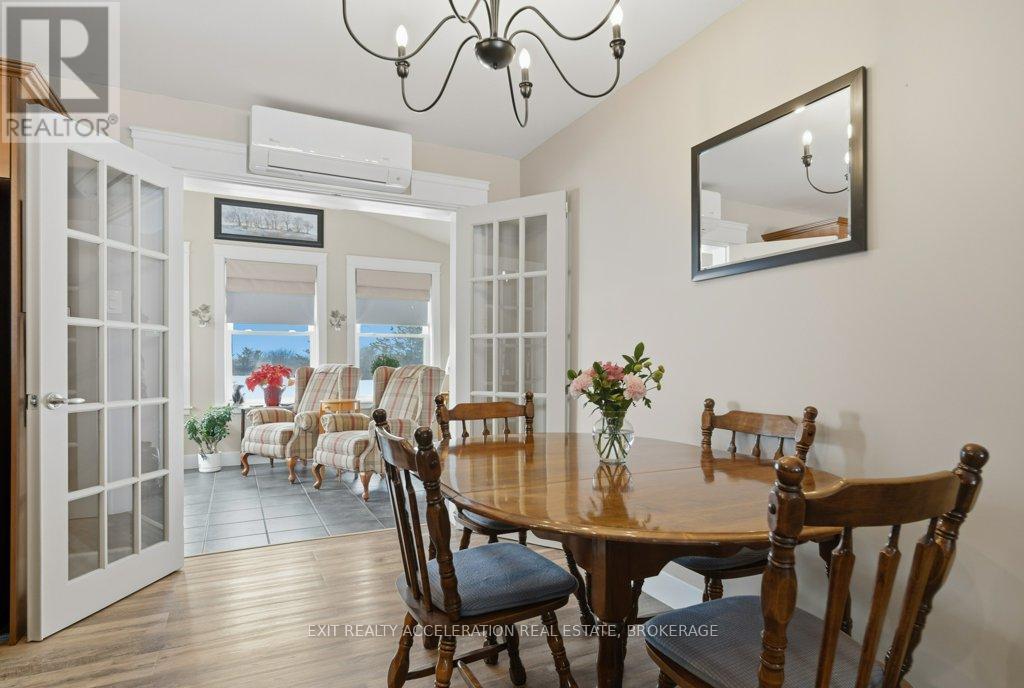 Located just south of Napanee, this well-maintained one-storey, slab-on-grade home offers comfortable country living with open views of plentiful farmland to the rear. Built in 2006 and finished with low-maintenance vinyl siding, the home provides practical design and efficient living all on one level. Inside, you'll find three bedrooms and two bathrooms, thoughtfully laid out to accommodate both family life and entertaining. The dining area opens into a bright sunroom that overlooks the back deck and pool area, creating a seamless connection between indoor and outdoor spaces and offering a peaceful setting to relax while taking in the surrounding countryside. In-floor radiant heat runs throughout the home, delivering consistent warmth and comfort year-round, mini splits provided heat and cool to the home, and a central vacuum system is already installed for added convenience. Beyond the home, the property also features a Quonset hut equipped with propane heat, providing excellent space for storage, hobbies, or workshop use. With its combination of functional outbuildings, efficient construction, and scenic rural views just minutes from town amenities, this property presents a fantastic opportunity to enjoy country living close to Napanee. (id:64974)