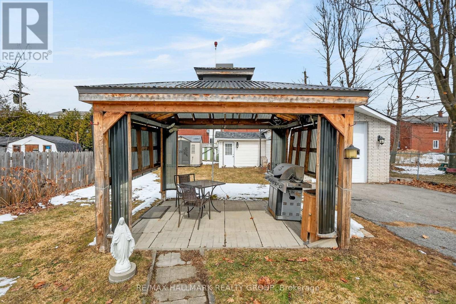 This well-maintained and freshly painted bungalow offers a perfect blend of classic charm and modern functionality, highlighted by a sun-drenched, south-facing living room with gleaming hardwood floors and a cozy gas fireplace. The heart of the home is a spacious country-style kitchen featuring ample cabinetry and a generous dining area, while the third bedroom provides a seamless transition to outdoor living through patio doors leading to the backyard deck. Adding incredible value for multi-generational living or rental potential, the bright lower level features a fully independent in-law suite with a private side entrance, a secondary kitchen, a large bedroom, a dedicated office, and an updated 4-piece bathroom. The outdoor space is a true retreat, complete with a gazebo, swing, and garden shed, but the real showstopper is the detached, gas-heated garage boasting a 10-foot door and professional-grade workspace perfect for any mechanic or hobbyist. With peace of mind provided by significant recent updates, including the furnace, A/C, and appliances (3 years), the garage roof (3 years), the windows (8 years) and the house roof (7 years), this home is truly move-in ready and built to impress. (id:64974)