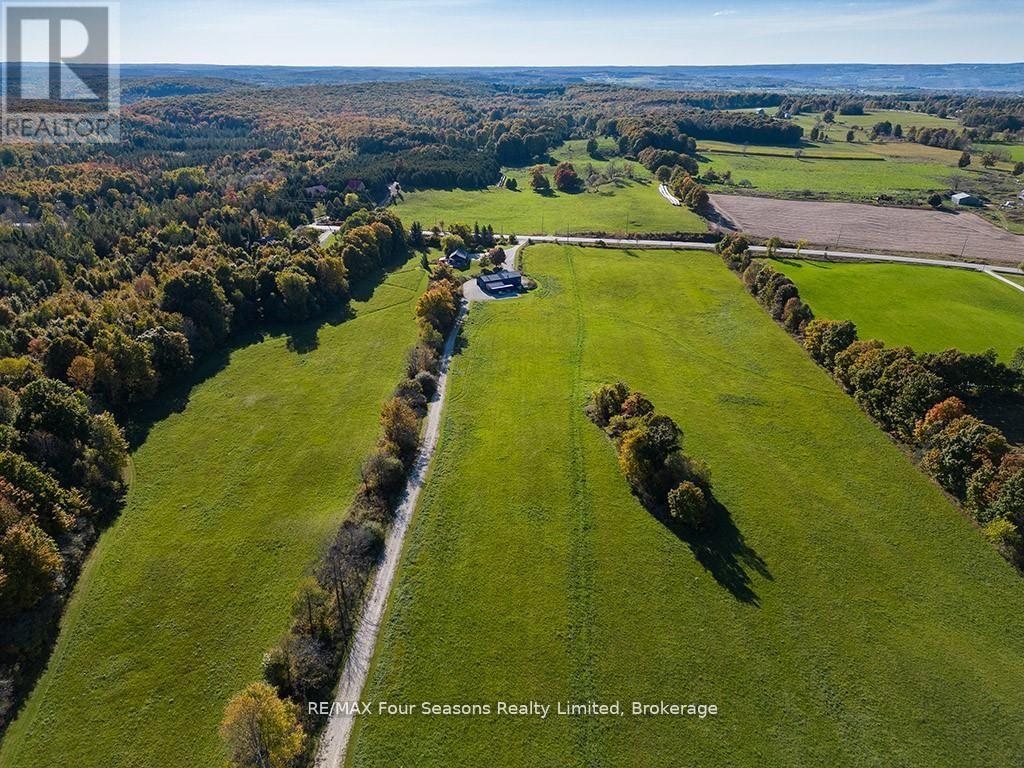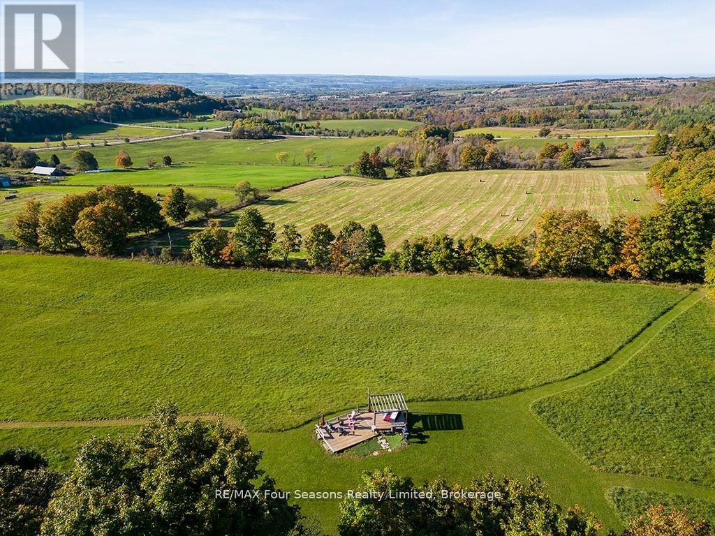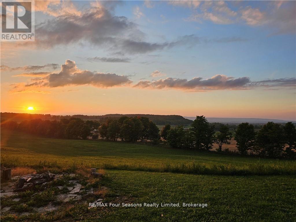 SPECTACULAR VIEW PROPERTY: Nestled on almost 25 stunning acres, this property offers some of the most expansive and breathtaking views in the area, with sweeping panoramas of Georgian Bay, the Beaver Valley, and the iconic Niagara Escarpment. It's the perfect place to bring your dream home to life, on a blank canvas, with all the infrastructure already in place. The driveway is already created, providing easy access to the building site. Electrical is already installed and connected and there is a buried conduit ready for additional future services. This sprawling lot is full of potential, and previously-approved building plans help to make it easier to turn your vision into reality. From its elevated vantage point, the property delivers uninterrupted scenic beauty, with direct Bruce Trail access as it winds through the top, offering an instant connection to nature. Outdoor enthusiasts will find endless adventures, with skiing, hiking, and biking just steps away. While your new home takes shape, the recently totally renovated 2-bedroom, 1-bathroom bungalow offers a comfortable living space. Updated in 2018, the bungalow features a charming wood-burning fireplace, alongside modern upgrades to the furnace, electrical, and plumbing systems. A large heated and winterized barn adds to the property's appeal, providing ample room for equipment, recreational toys, or a workshop. This property is a rare find, offering both tranquility and endless outdoor opportunities, making it the ultimate setting for your future home. (id:64974)