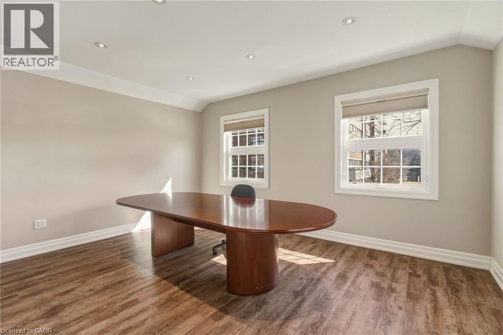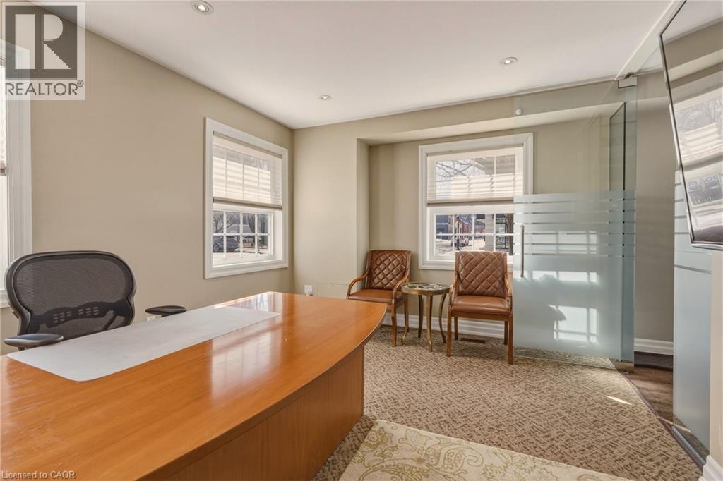 Discover the perfect blend of modern elegance & prime location with this exceptional property in downtown Burlington. Updated from top to bottom, this striking office space boasts *incredible curb appeal*, making it a standout choice for businesses seeking visibility & accessibility. Spanning approximately 6,867 sq. ft., the layout is designed for functionality & flow. Featuring **16 offices**, this space accommodates teams of any size, ensuring privacy & productivity. Four well-appointed boardrooms provide ideal settings for meetings & presentations, while four full washrooms enhance convenience for staff & clients alike. Ample on-site parking with **12 dedicated spaces**, a rarity in this bustling area, allowing easy access for employees & visitors. The property benefits from **four main floor entrances** & an additional lower-level egress entrance, streamlining traffic & enhancing accessibility for everyone. Storage needs are met with **three designated areas**, perfect for keeping your office organized & efficient. Plus, the location is unbeatable. Just a short stroll away, you'll find the stunning waterfront, delightful restaurants, & charming shops, making it easy to unwind or entertain clients after a productive day. This property is more than just an office space; it’s a strategic investment in a vibrant community. Whether you're looking to expand your business or seeking a prime location for your new venture, this property offers the ideal setting to thrive. Don’t miss your chance to own a piece of downtown Burlington—where opportunity meets lifestyle. Seize this opportunity & elevate your business to new heights! (id:64974)
