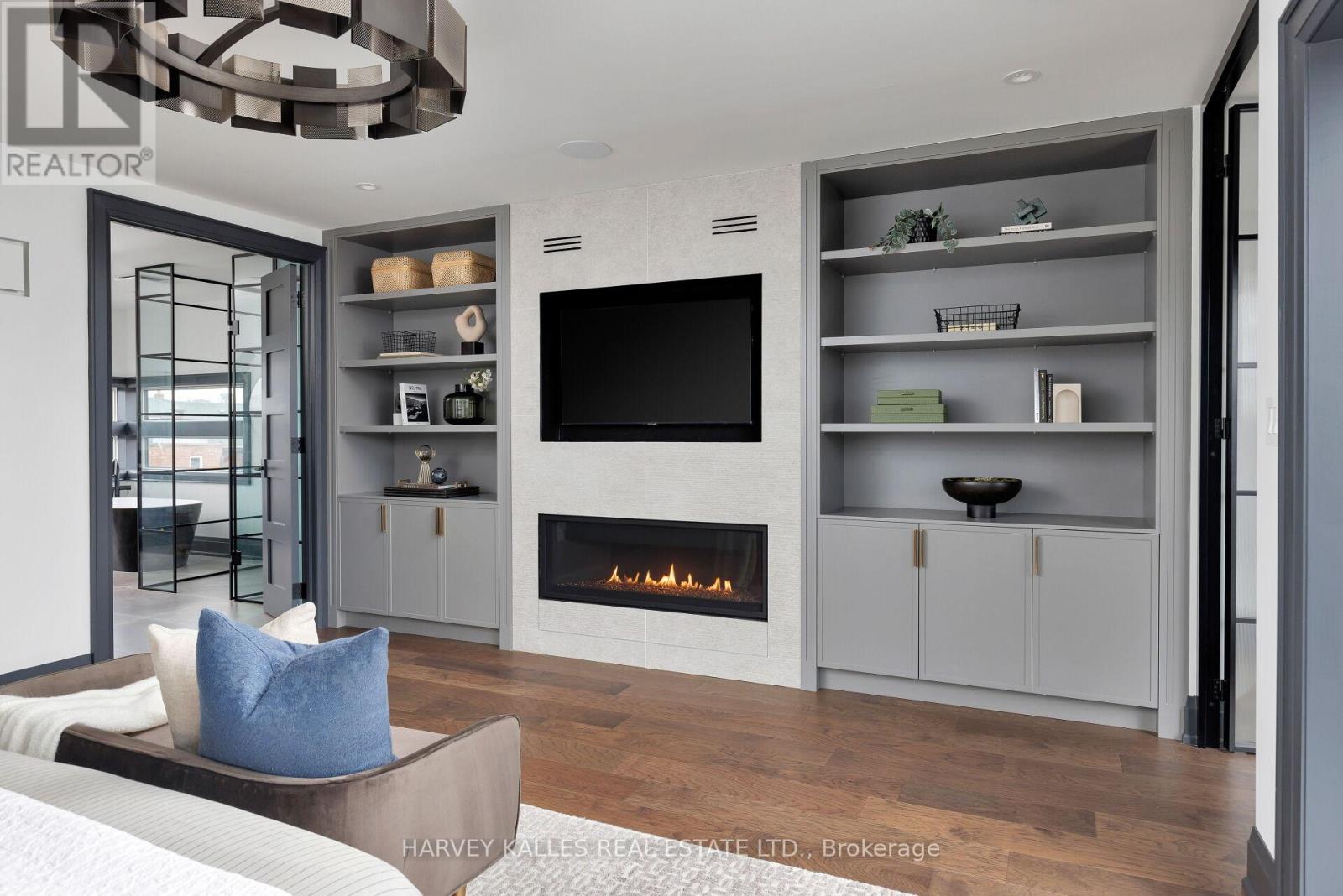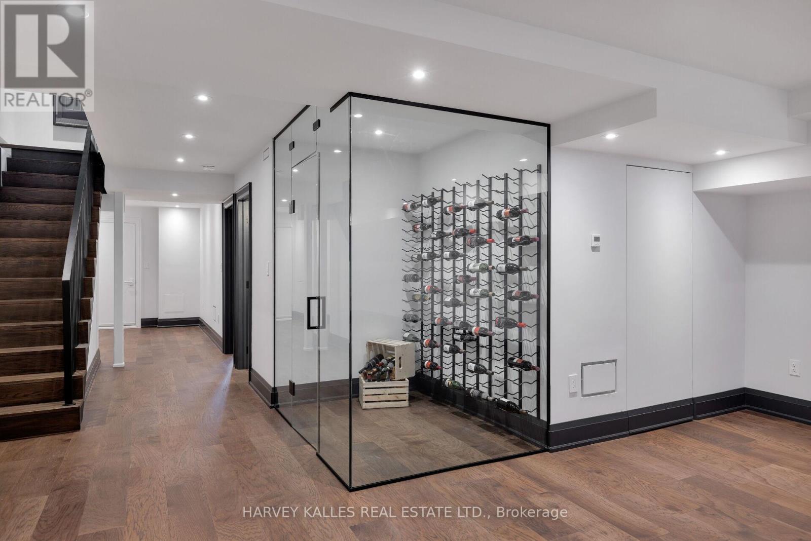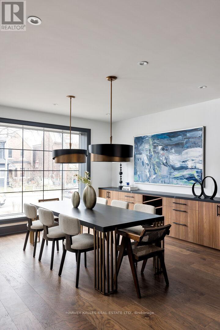 Neighbourhood-defining interior design by Glen Peloso with Decorators and Designers Association of Canada hosting their Design Showcase this March at the property. Discover Toronto's take on a New York-inspired industrial soft loft. Builders went to committee and created this Detached spectacular sprawling and carefully crafted family home offering nearly 4,500 sq ft of living space across four levels, with approximately 3,100 sq ft above grade, set on a 27.98-ft wide lot. The Massive Detached garage backs onto a Laneway that begs for a coach house. The bright, wide-plank main level features an east-facing dining area flooded with natural light, flowing into a custom chef's kitchen with oversized island, separate built-in refrigerator and freezer, bespoke lighting, and exceptional storage. Factory-inspired glass walls and double doors lead to an elegant family room with fireplace, custom built-ins, and a full wall of glass opening to a large outdoor deck. A rear mudroom with built-in seating and storage adds everyday functionality. Powder room finished with custom New York streetscape wallpaper.The primary retreat occupies the entire third floor, introduced by a dramatic landing with an east-facing sunroom wrapped in floor-to-ceiling windows, complete with coffee station and wet bar. Step out to a city-skyline views from the observation deck. The primary bedroom features abundant natural light, custom built-ins, and fireplace, complemented by a spa-like ensuite and an exceptional walk-in dressing room with centre island, skylight, and extensive shelving.The second floor offers a large bedroom with private 4-pc ensuite, two additional generous bedrooms with balcony access, a full laundry & second utility room, and an additional 4-pc bath.The lower level spans approximately 1,200 sq ft, featuring a substantial recreation room, glass-enclosed wine cellar, nanny or guest suite, 4-pc bath, and cantina. 2 AC units and 2 Heat furnaces help balance your atmosphere. (id:64974)