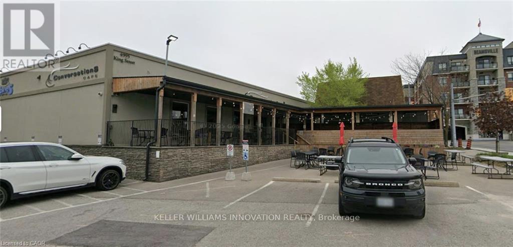 An outstanding opportunity to lease a fully fixtured commercial space located along the Niagara Wine Route in the heart of Downtown Beamsville. Formerly operating as Conversations Café, this well-appointed unit offers existing kitchen infrastructure, service counters, seating areas, and mechanical systems in place-providing an efficient and cost-effective foundation for a new food and beverage concept without the purchase of an ongoing business. The premises benefit from on-site parking, a desirable outdoor covered patio, and two separate entrances, enhancing customer flow, visibility, and operational flexibility for dine-in, take-out, or multi-concept operations. The layout and exposure make this an excellent venue for a wide range of restaurant types-from casual dining and bakery concepts to wine bars, quick-service operators, or specialty eateries-subject to landlord approval and zoning. Beyond hospitality uses, the adaptable footprint and prime location also present strong potential for alternative commercial uses such as retail, professional offices, or boutique services. This is a rare chance to secure a versatile, turnkey-style space in one of Niagara's fastest-growing communities. (id:64974)