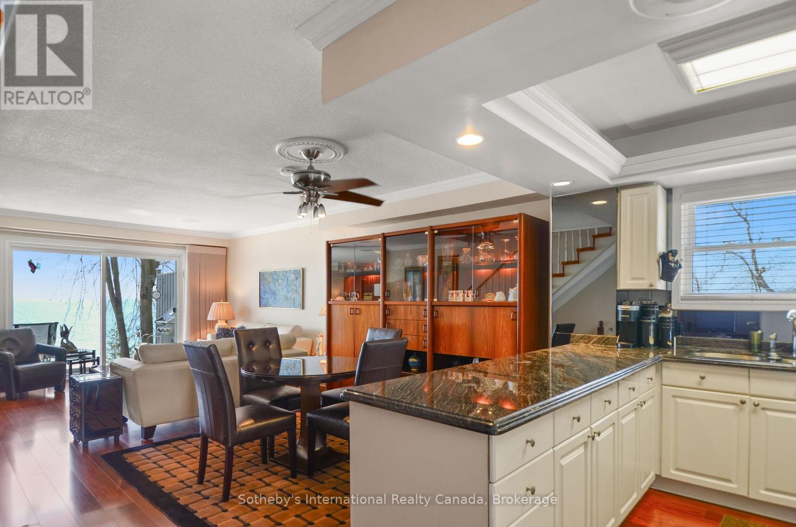 LAKEFRONT LIVING! Don't miss this rare opportunity to own a meticulously maintained end-unit waterfront townhouse condo on Lake Simcoe at a very affordable price. Ideal for professionals, couples, or those downsizing, this turnkey property offers a stylish and convenient lifestyle in a private, 9-unit community, just steps from downtown Orillia. Enjoy a bright, open-concept main floor with a granite kitchen, stainless steel appliances, and a cozy gas fireplace. Relax on your fenced deck with electric awning and stunning lake views. Recent upgrades include new composite decking and railings, a new furnace (Oct/25), updated windows/doors (2019), and a 6-year-old A/C. With spacious bedrooms, a finished lower level, and an attached garage with mezzanine storage, this home has it all. Plus, enjoy access to a shared dock, Kitchener Park's amenities, and easy access to marinas, shopping, and Casino Rama. Waterfront living at this price won't last! (id:64974)