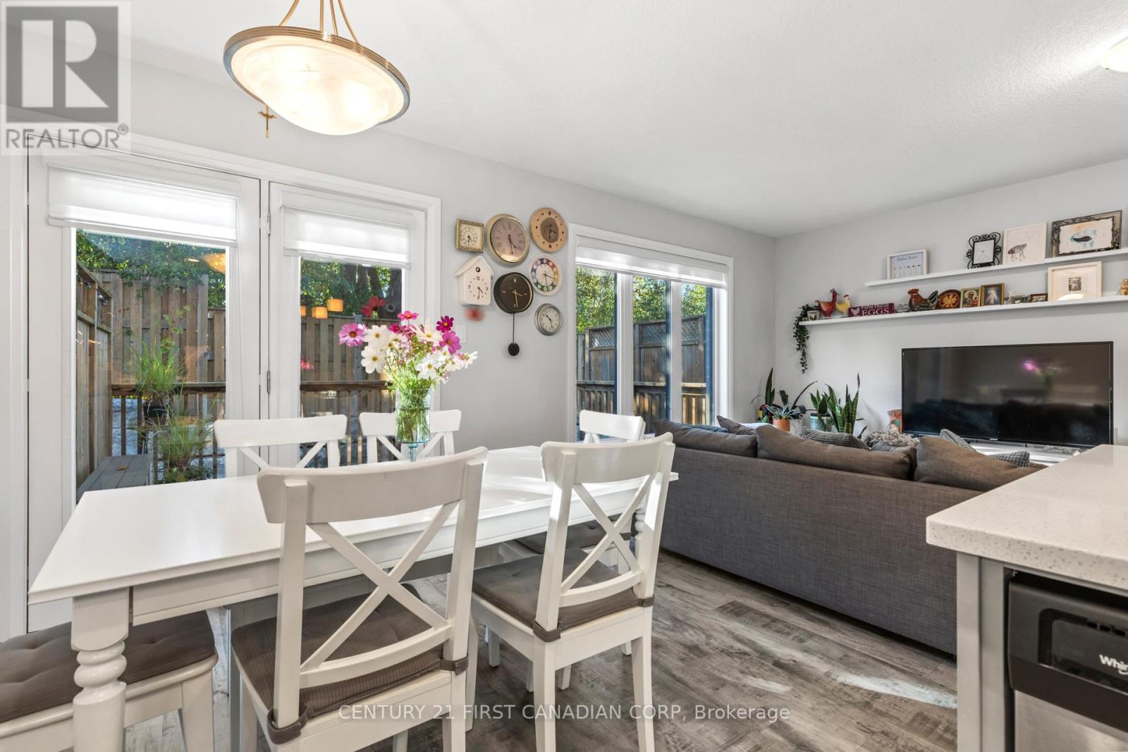 Welcome home to #5-1110 Meadowlark in lovely SUMMERSIDE COMMUNITY of South London! This well-maintained executive townhome complex is situated against the picturesque tranquility of "Meadowlily Woods" along the Thames River with the convenience of close proximity to shopping, schools and HWY 401 via Highbury Avenue corridor. The townhome has been tastefully decorated, all appliances included. spacious living areas in this multi-level unit. Other features include expansive primary bedroom with 5pc ensuite and walk-in closet. On the top level there are 2 more good size bedrooms, 4 pc bath and convenient laundry closet. Kitchen has quartz counters, seating at island, plenty of cabinets space, under counter lighting, patio doors lead to large private deck. Do not miss out on this excellent offering of space. style, location & reasonable condo fees! (id:64974)