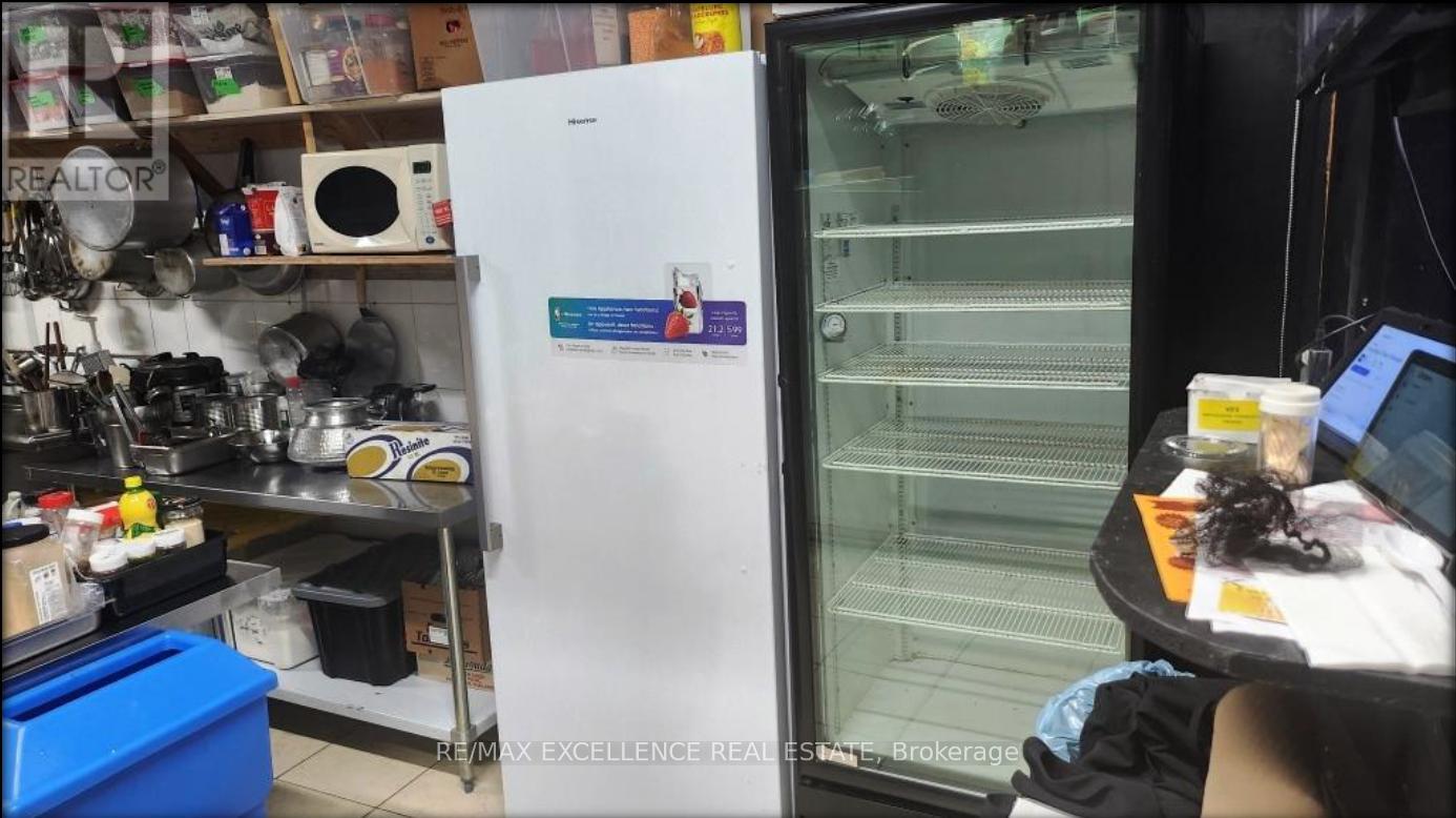 Prime restaurant opportunity with exceptionally low rent of $2,650/month. Features include an 8ft hood, excellent street visibility, and a long-term lease in place until 2032. Ideal for takeout/dine-in restaurant, cafe, bakery, or fast-casual concepts. The space also offers potential to be converted for other permitted uses such as franchise operations, convenience store, or vape store, subject to landlord and municipal approvals. Located in a high-traffic, high-demand area, this property provides affordability, flexibility, and strong business growth potential, making it an excellent option for both new and expanding operators. (id:64974)