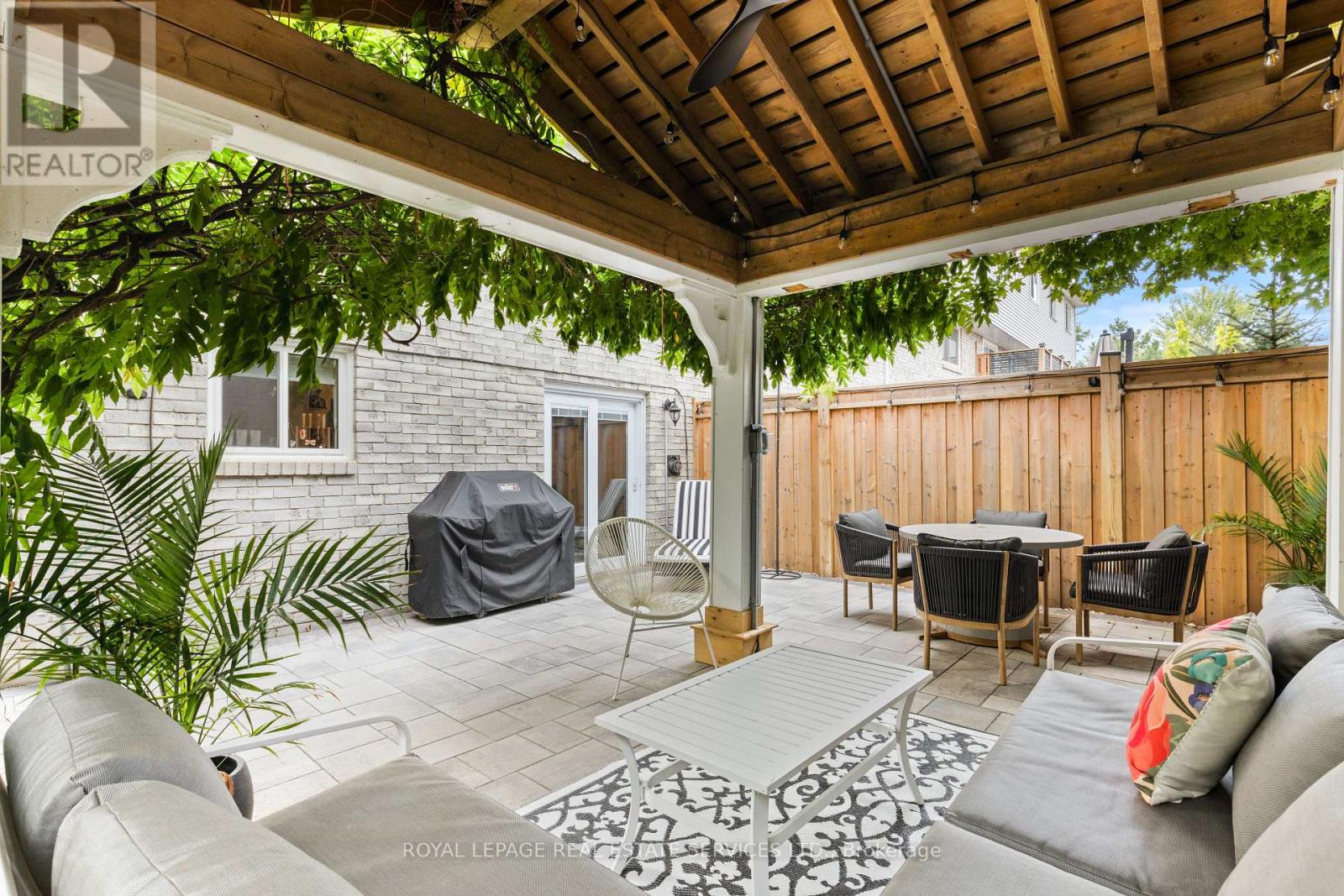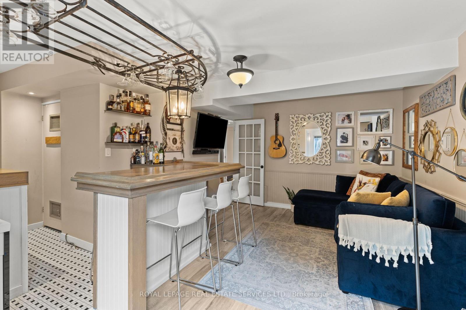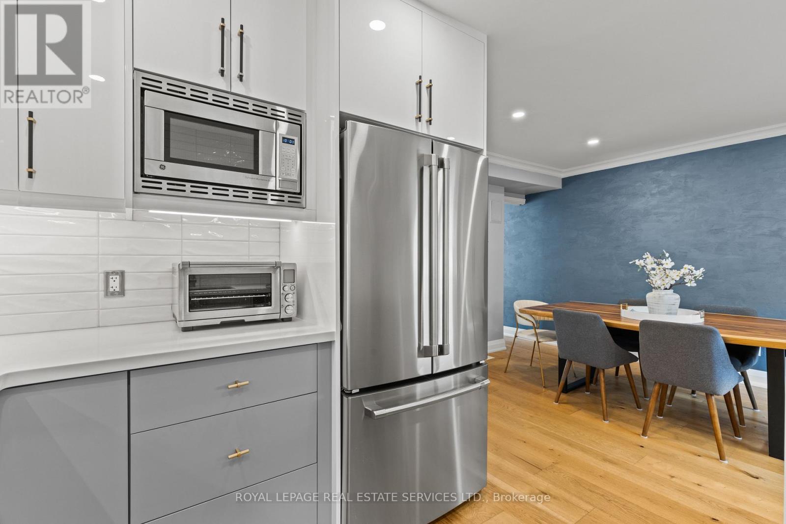 Beautiful Freehold End Unit Townhome in the Heart of Bronte. Welcome to 2303 Marine Drive, Unit5, a rare freehold end-unit townhome in the heart of Bronte Village. Just steps from the lake, marina, & the vibrant shops & restaurants of Bronte, this home offers a lifestyle that is both relaxing & connected. Unique from all the other units in the complex, this home has been extensively updated with stylish finishes & thoughtful design. A custom wood staircase, shiplap detailing, & a striking double-sided fireplace, accessible from both the living and dining rooms create warmth & character that truly set this property apart. A skylight floods the upper level with natural light, enhancing the bright, airy feel throughout. The updated kitchen (2023) features granite countertops & backsplash, while the primary suite is a true retreat with custom built-in double closets, additional storage, & a spa-inspired ensuite with heated floors. The family room is designed for entertaining with a custom bar, &the extended foyer offers an impressive welcome. Hardwood flooring, elegant window coverings, central vacuum, and an inground sprinkler system add both convenience & style. This home also offers two outdoor living spaces: a private back patio perfect for summer gatherings (2024), and a second patio above the garage with walkout access from the living room, the ideal spot for morning coffee, evening cocktails, or simply enjoying the breeze from the lake. Additional highlights include two fireplaces, quality appliances (2023), professional landscaping, an attached garage with inside entry, plus the peace of mind of a new furnace(2022), A/C (2022), tankless water heater (2022), windows (2022) and roof (2017). With just a $120/month maintenance fee, this property combines low-cost ownership with premium living. Dare to compare, this end-unit is truly one of a kind in Bronte. (id:64974)
