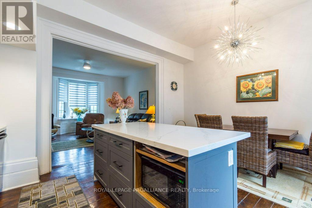 This stunning open-concept Victorian townhome is full of character and charm. Towering ceilings, 16 inch base boards and large windows on both levels that flood the space with natural light. Step inside through the elegant front door to the spacious foyer, powder room, and a stately, original staircase that sets the tone for the home. The main living offers a bright, open layout with generous living room and modern kitchen with centre island perfect for entertaining or relaxing. The primary bedroom features a walk-in closet and direct access to the main bathroom and laundry nestled in the sought-after Old East Hill neighbourhood, close to downtown and just minutes from the 401, Bay of Quinte and the world-renowned wineries and beaches of Prince Edward County. Early possession possible if needed! Extensively renovated about 5 years ago while maintaining the charm of the past. All appliances and window coverings included. (id:64974)