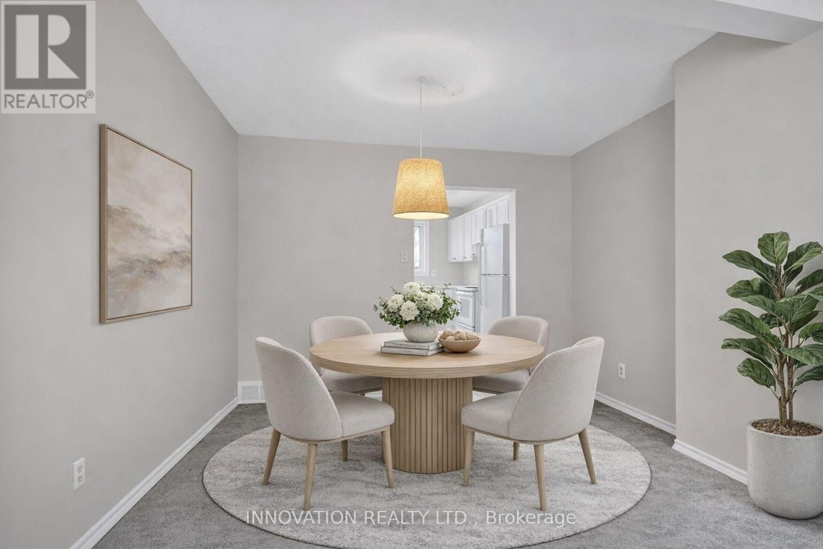 Welcome to your perfect family haven in the heart of Blackburn Hamlet! This beautifully updated townhome boasts fresh paint, plush new carpets, and luxury vinyl flooring. Enjoy the convenience of a main floor powder room and a sun-filled eat-in kitchen, seamlessly flowing into the spacious open concept living and dining areas-ideal for gatherings and relaxation. Step outside to your private, fenced yard with a handy garden shed and no rear neighbors, offering ultimate tranquility. Upstairs, you'll find a generous four-piece bathroom with a privacy door, a large linen closet, and comfortable bedrooms. The finished basement expands your living space, perfect for a rec room or home office. With an outdoor pool for summer fun and parking right at your doorstep, this home has it all. Just steps away from schools, parks, and great shopping, this inviting community is ready to welcome you home! (id:64974)