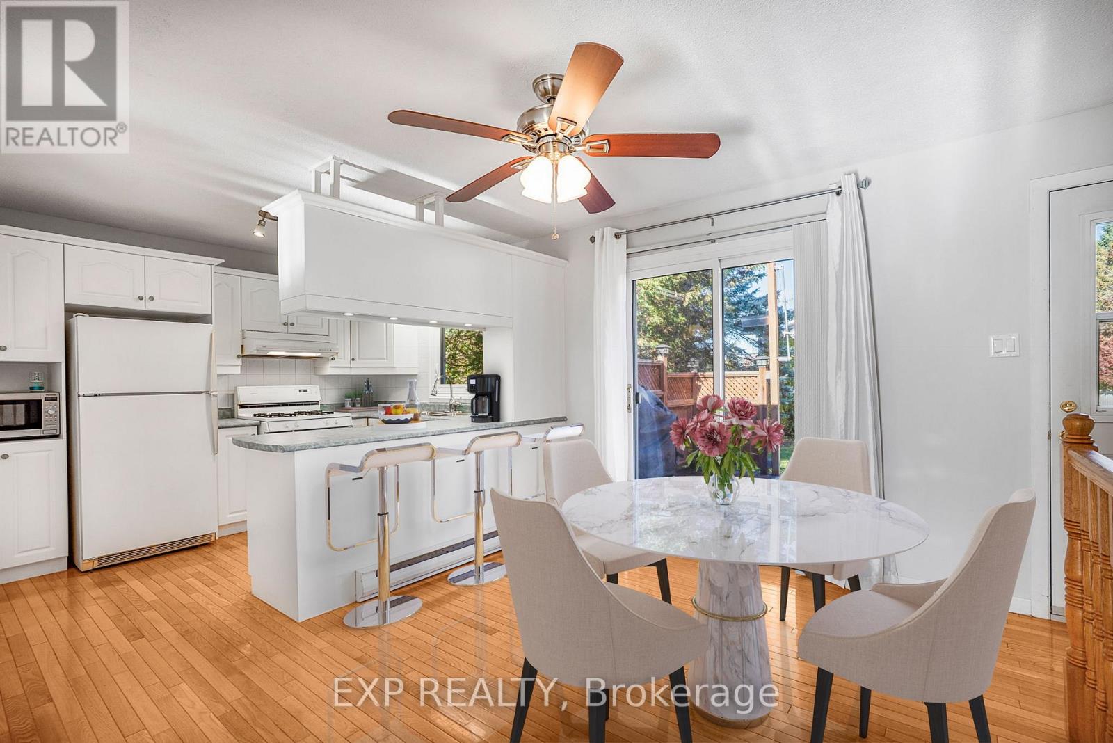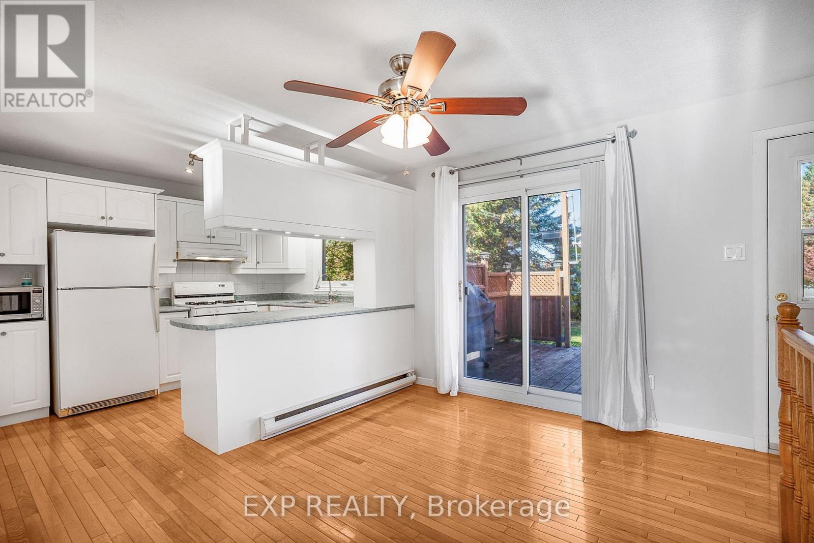 This charming 3+1 bedroom, 2-bath home is perfectly positioned on a corner lot. Step inside to a bright and inviting living area featuring a large window that fills the space with natural light. The kitchen showcases a stylish brick feature wall, while the adjacent dining area offers direct access to the rear deck-ideal for entertaining or enjoying morning coffee outdoors. Upstairs, you'll find a spacious primary bedroom with a cheater door to the full bathroom, along with two additional generously sized bedrooms. The lower level provides even more living space, featuring a cozy family room with a gas fireplace, a fourth bedroom, a second full bathroom combined with laundry, and ample storage. Outside, enjoy a backyard surrounded by mature trees for added privacy and a large deck perfect for gatherings or quiet relaxation. Freshly painted this year and conveniently located close to shopping, schools, and parks, this home is truly move-in ready. (id:64974)