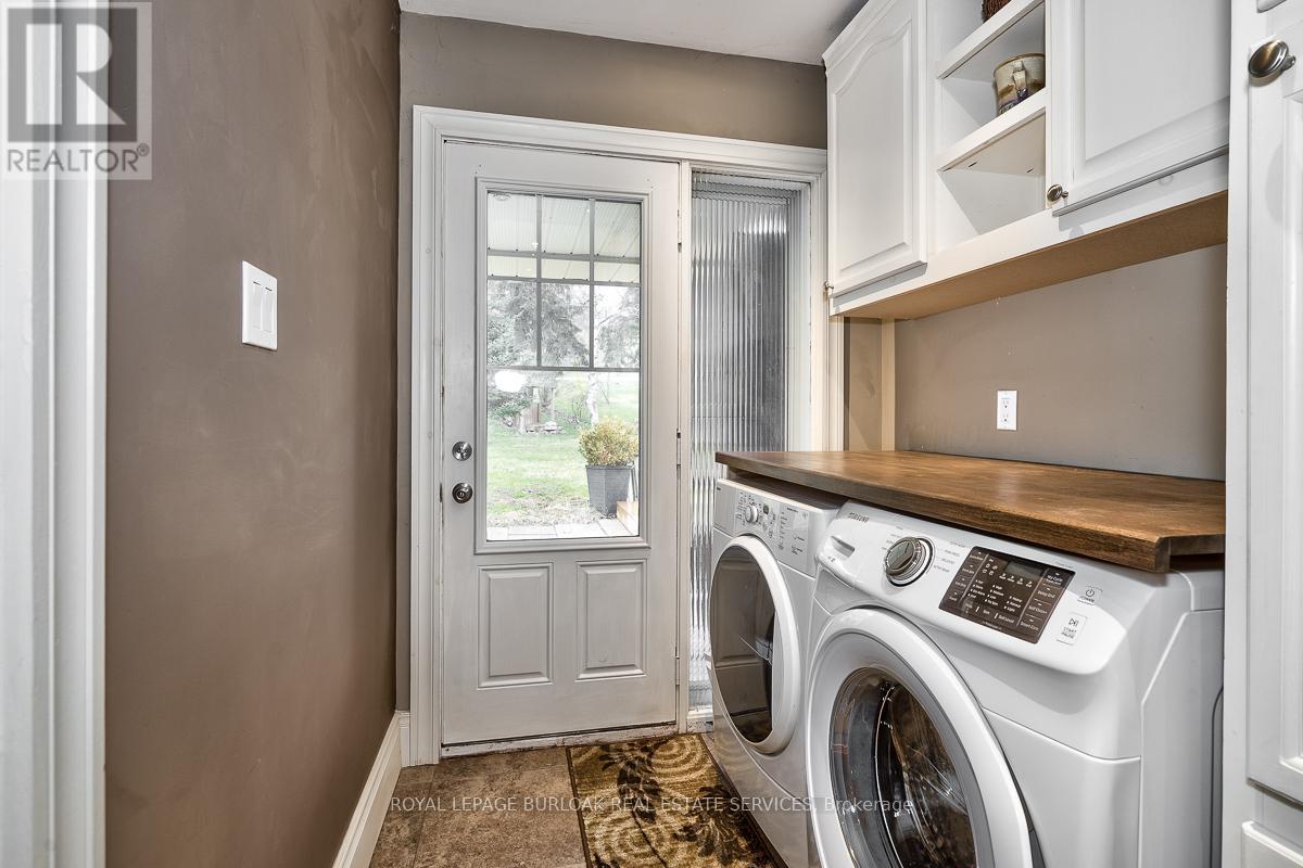 A very spacious 4-level side split featuring a 2-car tandem garage and parking for up to 5 vehicles, nestled in a serene country setting. Offering approximately 2,200 sq. ft. of living space (as per owner), this beautifully renovated home blends comfort, functionality, and tranquility. Enjoy seamless indoor-outdoor living with a walkout to a covered porch, overlooking extensive tiered wood decking-the perfect setting to relax and unwind. The home has been renovated throughout, featuring hardwood flooring, updated bathrooms, and a main-floor family room addition. The spacious, updated kitchen with breakfast bar opens to the family room and the living/dining area, highlighted by a wood-burning fireplace. The upper level offers three generous bedrooms and an updated 5-piece main bath. The entry level includes an updated laundry area with access to the back deck, a fourth bedroom or home office, a 3-piece bath, direct access to the covered back porch, and entry to the 2-car tandem garage. The lower level features a recreation room with wet bar and wood-burning fireplace, a den, and ample storage space. The property is serviced by septic and a drilled well and is ideally located minutes to downtown Dundas, Cambridge, and Hamilton, with Webster's Falls, parks, and schools just steps away. Minimum 2 year lease. All utilities to be paid by tenant. No smoking or pets. (id:64974)