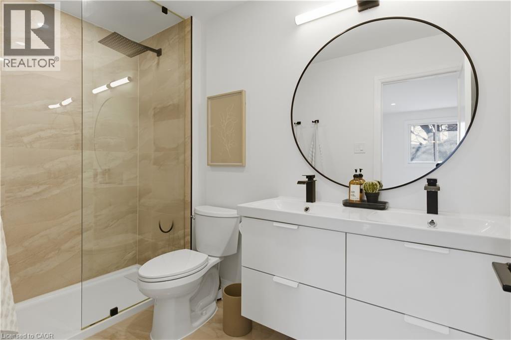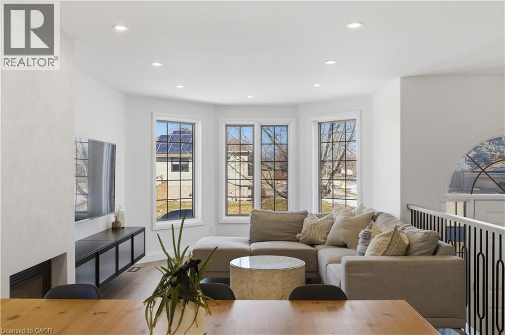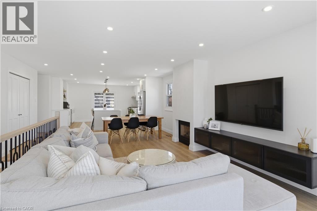 Welcome to 5 Bradbury Crescent in the charming town of Paris, a beautifully updated raised bungalow tucked into the quiet, family friendly Telferwood Estates neighbourhood. Offering 2+1 bedrooms and 3 full bathrooms, this home has been thoughtfully renovated to create a bright and inviting space that feels both modern and comfortable. Step inside to an open and airy foyer with convenient garage access and stairs leading to the main floor, finished with a custom oak railing. The open concept living and dining area is filled with natural light from large windows and centered around a cozy gas fireplace. The fully renovated kitchen (2025) features quartz countertops, a large custom 4 ft by 8 ft island, natural gas stove, new stainless steel appliances, and plenty of cabinetry and prep space. Sliding doors off the kitchen lead to a composite deck with pergola, perfect for relaxing outdoors or hosting summer barbecues with the natural gas BBQ hook up. The fully fenced backyard offers added privacy with no rear neighbours. The main level includes a spacious primary bedroom with a walk-in closet featuring custom built-ins and a private ensuite with a tiled glass walk-in shower. A second bedroom and full bathroom complete this level. Downstairs, the finished lower level provides additional living space with a large recreation room featuring a second gas fireplace, an additional bedroom, a full bathroom, and a generous utility room and workshop. Additional features include waterproof laminate flooring throughout the main floor, an owned hot water tank (2024), central vacuum, reverse osmosis system, water softener, irrigation system, and a double car garage with partial 12 ft ceilings. Located within walking distance to Catholic and public elementary schools as well as the local high school, and just minutes from restaurants, shopping, and the scenic downtown of Paris. (id:64974)