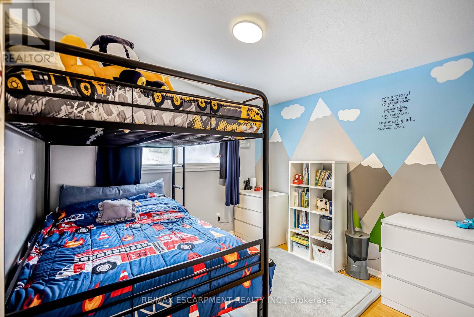 Welcome to 5 Carrington Court, tucked away in the highly desirable Bruleville neighbourhood on Hamilton Mountain, a quiet family friendly community close to excellent schools, shopping, transit, and major commuter routes. This exceptional location offers the perfect balance of peaceful cul de sac living with easy access to everyday amenities and nearby recreational trails. Inside, this thoughtfully updated 3 plus 1 bedroom, 2 bathroom home blends style and functionality with ease. The bright family room features a vaulted ceiling and a striking rustic fireplace feature wall, creating a warm and inviting focal point for cozy evenings. The refreshed kitchen showcases two tone cabinetry, a modern backsplash, and pot lighting for a clean contemporary look. A sleek 3 piece main bathroom with a stand up shower complements the main level, while the generously sized bedrooms include a comfortable primary retreat with a full wall closet. The separate side entrance to the basement offers outstanding versatility with the potential to convert the space into an in law suite or rental opportunity for ultimate flexibility. The lower level is complete with a spacious rec room with pot lights, a full 4 piece bathroom, an additional well sized bedroom, a storage room and laundry room for all your needs. Step outside to a truly rare find, a massive backyard approximately 165 feet deep, offering exceptional privacy and endless possibilities for entertaining, play, gardening, or future outdoor projects. A home that truly checks all the boxes. RSA (id:64974)