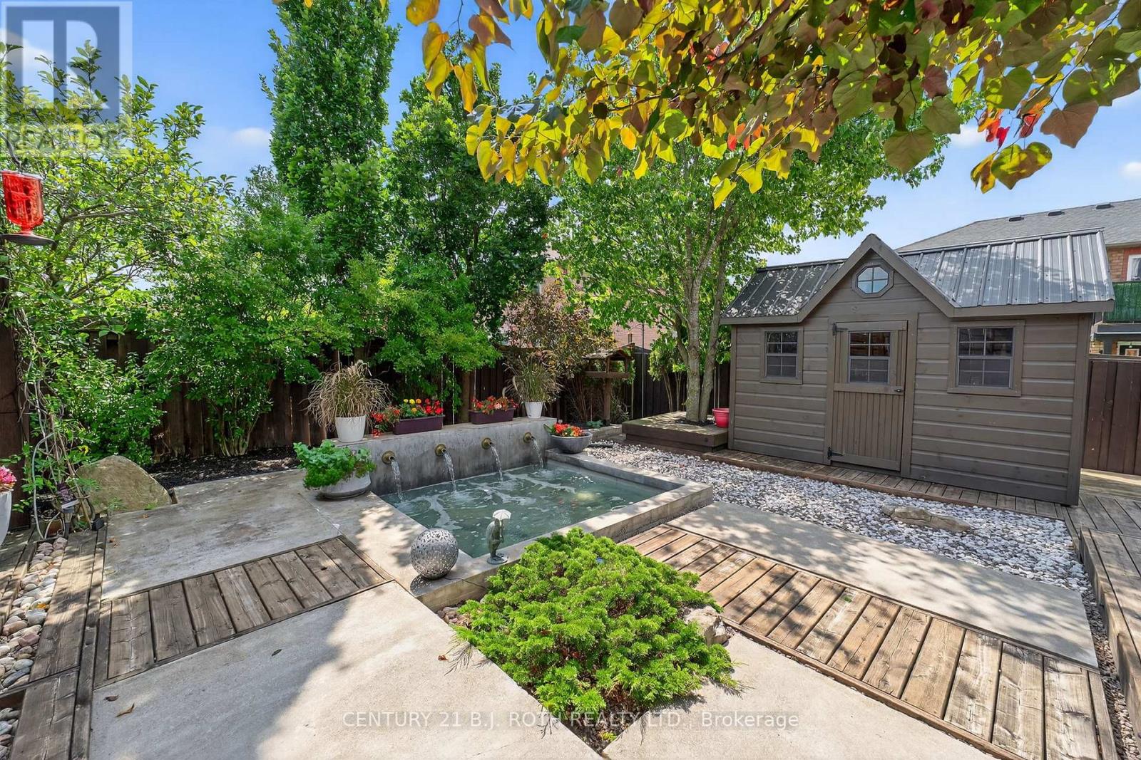 Turn Key All-Brick 4+1 Bedroom Family Home in Highly Sought After Country Club Estates! Beautifully updated and meticulously maintained, this move in ready home showcases thoughtful upgrades and exceptional pride of ownership throughout. Step outside to your private backyard oasis, enhanced by a tranquil pond and beautifully maintained landscaping, offering both privacy and serenity, ideal for relaxing or entertaining. The open concept main level features a spacious living room with a cozy Napoleon gas fireplace, flowing seamlessly into the modern kitchen with granite countertops, stainless steel appliances, a gas stove, breakfast bar, and a walkout to the covered private deck, perfect for year round enjoyment! A formal dining room offers an elegant space for hosting, while a dedicated office provides ideal work from home flexibility. The primary bedroom is a true retreat, complete with a walk-in closet and a stylish 3-piece ensuite. The fully finished basement significantly expands the living space with a large recreation room with another Napoleon gas fireplace and a fifth bedroom with its own spa-like 3-piece ensuite featuring a luxurious steam shower perfect for guests or extended family. Conveniently located for commuters, just minutes from Highway 400 and the GO Station, and close to Park Place shopping, Centennial Beach, Lover's Creek, scenic trails, and all essential amenities. Notable Updates: Furnace (2020), A/C (2017), Roof (Summer 2022), Fridge (2017), Stove & Oven (2020), Dishwasher (2025). (id:64974)