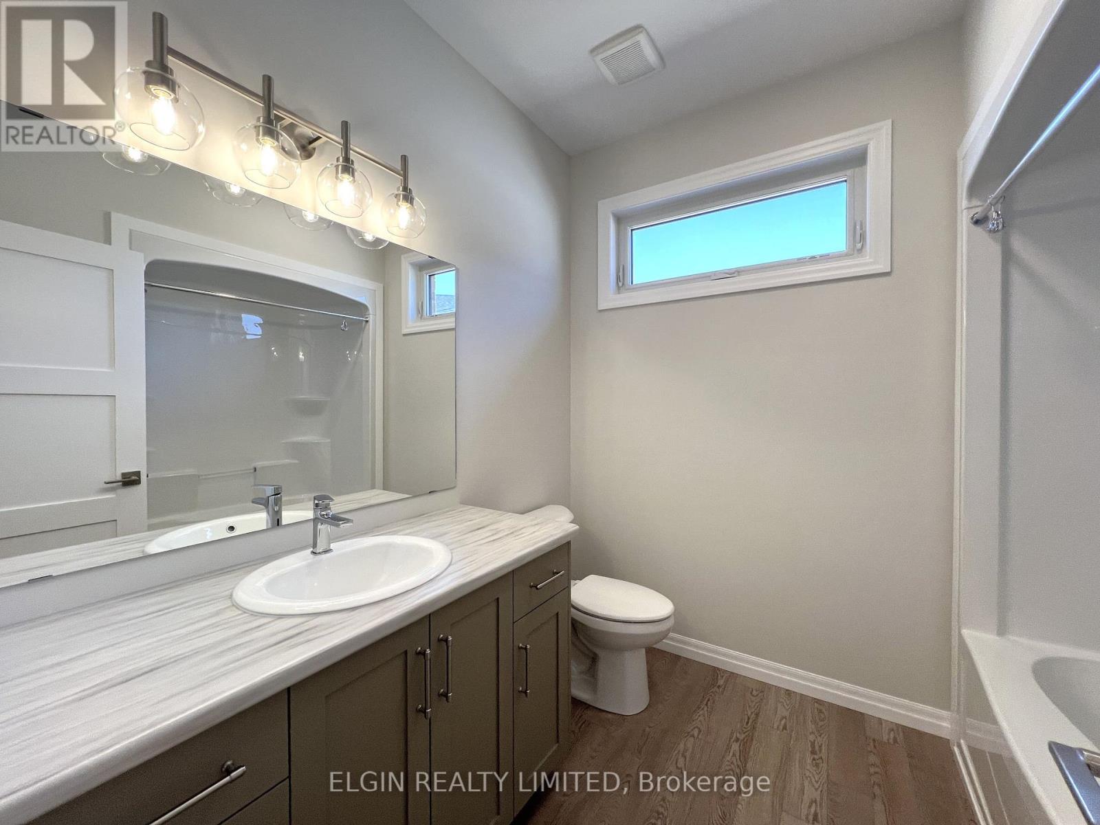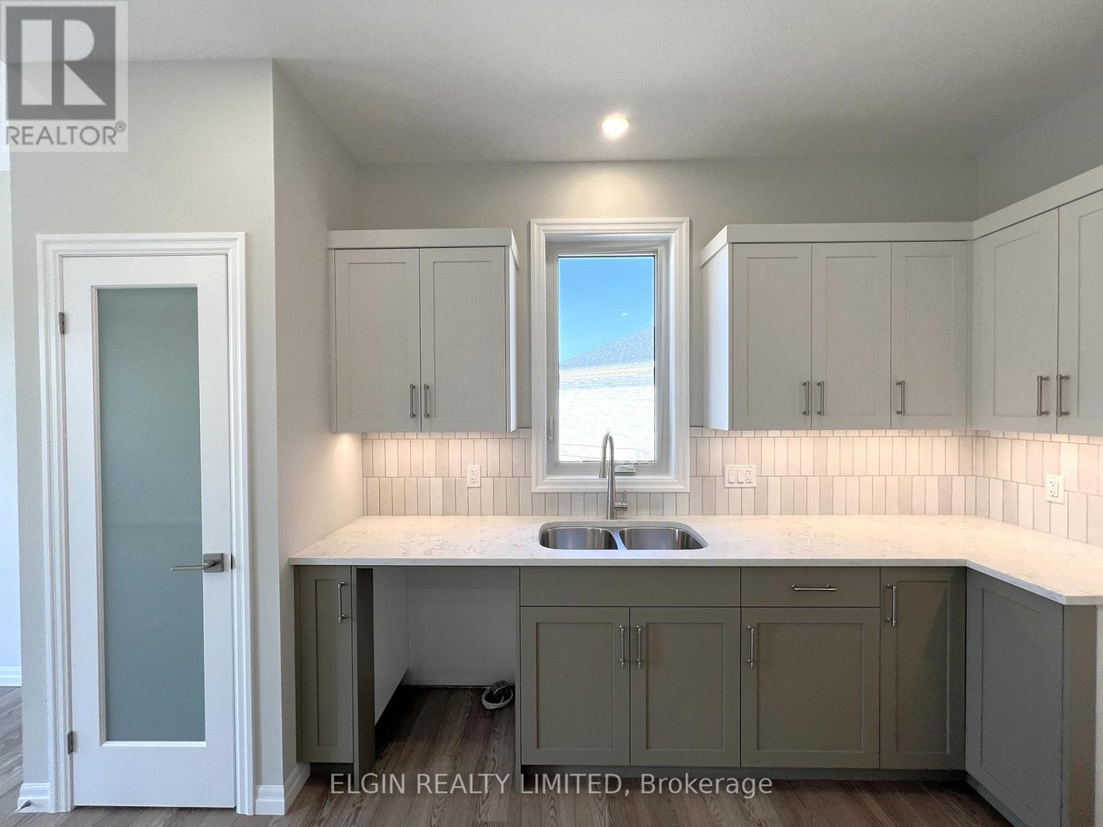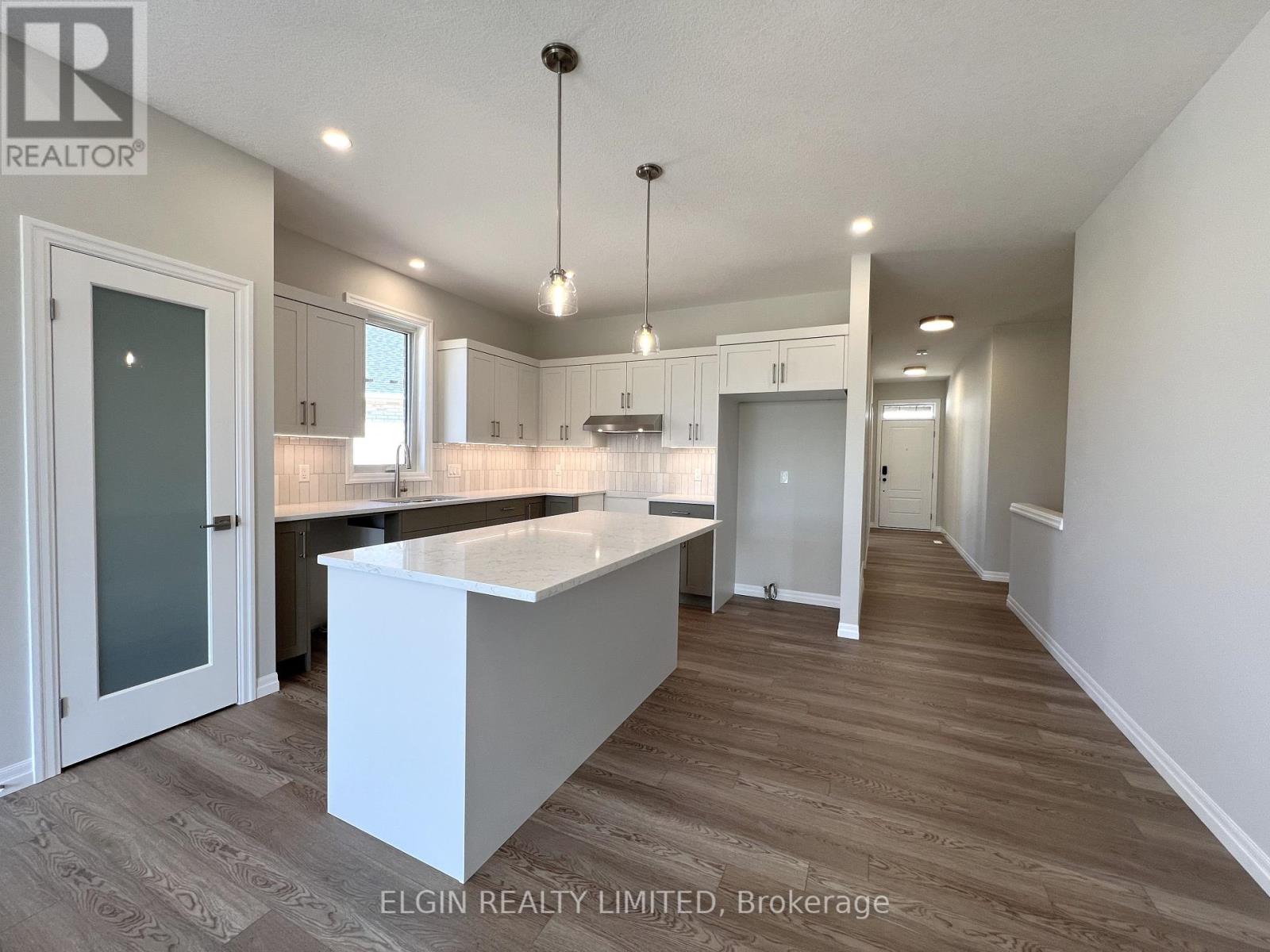 Move-in ready. This beautifully finished semi-detached bungalow built by Hayhoe Homes is situated on a pie-shaped lot on a quiet cul-de-sac in the sought-after Lynhurst Heights community. Offering open-concept, single-floor living with 2 bedrooms and 2 bathrooms, including a private 3-piece ensuite. The main floor features 9' ceilings, luxury vinyl plank flooring, and a designer kitchen with quartz countertops, tile backsplash, a central island, and pantry -- all opening to a spacious great room with a cathedral and patio door leading to a rear deck. A second bedroom, full bathroom, and laundry room complete the main floor. The unfinished basement provides development potential for a future family room, additional bedroom, and bathroom. Other features include a single-car garage, covered front porch, central air, HRV system, Tarion New Home Warranty, and numerous upgrades throughout. Ideally located with easy access to London and close to parks, shopping, and restaurants. Taxes to be assessed. (id:64974)