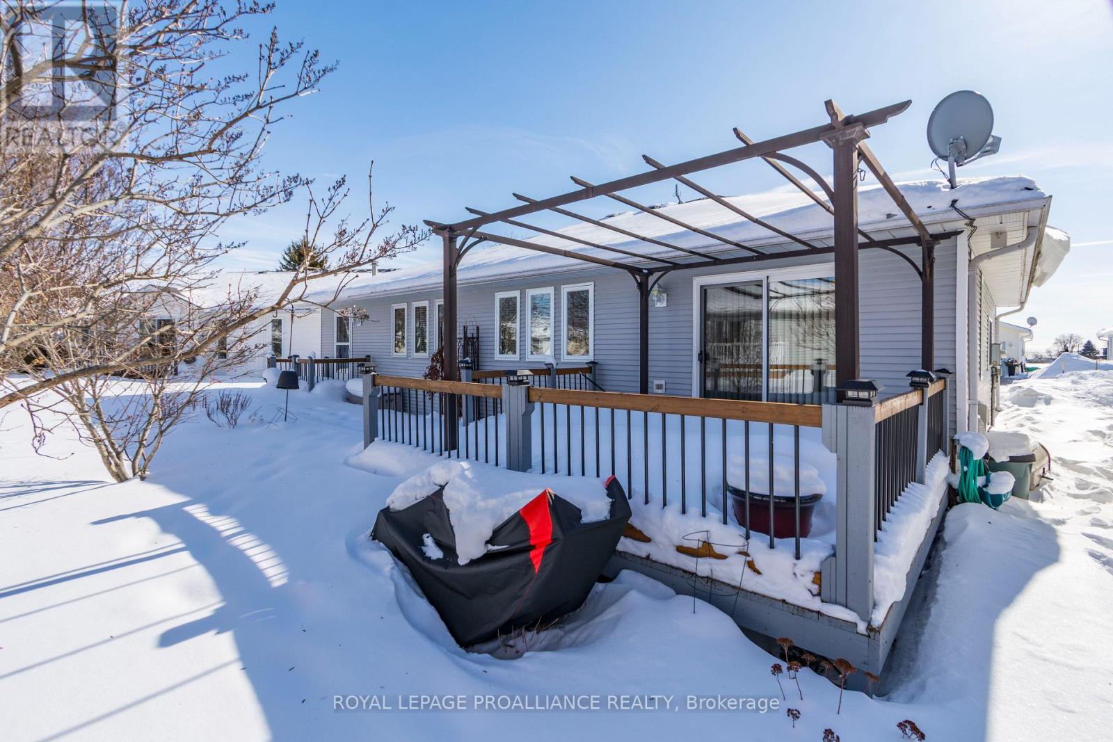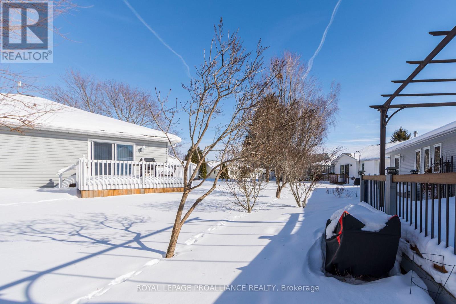 Welcome to 5 Cretney Drive, a beautifully maintained bungalow located in a friendly, well-established 55-plus community in the heart of Wellington, Ontario. Designed for easy, main-floor living, this thoughtfully laid-out home offers two bedrooms, two bathrooms, and the convenience of a one-car garage-an ideal option for those looking to downsize without compromise. Built specifically with seniors in mind, the home features enhanced accessibility throughout, including lowered electrical outlets and countertops, as well as wider hallways and doorways to comfortably accommodate wheelchair access if needed. A crawl space provides valuable additional storage, further adding to the home's practical and efficient design. Set within a vibrant and welcoming community, residents enjoy access to a recreation centre featuring a swimming pool, lawn bowling, and a full calendar of social and community events-allowing you to be as active and connected as you choose. Monthly maintenance fees include land lease, road maintenance within the community, and membership to the community recreation centre, offering a truly low-maintenance lifestyle. The home is well cared for and move-in ready, located in a setting where neighbours quickly become friends. Ideally situated close to Wellington's charming shops, local restaurants, parks, beaches, nearby golf courses, and Prince Edward County wineries, this leased-land home is also conveniently less than a two-hour drive from the GTA. (id:64974)