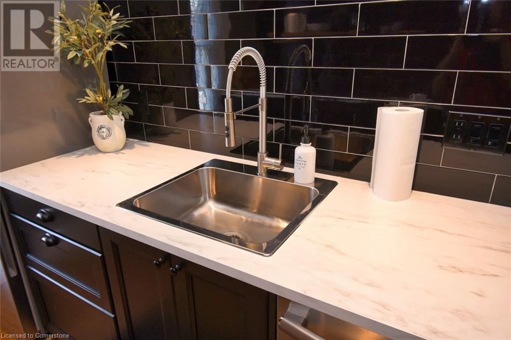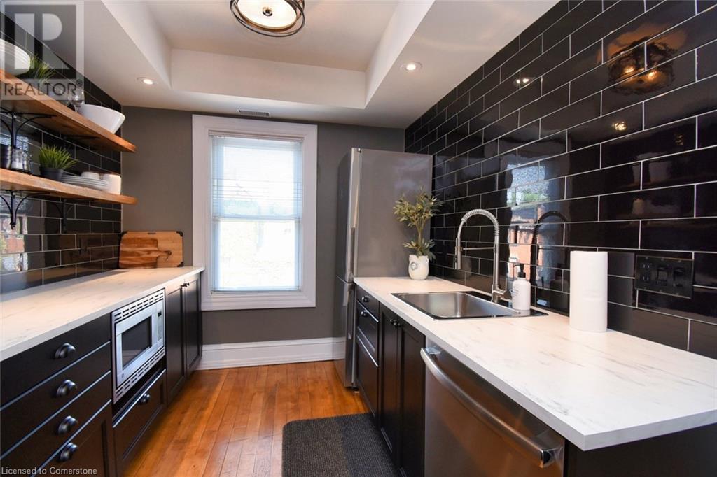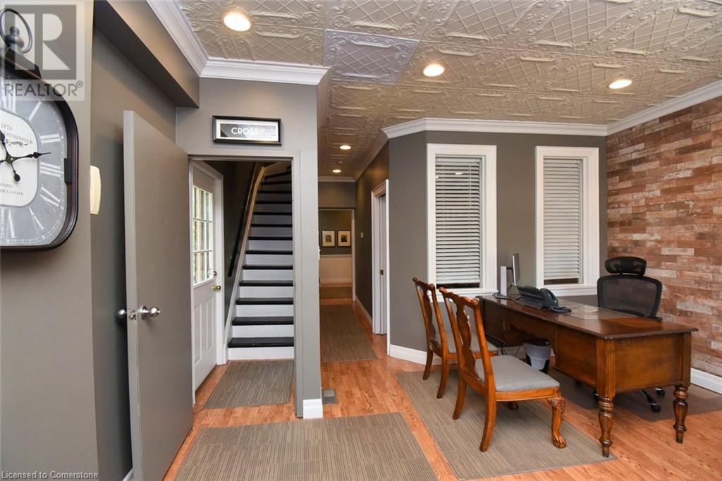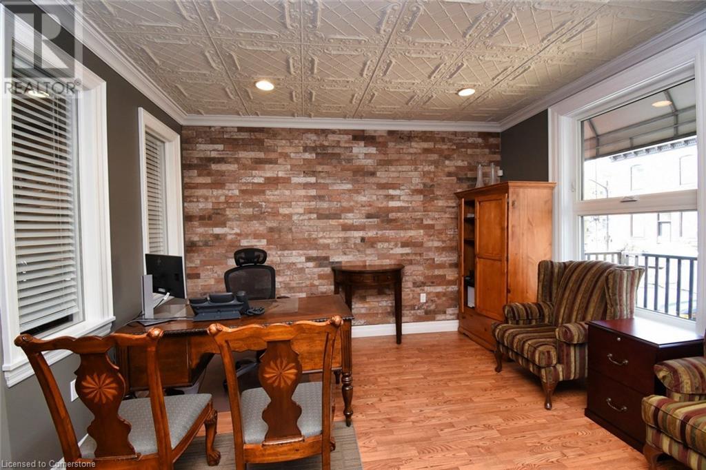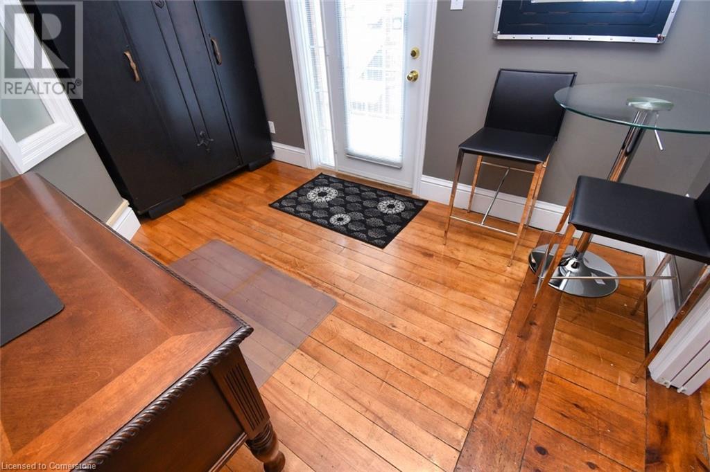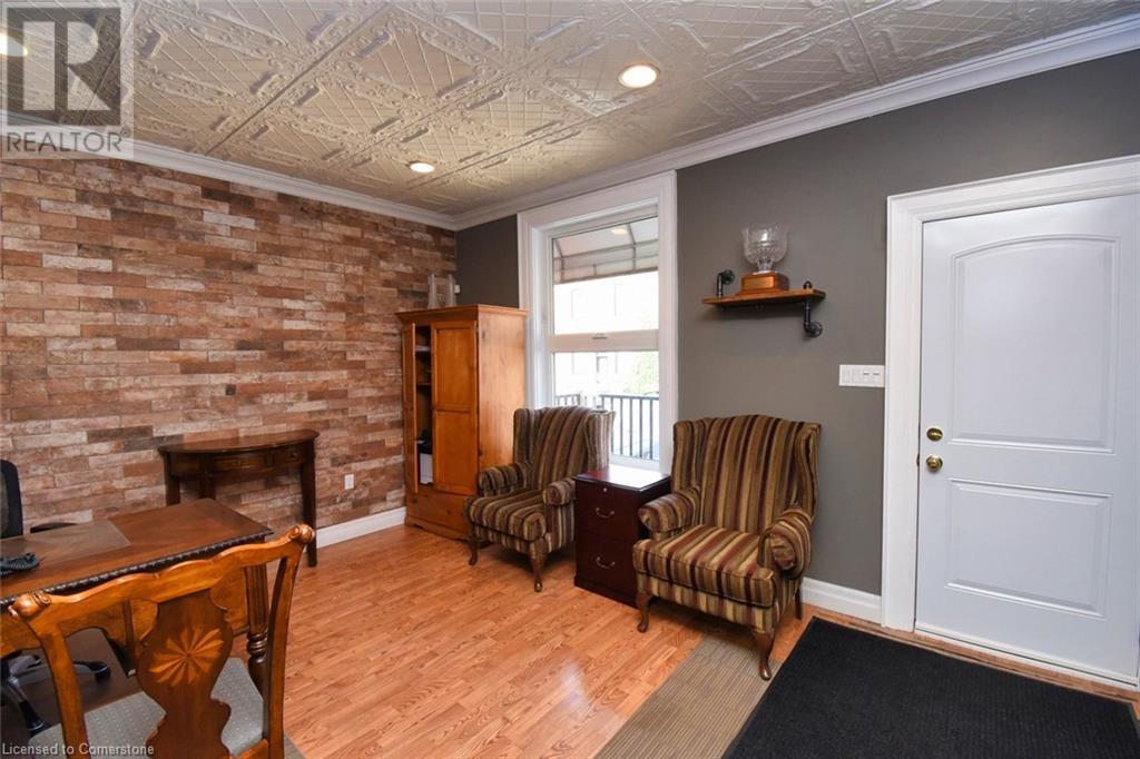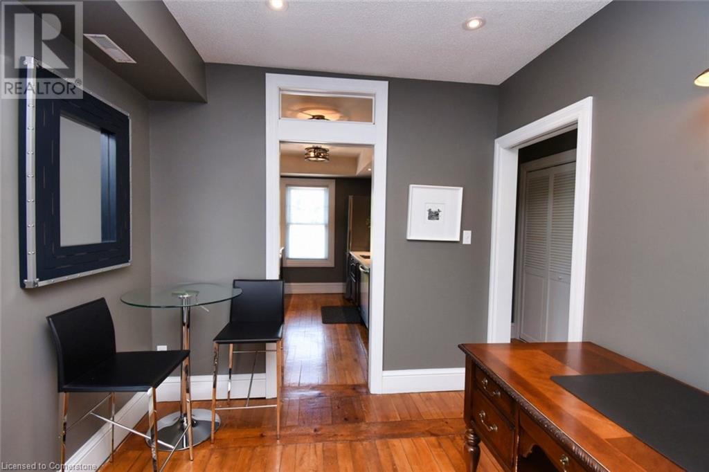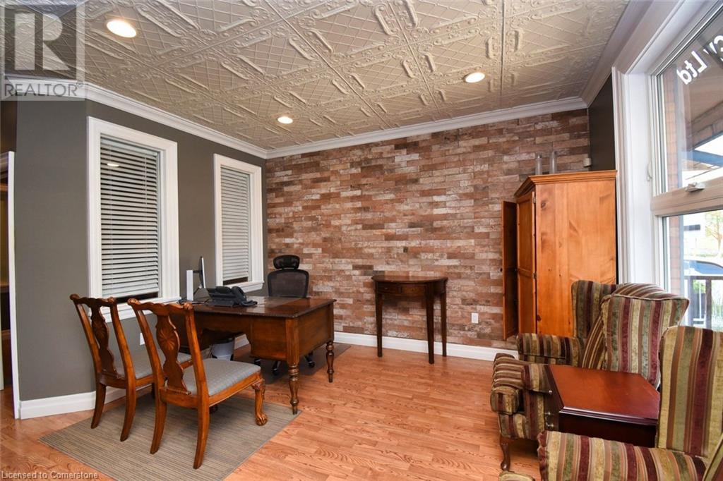 Desirable Dundas! Mixed use zoning. Great live/work set up or investment opportunity. Located just steps away from vibrant downtown Dundas. Total square footage for the building is 1729 sq. ft., maintenance free exterior and single car driveway. The main floor commercial space measures approximately 654 sq. ft. and consists of 2 offices and a reception area. There is a 2 piece bath, small kitchen prep area (counter and sink) and storage in the basement ( approximately 654 sq. ft. below grade) The upper apartment with loft measures approximately 1075 sq. ft. and has a sharp, trendy vibe! The upgraded kitchen has SS appliances and subway tile. The 3 piece bath has a walk in shower with glass doors and there is in-suite laundry. There is a balcony off the sitting room. The present room layout can be easily re-arranged to accommodate a different floor plan. Amazing opportunity. (id:64974)