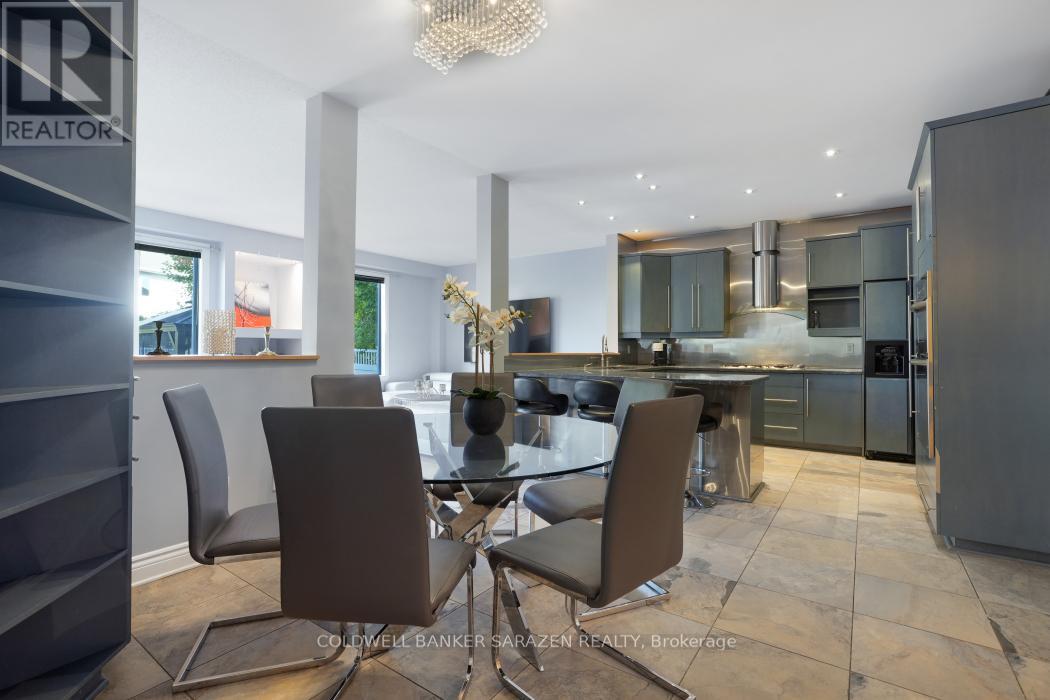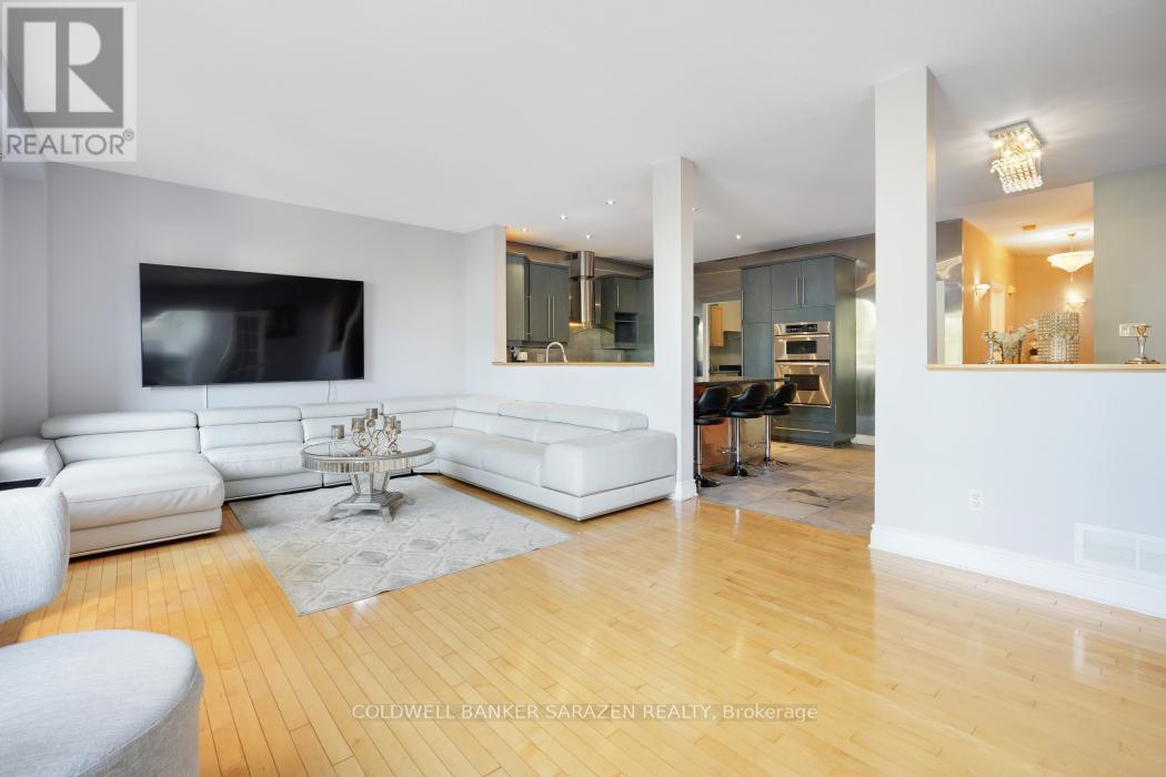 This grand Royal Edward II model offers over 3,100 sq. ft. on the main level, plus an additional 1,000 sq. ft. on the lower level. The main floor features generous living spaces, including a private office, a formal living room, a spacious dining room, a cozy family room, and a bright sunroom. The modern open-concept kitchen boasts a large eat-in area and an island with seating, perfect for entertaining family and friends. The lower level is designed for both relaxation and recreation, offering a full bathroom, a guest bedroom, a large rec room, a gym area, and a private cinema room for movie nights with loved ones. The level is finished with elegant engineered flooring, while the main floor showcases rich hardwood throughout. Upstairs, comfortable carpeting provides a warm and inviting atmosphere. Step outside to a professionally landscaped backyard featuring a grand sitting area, ideal for both relaxation and entertaining. This home truly has it all, a rare opportunity not to be missed. The sale price includes Cinema furnishings. (id:64974)