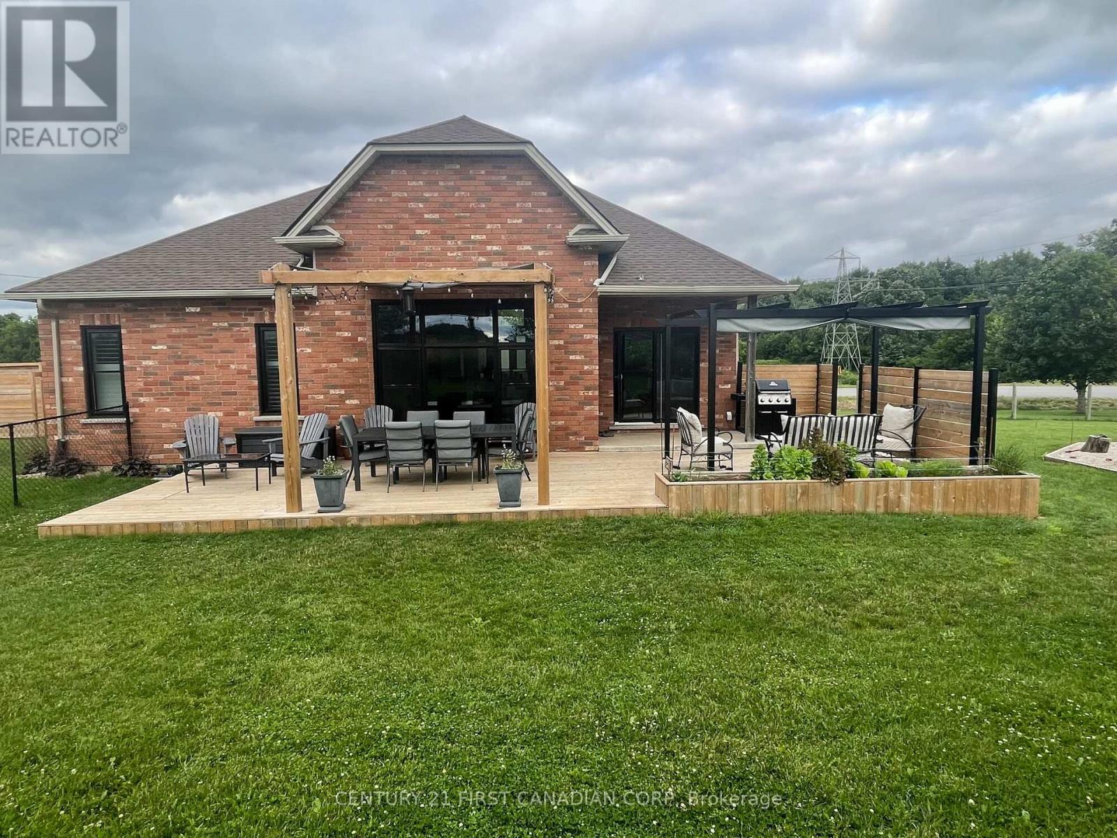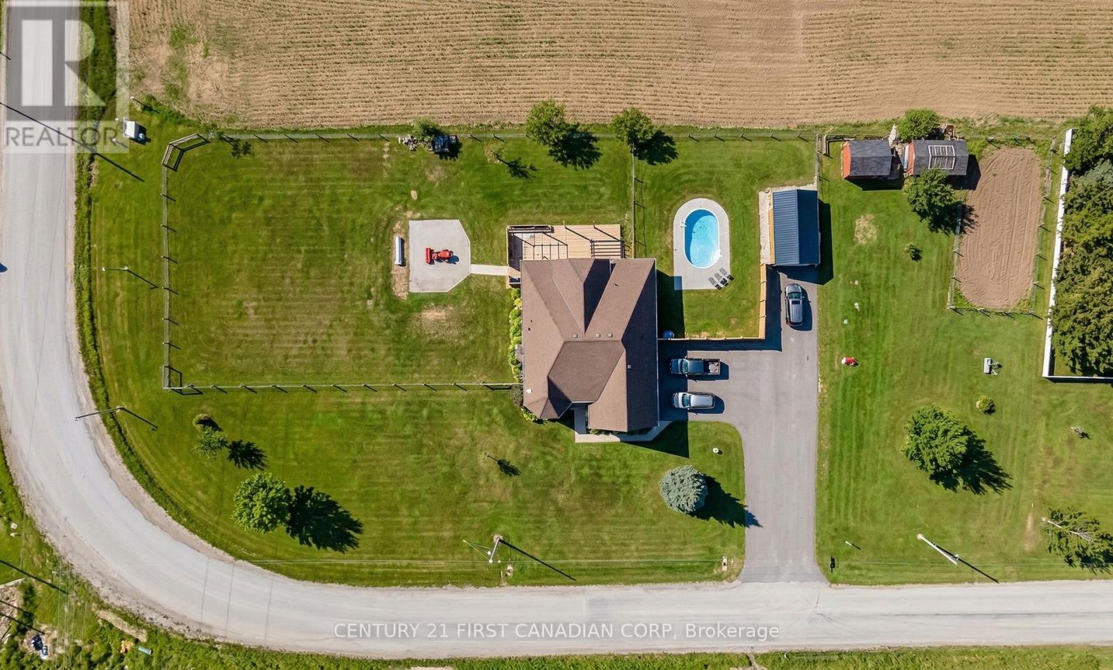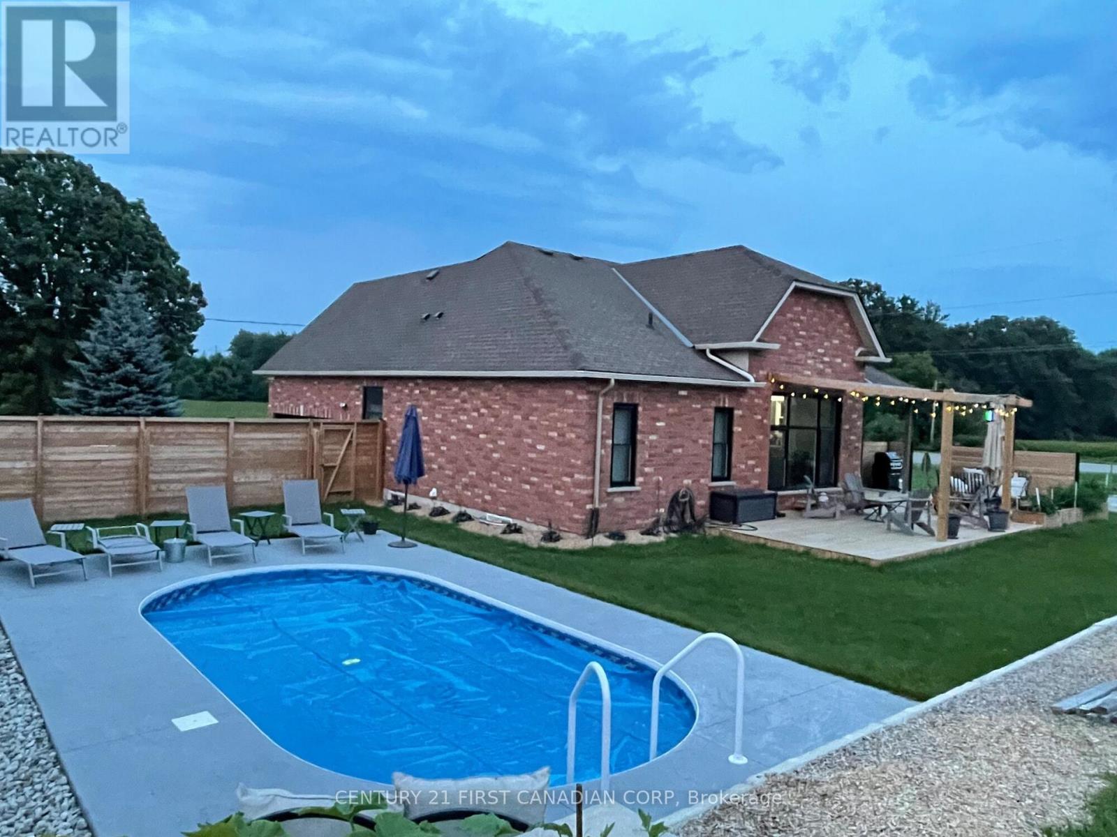 Welcome to Your Ultimate Country Masterpiece! Prepare to be absolutely captivated! This isn't just a home; it's a lifestyle statement. Nestled just west of the vibrant, rapidly growing community of Paris, this stunningly updated modern ranch offers the perfect blend of high-end luxury and peaceful country serenity. Built with the legendary Schuit Homes, every inch of this property radiates quality and sophisticated design. The moment you step through the door, you are greeted by a breathtaking open-concept layout. The expansive living room flows seamlessly into a chef-inspired kitchen with all new cabinets, countertops and backsplash. Featuring sleek stainless steel appliances, a center island, and a bright dining nook, it is the heart of the home. Imagine morning coffee by the patio doors or hosting summer BBQs on your covered porch, overlooking nothing but gorgeous, rolling countryside. For formal occasions, the adjacent dining room dazzles with recessed ceilings, rich hardwood floors, and massive windows that bathe the space in natural light. Luxury Meets Functionality The primary suite is a true sanctuary, boasting a massive walk-in closet, California shutters and a spa-like ensuite featuring a freestanding soaker tub and a custom frosted glass/tiled shower. The main floor is rounded out by a convenient laundry room and a chic powder room. Head downstairs to find a finished lower level that feels like a second home! With a huge, cozy rec room, two spacious bedrooms a workout room, and another full bathroom, there is room for the whole family and then some. Extensive 2023-2024 Upgrades Peace of mind comes standard here. Within the last two years, this home has been transformed: Total Exterior Refresh: All windows, entry doors, and the double-attached garage door were replaced (2023/2024). Fresh Interiors: Stunning brand-new flooring throughout both the main floor and basement. Summer Fun: A sparkling new pool installed in 2023 is ready for your enjoyment! (id:64974)