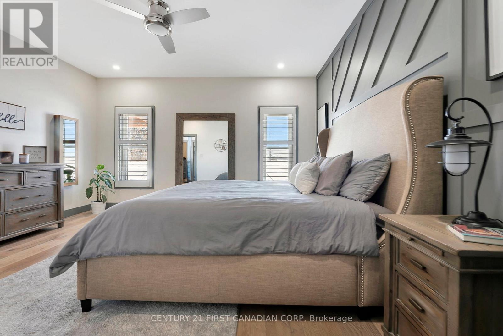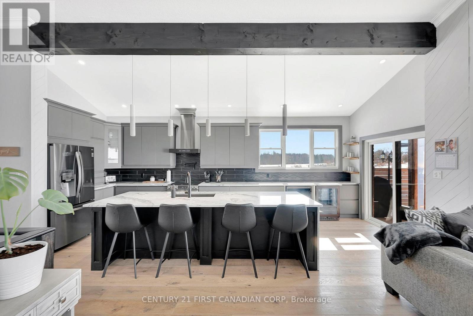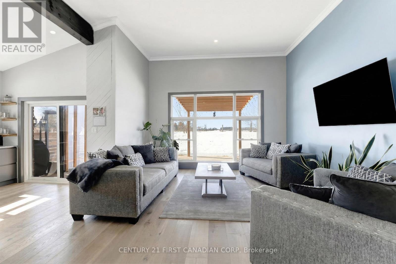 Welcome to Your Ultimate Country Masterpiece! Prepare to be absolutely captivated! This isn't just a home; it's a lifestyle statement. Nestled just west of the vibrant, rapidly growing community of Paris, this stunningly updated modern ranch offers the perfect blend of high-end luxury and peaceful country serenity. Built with the legendary Schuit Homes, every inch of this property radiates quality and sophisticated design. The moment you step through the door, you are greeted by a breathtaking open-concept layout. The expansive living room flows seamlessly into a chef-inspired kitchen with all new cabinets, countertops and backsplash. Featuring sleek stainless steel appliances, a center island, and a bright dining nook, it is the heart of the home. Imagine morning coffee by the patio doors or hosting summer BBQs on your covered porch, overlooking nothing but gorgeous, rolling countryside. For formal occasions, the adjacent dining room dazzles with recessed ceilings, rich hardwood floors, and massive windows that bathe the space in natural light. Luxury Meets Functionality The primary suite is a true sanctuary, boasting a massive walk-in closet, California shutters and a spa-like ensuite featuring a freestanding soaker tub and a custom frosted glass/tiled shower. The main floor is rounded out by a convenient laundry room and a chic powder room. Head downstairs to find a finished lower level that feels like a second home! With a huge, cozy rec room, two spacious bedrooms a workout room, and another full bathroom, there is room for the whole family and then some. Extensive 2023-2024 Upgrades Peace of mind comes standard here. Within the last two years, this home has been transformed: Total Exterior Refresh: All windows, entry doors, and the double-attached garage door were replaced (2023/2024). Fresh Interiors: Stunning brand-new flooring throughout both the main floor and basement. Summer Fun: A sparkling new pool installed in 2023 is ready for your enjoyment! (id:64974)
