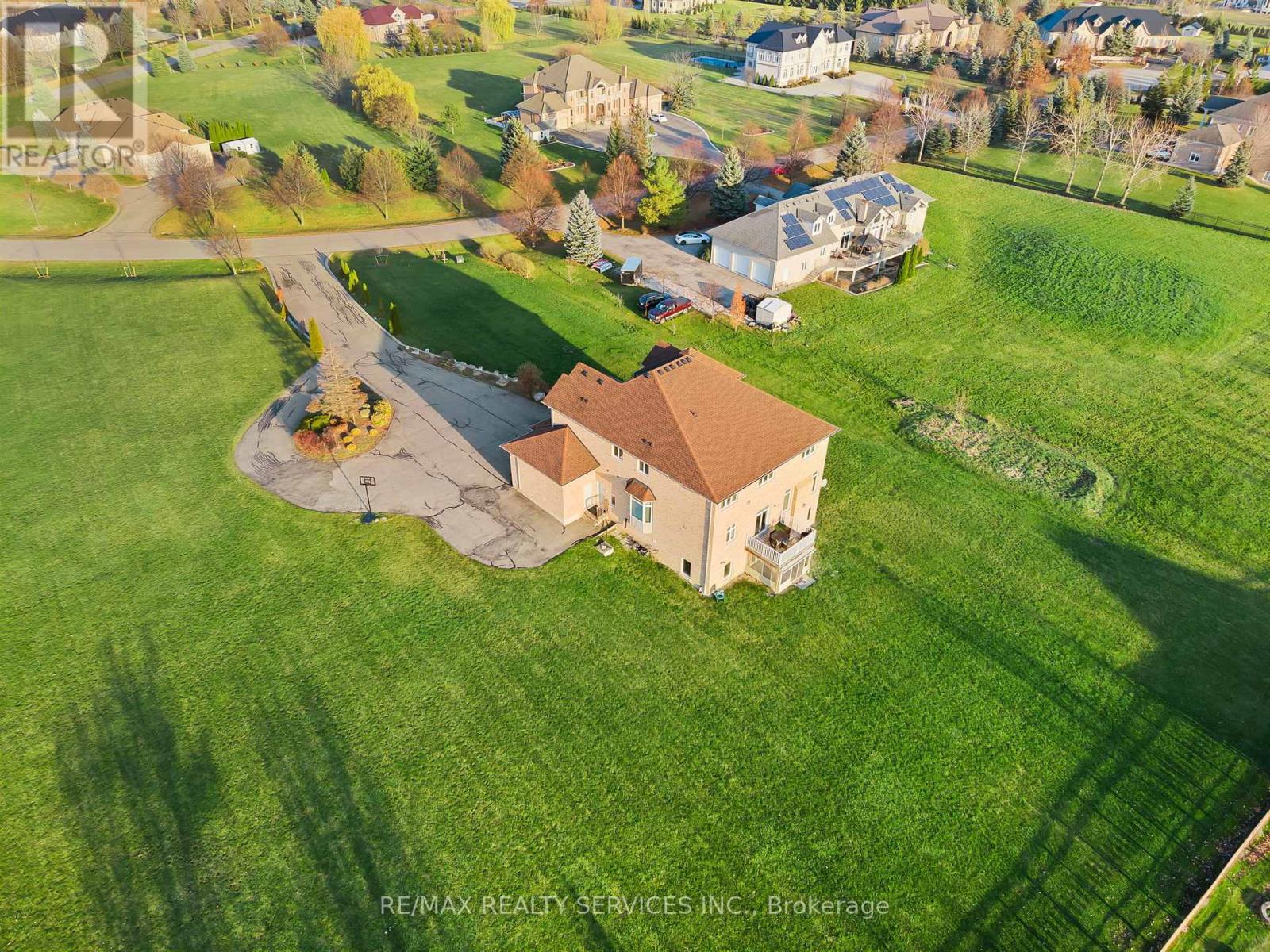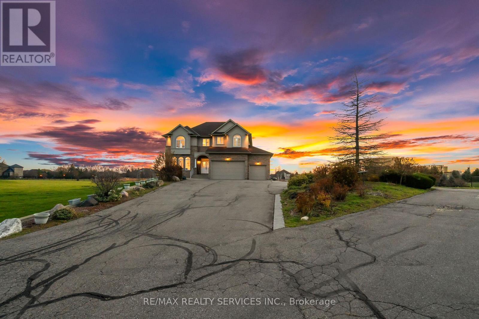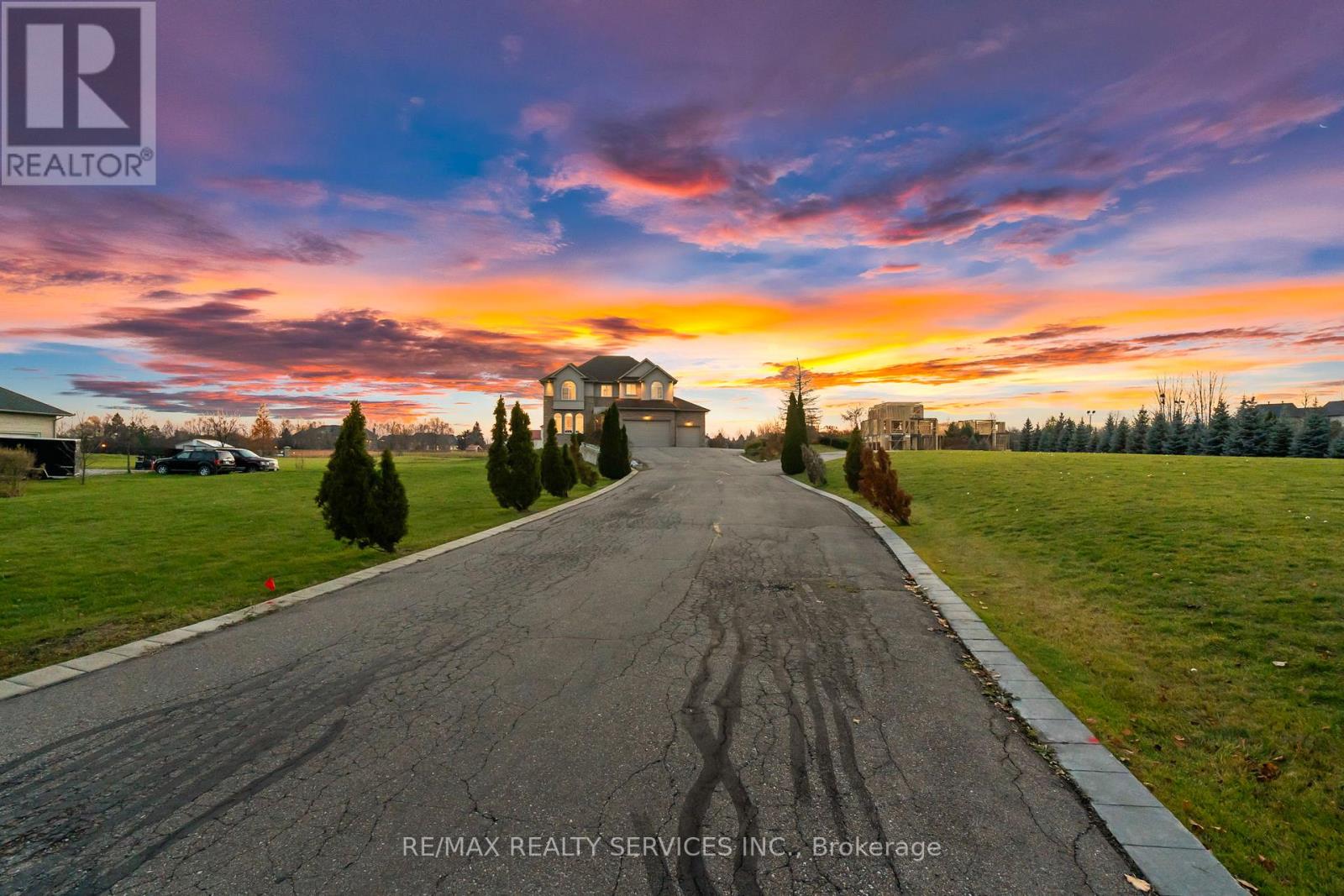 Experience estate living at its finest in this impeccably crafted custom home, perfectly situated on a rare 2-acre lot in one of Castlemore's most prestigious and private courts. Designed with luxury and comfort in mind, the main level welcomes you with soaring 10-ft ceilings, elegant pot lights throughout, and a bright open-concept layout ideal for both everyday living and grand entertaining. At the heart of the home is a stunning chef's kitchen featuring premium cabinetry, granite countertops, a sleek backsplash, and stainless-steel appliances, perfect for preparing meals while staying connected with family and guests. Upstairs, you'll find four generously sized bedrooms, four well-appointed bathrooms, a dedicated office, and a beautiful loft space, offering the perfect balance of privacy, functionality, and sophistication. The fully finished walkout basement with 9-ft ceilings expands your living space with two additional rooms, a media room, and three bathrooms, an ideal setup for extended family, guests, or multi-generational living. A rare opportunity to own a luxurious estate property that combines space, elegance, and versatility in one of Castlemore's most sought-after neighbourhoods. (id:64974)