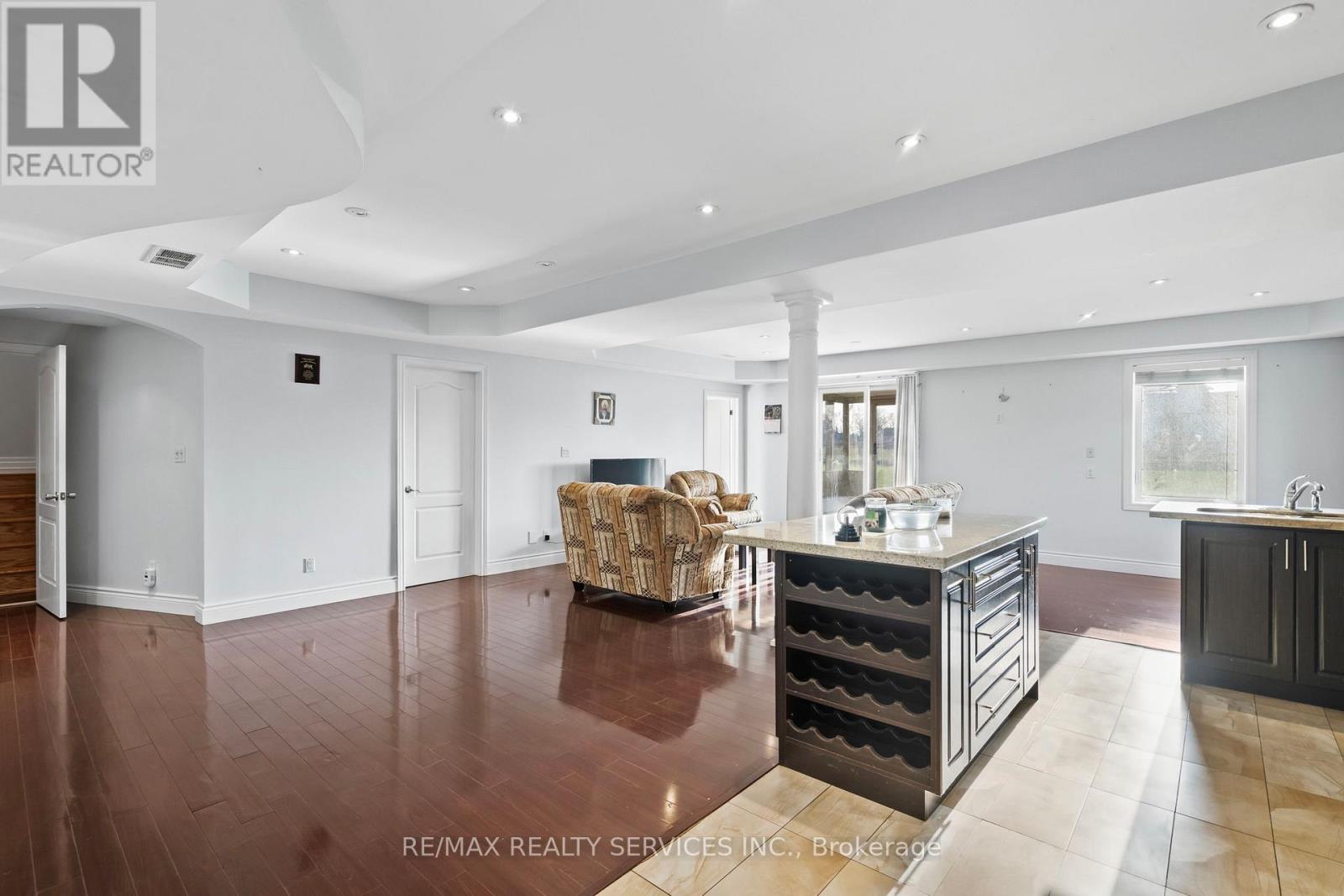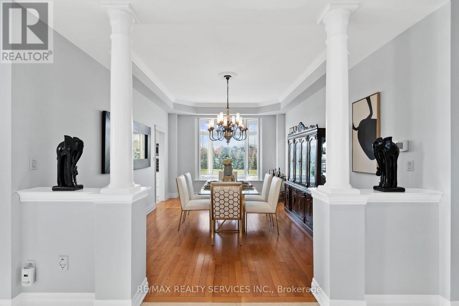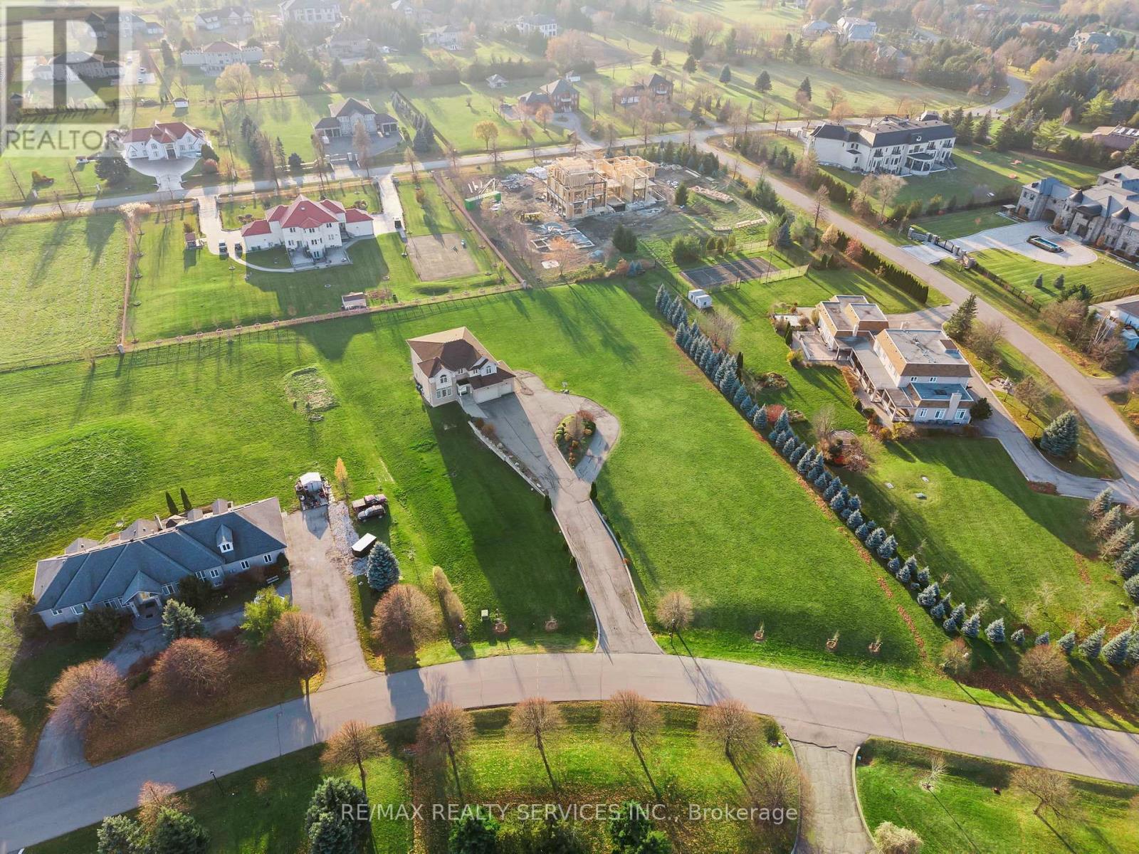 Experience estate living at its finest in this impeccably crafted custom home, perfectly situated on a rare 2-acre lot in one of Castlemore's most prestigious and private courts. Designed with luxury and comfort in mind, the main level welcomes you with soaring 10-ft ceilings, elegant pot lights throughout, and a bright open-concept layout ideal for both everyday living and grand entertaining. At the heart of the home is a stunning chef's kitchen featuring premium cabinetry, granite countertops, a sleek backsplash, and stainless-steel appliances, perfect for preparing meals while staying connected with family and guests. Upstairs, you'll find four generously sized bedrooms, four well-appointed bathrooms, a dedicated office, and a beautiful loft space, offering the perfect balance of privacy, functionality, and sophistication. The fully finished walkout basement with 9-ft ceilings expands your living space with two additional rooms, a media room, and three bathrooms, an ideal setup for extended family, guests, or multi-generational living. A rare opportunity to own a luxurious estate property that combines space, elegance, and versatility in one of Castlemore's most sought-after neighbourhoods. (id:64974)