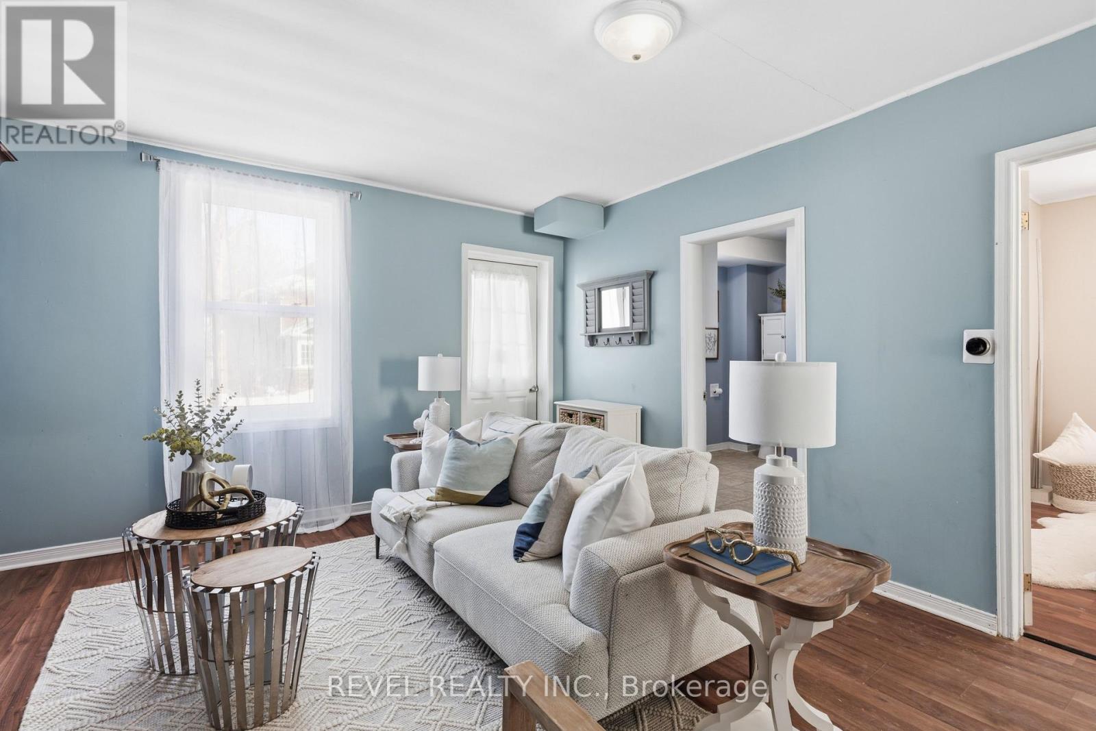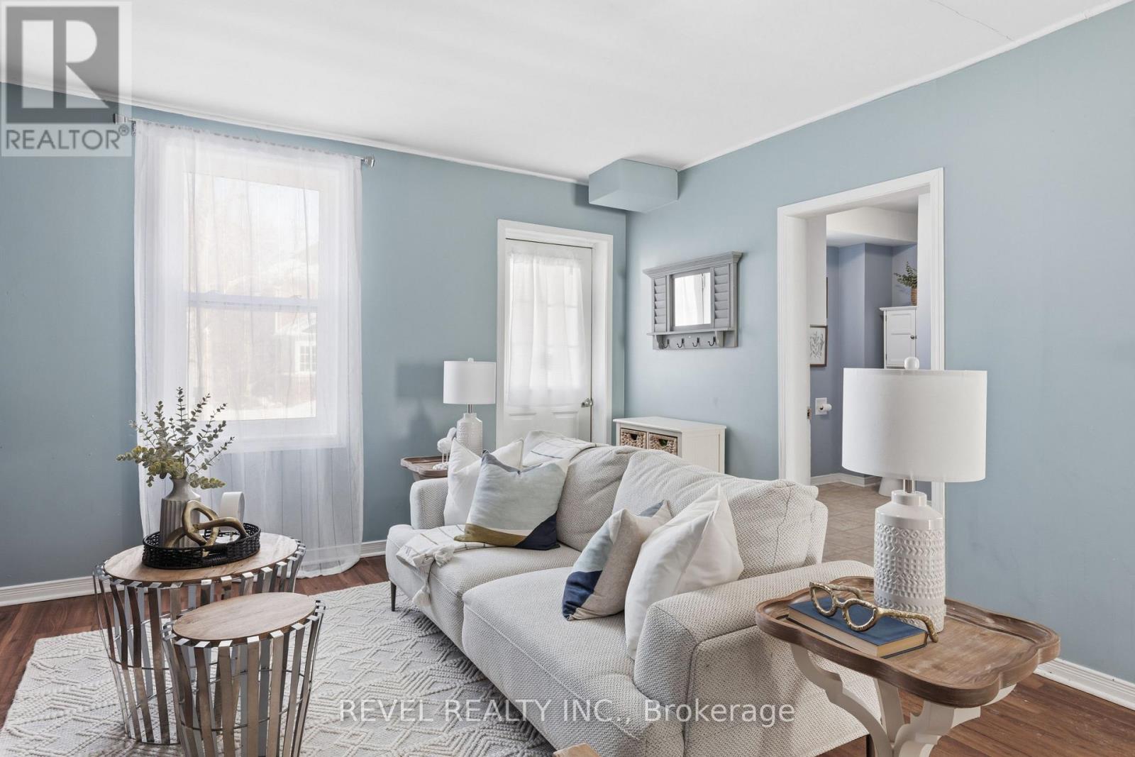 This charming Century home offers excellent value for first-time buyers or savvy investors. Features include 3 bedrooms, 3 bathrooms, newer shingles, vinyl windows and siding, and parking for up to multiple vehicles. The bright eat-in kitchen overlooks the large, fully fenced backyard and offers a convenient walk-out to an updated deck, perfect for entertaining or relaxing outdoors. Main floor bedroom or office, full bath & laundry. Second floor includes bedrooms, bathroom, spacious walk-in linen closet for added storage. The lower level while featuring a lower ceiling, provides a surprising amount of living space, bathroom, sink/cabinetry, and a separate walk-out to the rear yard-ideal for future potential. Covered side porch, storage shed, metal garden sheds perfect for extra storage. This home is centrally located walking to hospital, downtown shopping, schools & walking to waterfront trails. Make this your next home. (id:64974)