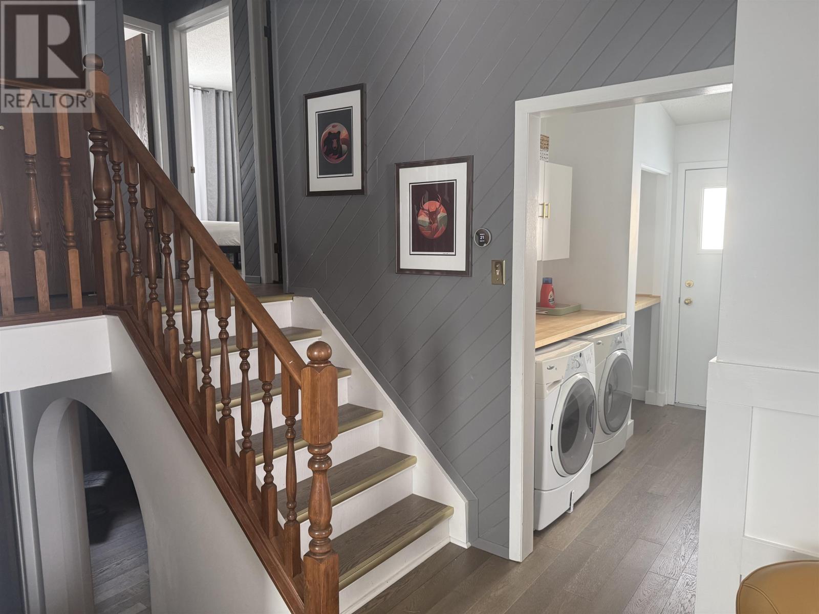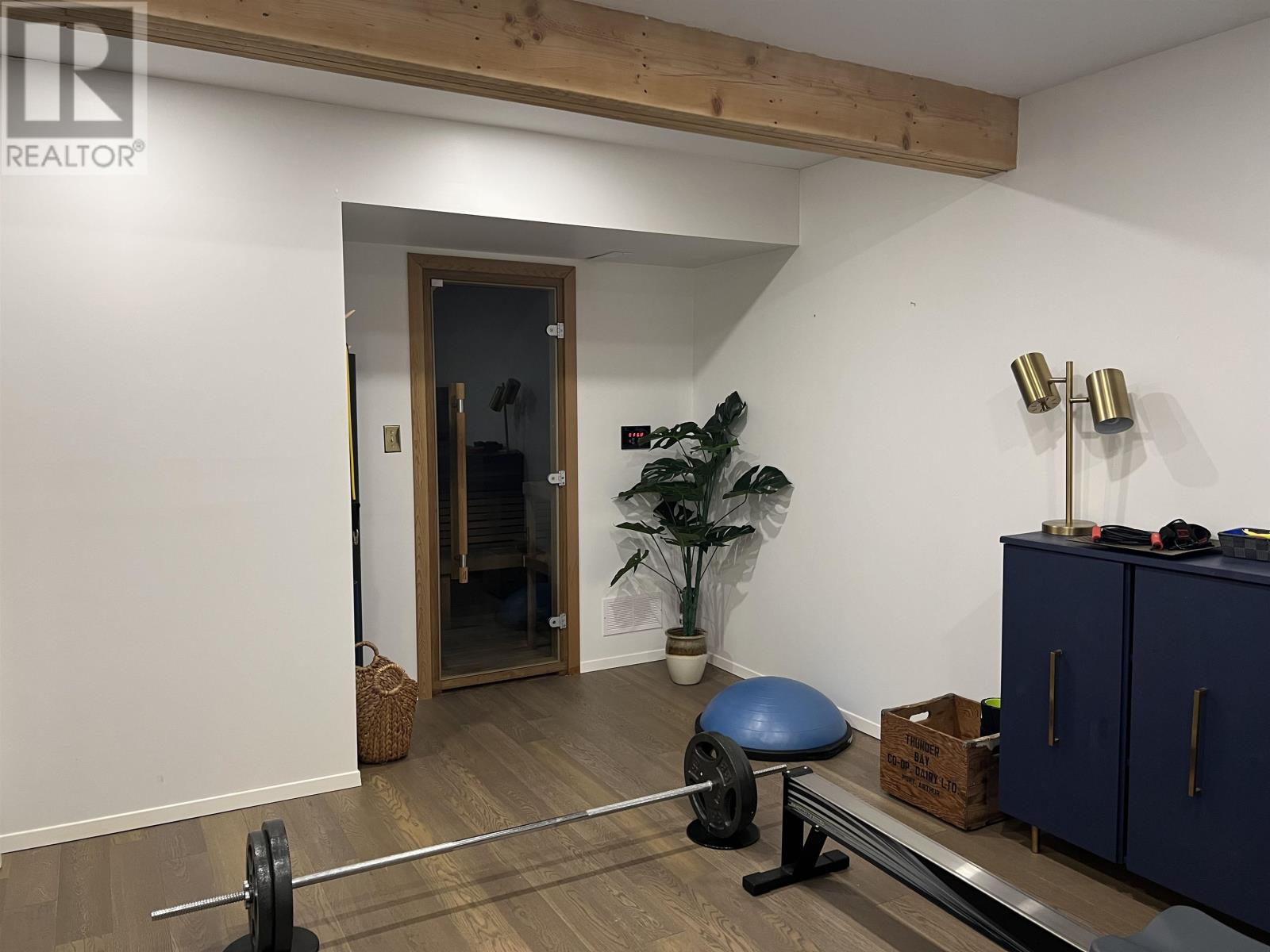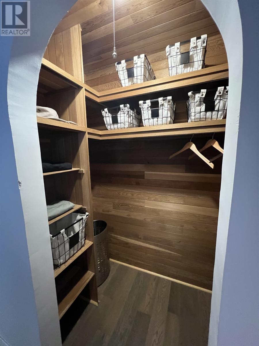 Cathedral ceilings, stylish updates, and a versatile 3 + 1 bedroom layout make this elegant back-split a standout. The bright living room and kitchen feature soaring ceilings and updated engineered hardwood flooring that flows seamlessly throughout the main living spaces. Enjoy the convenience of main-floor laundry and a layout designed for comfortable everyday living. The lower level offers a private bedroom with ensuite and a versatile den, library, or potential fifth bedroom, ideal for a home office. Continue to the second lower level to find a home gym, relaxing sauna, and ample storage. Outside, a private cedar-lined yard with deck and paved driveway creates a peaceful setting. Ideally located close to the town centre and schools. (id:64974)