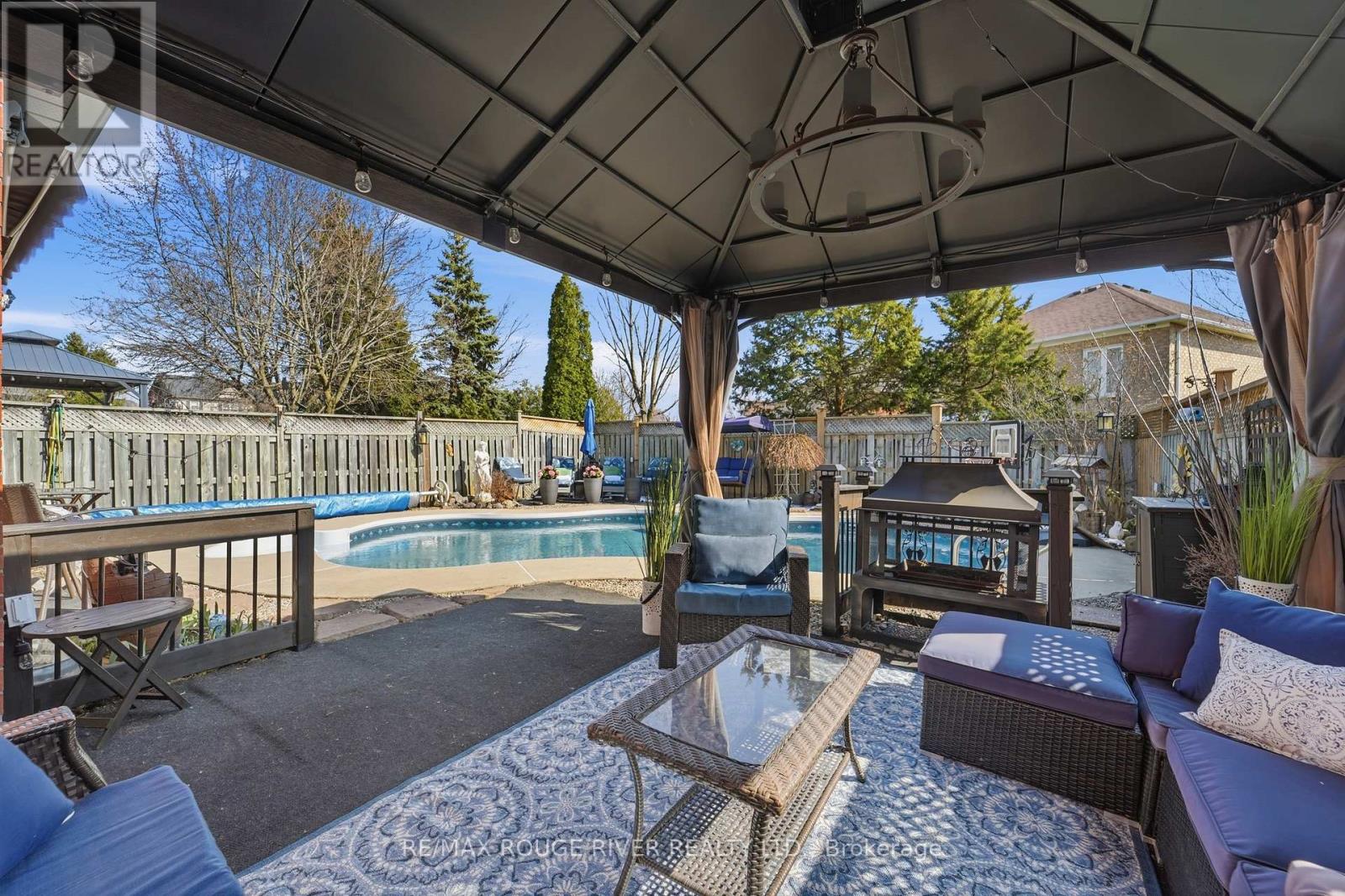 Welcome to 5 Iberville! A rare find in the highly desirable Brooklin neighbourhood. Meticulously maintained by the original owners, this all-brick, two-storey detached home showcases true pride of ownership and thoughtful upgrades throughout. Tucked away in a quiet family pocket, this 4-bedroom home features a private, fully-fenced backyard oasis with a heated inground pool for your own personal escape. The heart of the home is a bright and functional eat-in kitchen, fully upgraded with select cabinetry, quartz countertops, a stylish backsplash, and quality stainless steel appliances. The breakfast area, illuminated by a designer light fixture, features sliding doors that lead directly to the patio. For cozy evenings, the large family room boasts an electric fireplace, while the combined living and dining rooms offer a bright, versatile space for formal entertaining. Fully upgraded bathrooms, boasting durable quartz counters, ceramic tile, and glass-door showers.The second floor features a convenient laundry room and four spacious bedrooms. The primary retreat offers wall-to-wall closets with a 4-piece ensuite. The three additional bedrooms are bright and comfortable, each featuring upgraded windows and closets. The backyard is truly one-of-a-kind, featuring a heated inground pool surrounded by landscaped garden beds, a built-in fire pit enclosure, and a gazebo. For those looking to expand, the basement remains a blank canvas, perfect for a home office or recreation room, with ample storage under the stairs.Perfectly situated in a family-friendly community close to schools, parks, amenities, and walking trails. Commuting is a breeze with quick access to Hwy 407 and 412. (id:64974)