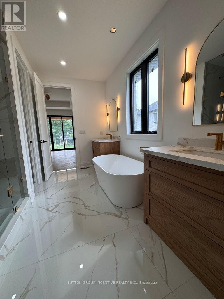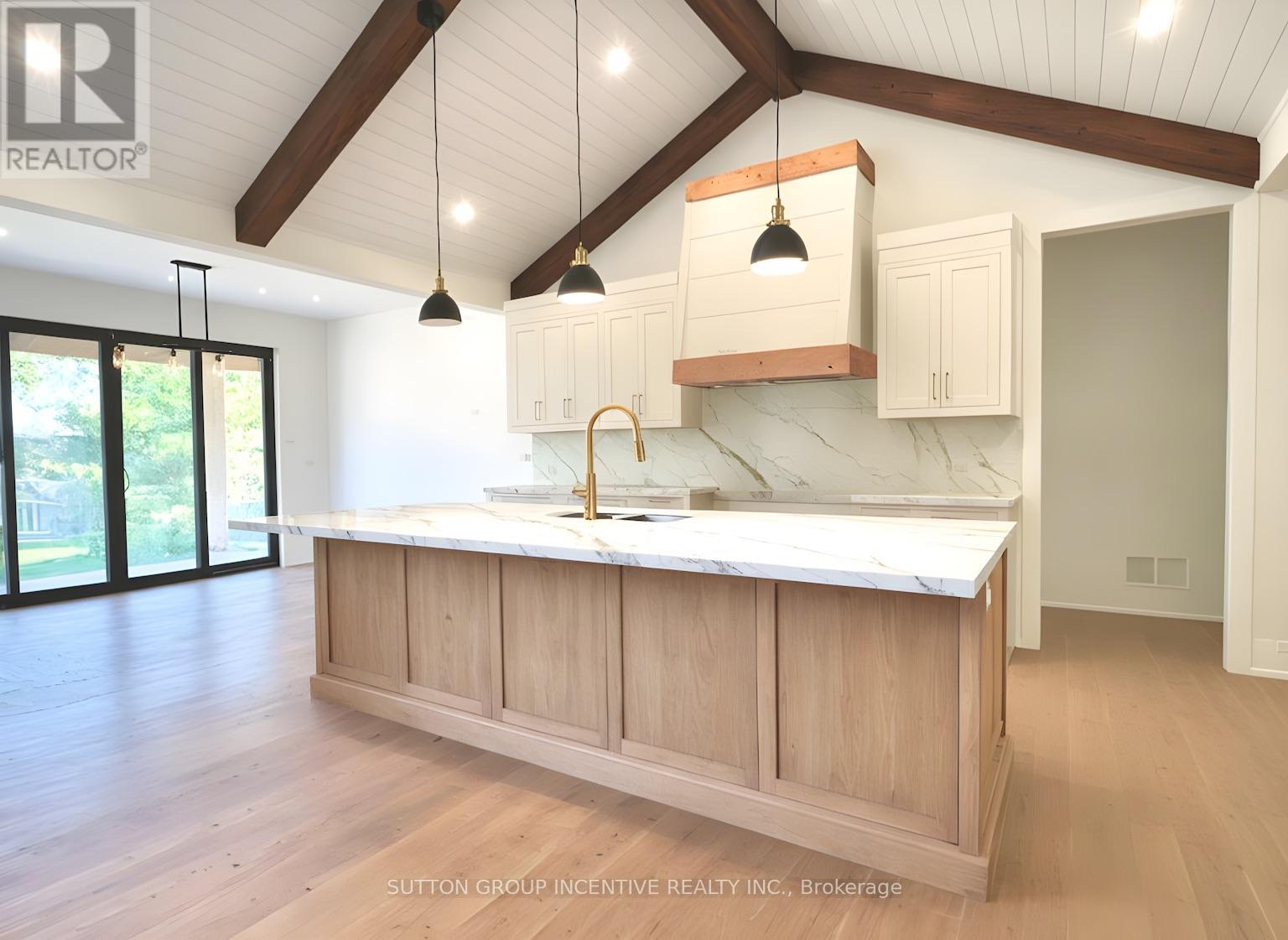 Welcome to 5 Jean Miller Court, an exceptional custom-built bungalow nestled on a quiet, prestigious court in sought-after Snow Valley. This stunning home offers a seamless blend of refined luxury and thoughtful design, featuring engineered hardwood flooring throughout and an open-concept main level anchored by soaring vaulted ceilings with striking decorative ridge beams. At the heart of the home is a beautifully appointed gourmet kitchen, complete with a large quartz island, custom backsplash, and a spacious walk-in pantry-perfectly designed for both everyday living and elegant entertaining. The dinette features expansive sliding doors that lead to a covered porch and adjoining deck, creating a seamless indoor-outdoor lifestyle, while the adjoining great room is warm and inviting with oversized windows. The main floor showcases three generously sized bedrooms and three well-appointed bathrooms, including a private primary retreat featuring a walk-in closet and a spa-inspired ensuite with heated floors, a freestanding soaker tub, and a glass-enclosed shower. The fully finished basement extends your living space with approximately 9-foot ceilings, offering a bright and spacious feel throughout, and includes a large recreation room, games area, two additional bedrooms, and a stylish 4-piece bathroom-ideal for guests or growing families. Completing this remarkable property is a triple-car garage, professionally landscaped grounds, and a prime location close to parks, trails, ski hills, and all the natural beauty Springwater is known for. This is a rare opportunity to own a truly elevated home in one of the area's most desirable communities. (id:64974)