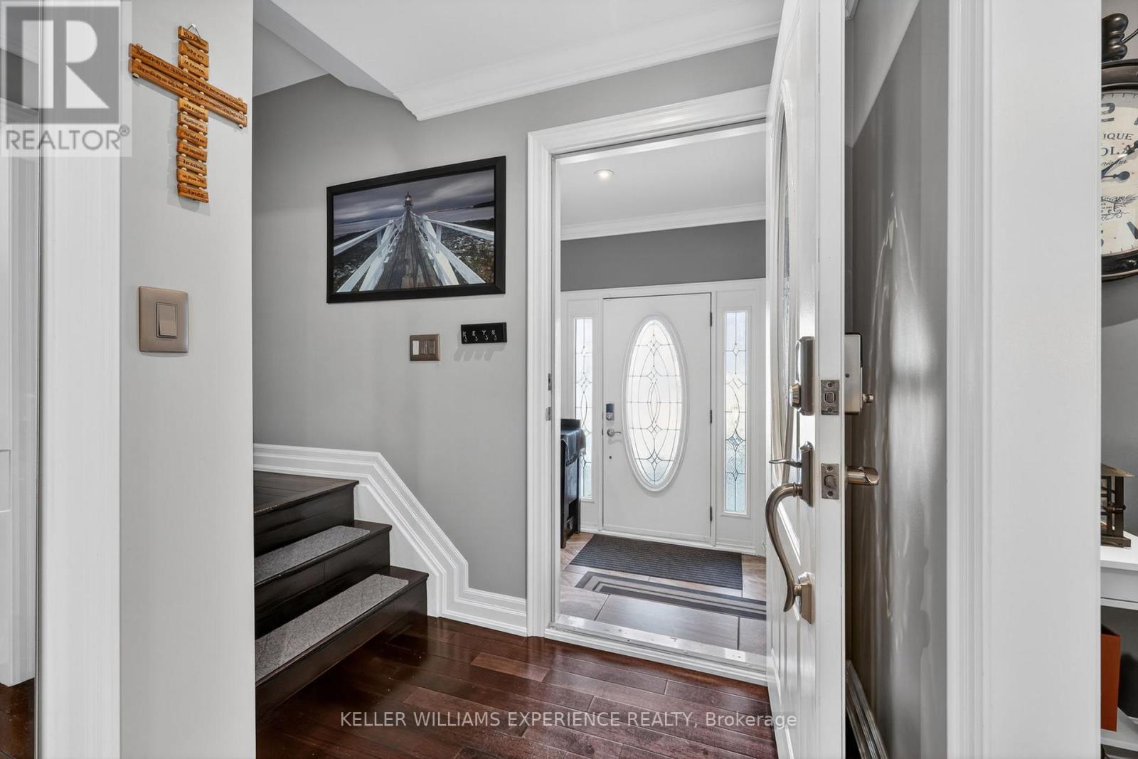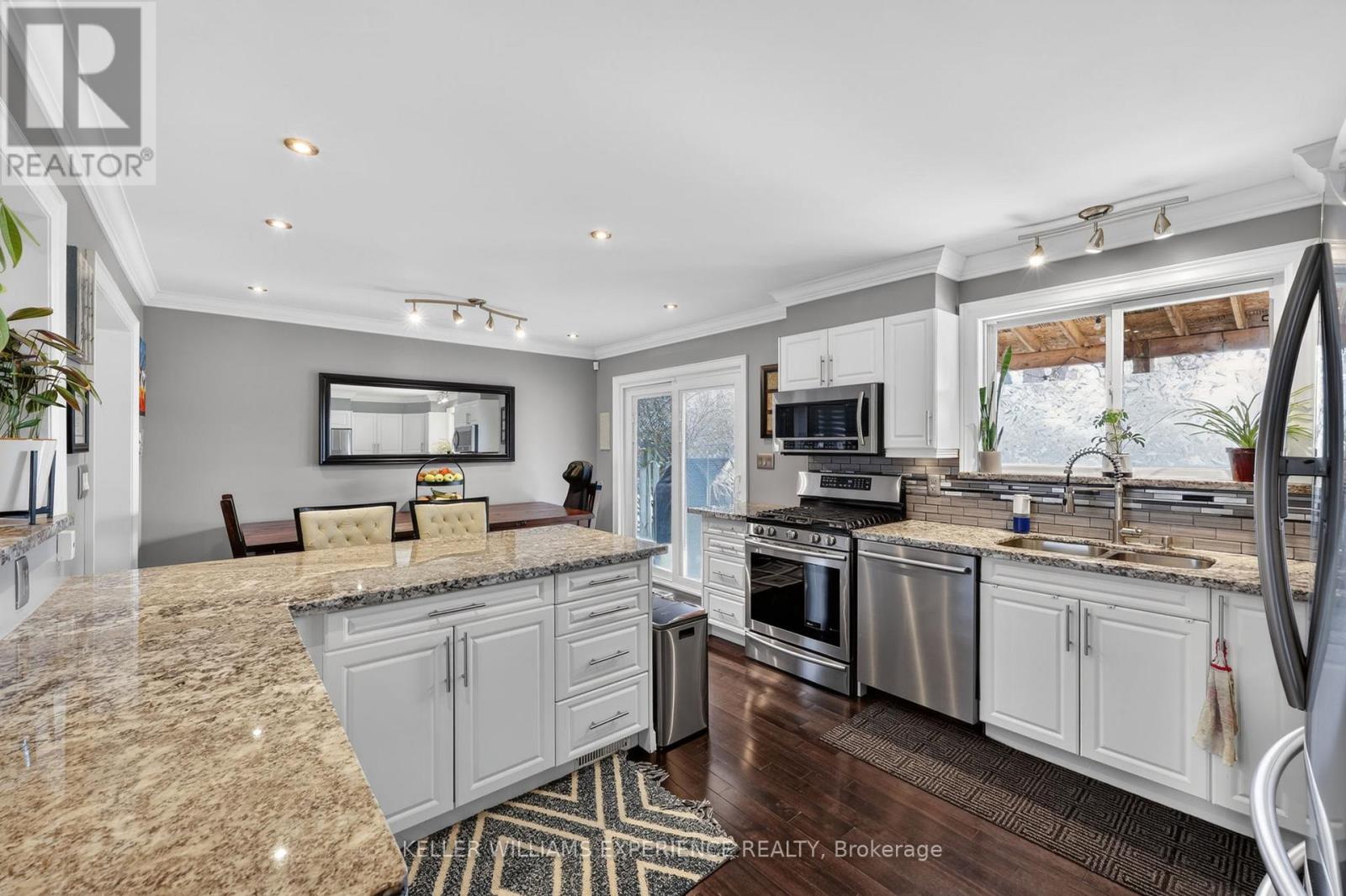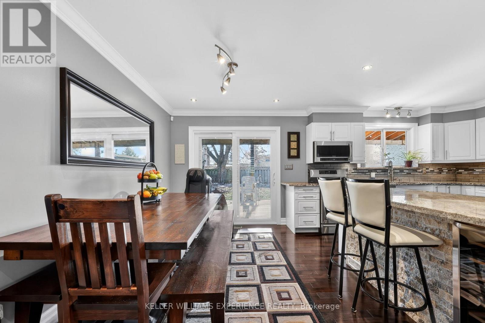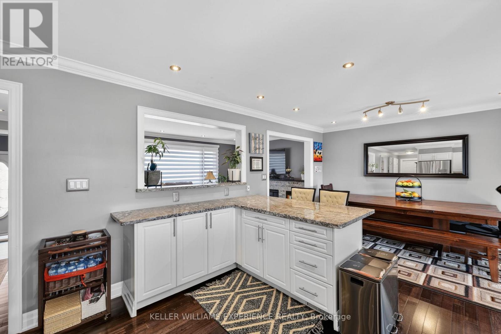 Welcome to 5 Jills Court! Built in 2015, this beautiful 3-bedroom, 3 bath home offers quality finishes and thoughtful design throughout. The kitchen and all three bathrooms feature granite countertops, while hardwood and tile flooring run throughout the home, creating a clean and upscale feel. Crown moulding and LED pot lights add elegance and modern style throughout.The large heated garage is a standout feature, complete with convenient drive-thru access to the backyard. Outside, you'll find a spacious fully fenced yard and a covered back porch, perfect for relaxing or entertaining.With separate garage access to two areas of the home and a basement rough-in already in place, this property also offers excellent potential for extended family living or a future in-law suite.Ideally located close to the hospital, everyday amenities, and with easy access to Highway 400 and Highway 11, this home is a great option for commuters and families alike. Book your showing today! (id:64974)