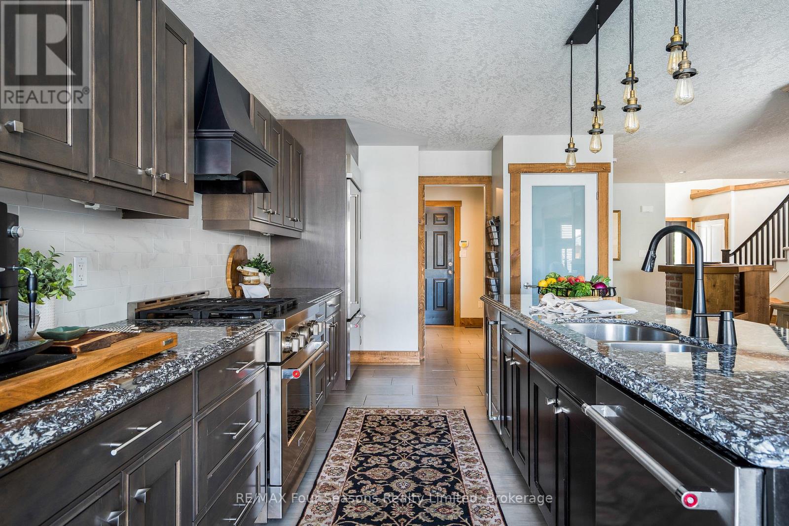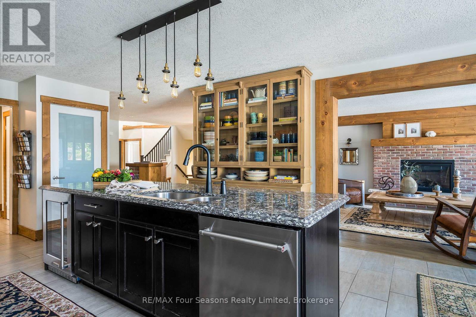 Welcome to Georgian Meadows, one of Collingwood's most loved neighbourhoods where families gather in nearby parks and trails wind through the community. With Blue Mountain, Georgian Bay, and downtown Collingwood minutes from your doorstep, this location makes every season an opportunity to live, play, and connect. The home itself invites you in with a spacious front entry that sets the tone for what's inside... warm, welcoming, and designed for family life. The kitchen is the true heart of the home, with its impressive 9-foot granite island, professional-grade KitchenAid appliances, pantry, and casual dining space. Its where mornings begin, conversations flow, and friends naturally gather. The separate dining room is perfect for holidays and celebrations, while the great room, anchored by a cozy brick surround gas fireplace, is a space to relax and reconnect. Warm wood trim and post-and-beam details give the home a sense of timeless comfort. Upstairs, there's room for everyone. The primary bedroom features an ensuite with walk-in shower, soaker tub, granite counters, and double sinks. Three additional bedrooms and a modern guest bath with a floating underlit vanity make mornings easy for the whole family. A second family room with a brick-surround fireplace becomes the perfect spot for movie nights, kids hangouts, or quiet evenings together. The basement is also finished with another 4 piece bathroom. Outdoor living is just as inviting. A welcoming front patio greets guests, while the backyard was made for entertaining. Picture summer evenings under the pergola, barbecues with friends on the stone patio, and cozy fall nights spent outside after a day on the slopes or trails. This isn't just a house it's a place to grow into, to host laughter-filled gatherings, and to enjoy everything Collingwood living has to offer. A warm, spacious family home in a neighbourhood where memories are waiting to be made.. (id:64974)