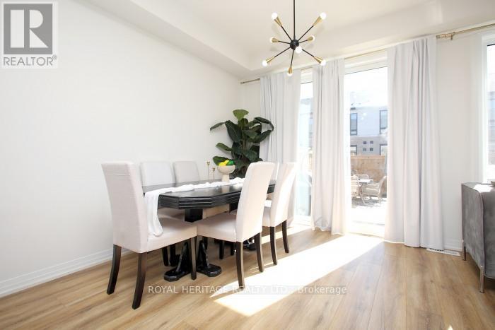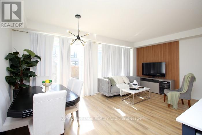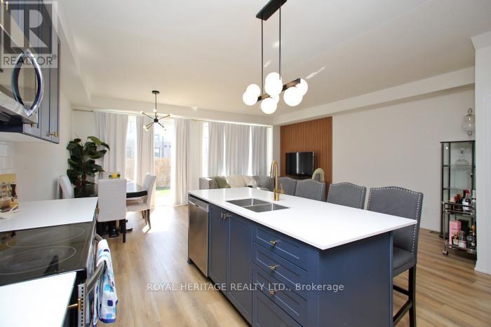 Welcome to 5 Klein Way! Situated in one of Whitby's most desirable Neighborhoods. A Bright & spacious layout with over 2200sq ft of living space and a finished lower level, 3 spacious bedrooms, 4 washrooms and a new patio and convenient second-floor laundry. Enjoy many custom upgrades! Thoughtfully designed open concept living on the main floor allows you to enjoy time with friends & family. Kitchen features White ceramic backsplash, striking navy shaker cabinets, S/S appliances, Caesarstone counters, a satin brass faucet and large Centre Island with breakfast bar. Step out to south facing, fully fenced yard. Upstairs the primary suite features a sitting area with stylish built-in cabinetry & cozy electric fireplace with dramatic feature wall, 5-piece ensuite bath & walk-in closet. Lower level features a fully finished rec room, 4-piece washroom, utility room & a storage room. Private drive with parking for 2 cars, with direct access from home to garage. Just over 2-year-old, balance of Tarion warranty. Walk to transit, parks, shops & restaurants - farm boy, LA fitness and much more...commuters will love short drive to 412, 407 and GO. Don't miss the chance to make this home yours. (id:64974)