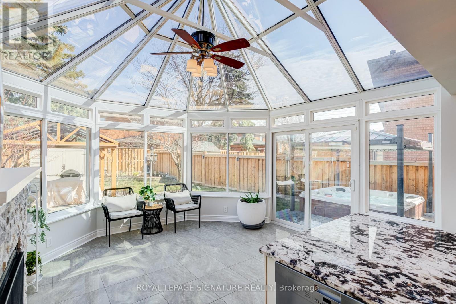 This exquisite home offers an exceptional layout suited for a growing family or effortless entertaining. Extensively upgraded with thousands invested, it features a chef-inspired kitchen with custom cabinetry, stainless steel appliances, granite countertops, and a large center island.Enjoy the stunning year-round sunroom/breakfast area addition, complete with a cozy gas fireplace and walkout to a private hot tub with a premium motorized cover and pergola area. The home also boasts renovated bathrooms, fresh paint throughout, hardwood flooring, pot lights, and stylish updated fixtures.Generously sized bedrooms provide comfort and space, while the finished basement-with separate side garage access-includes two bedrooms, a kitchen, full bathroom, and a spacious living area, ideal for extended family or potential rental income.Additional highlights include a large driveway accommodating up to 7-8 vehicles, roof shingles replaced in 2019, furnace and A/C approximately 14 years old, and some updated windows. Included: Stainless steel fridge, gas stove, hood fan, beverage fridge, dishwasher, washer & dryer, basement fridge and stove, hot tub with motorized cover, all window coverings, light fixtures, tankless water heater, and central air conditioning. This is a home you won't want to miss! (id:64974)
